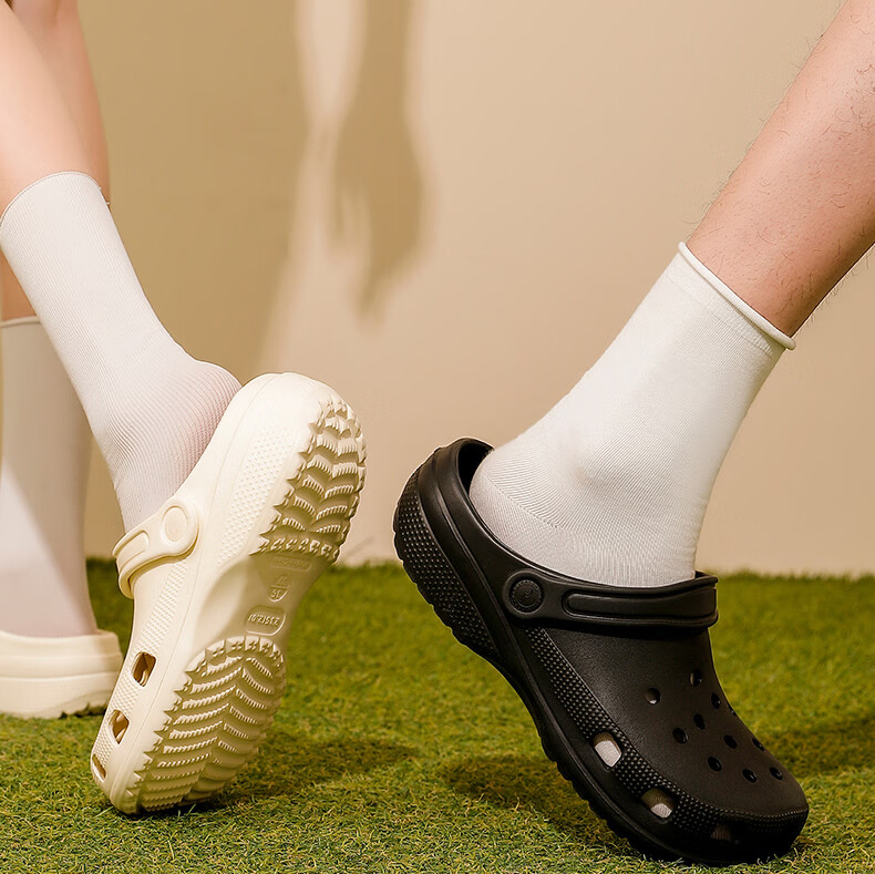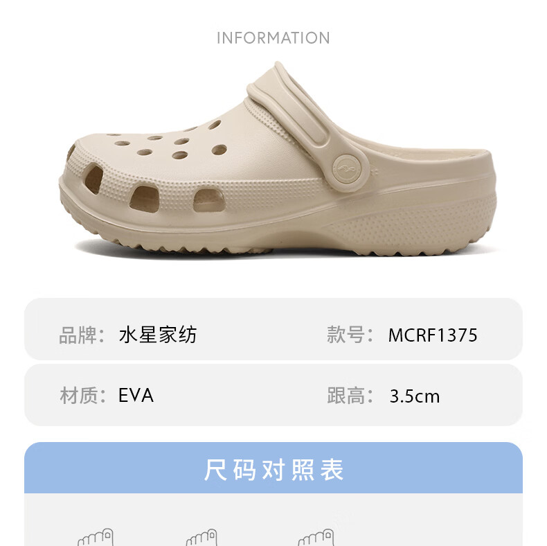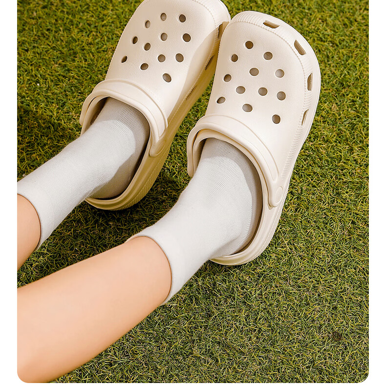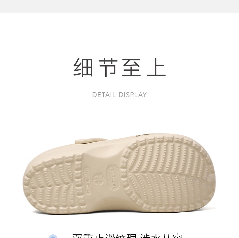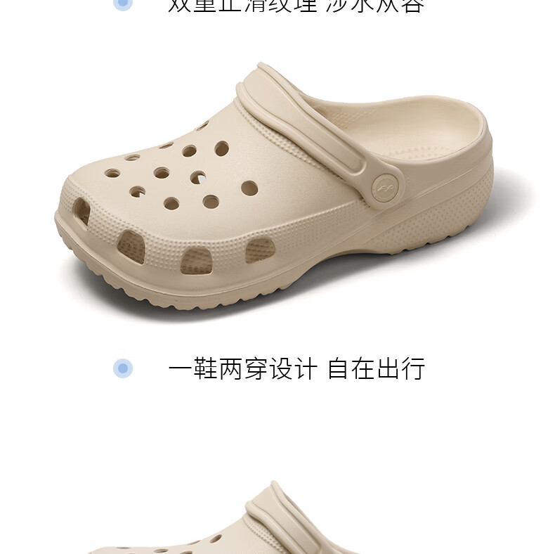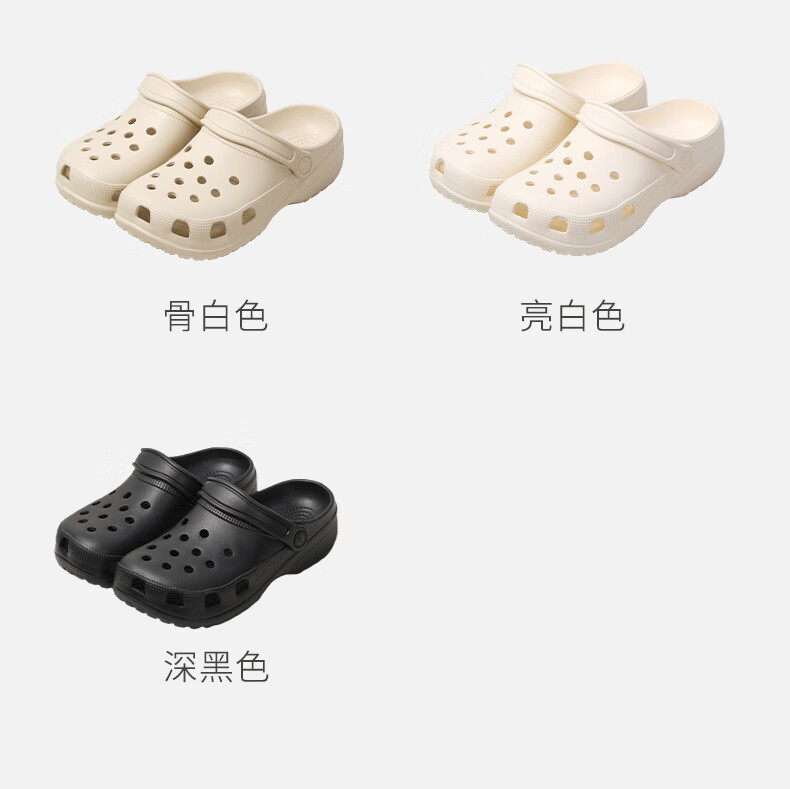 水星家纺洞洞鞋女士夏季新款外穿DIY包头凉鞋厚底休闲运动沙滩情侣拖鞋男 骨白色 38-39 【适合37-38码脚】