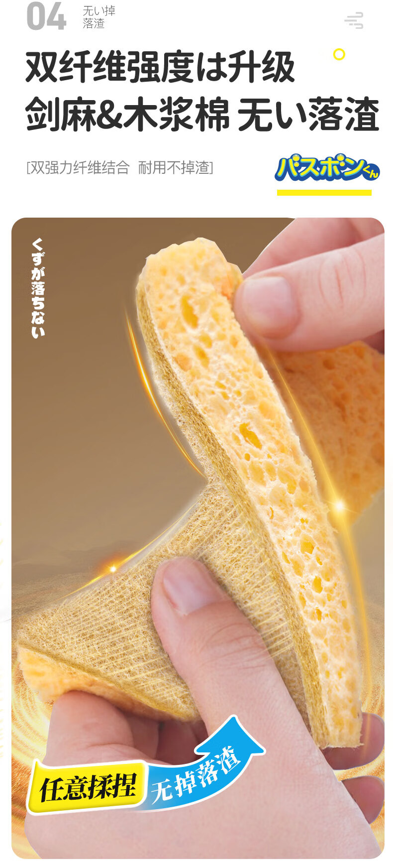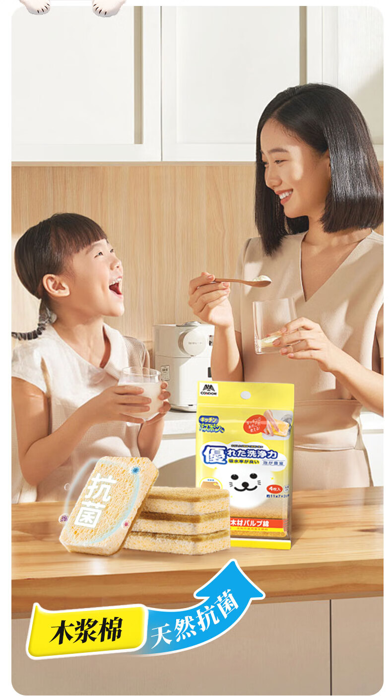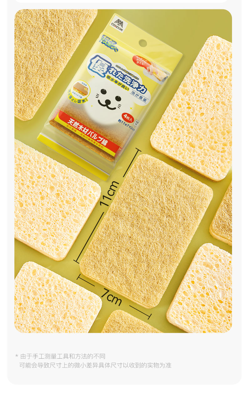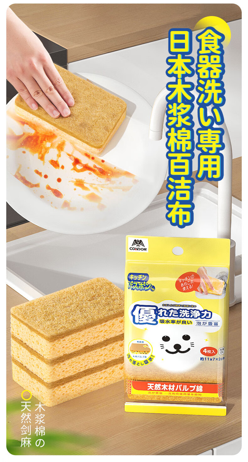 CONDOR日本天然木浆棉百洁擦4片厨房百洁布洗碗海绵刷锅碗不易沾油