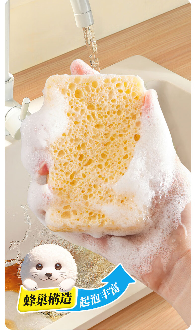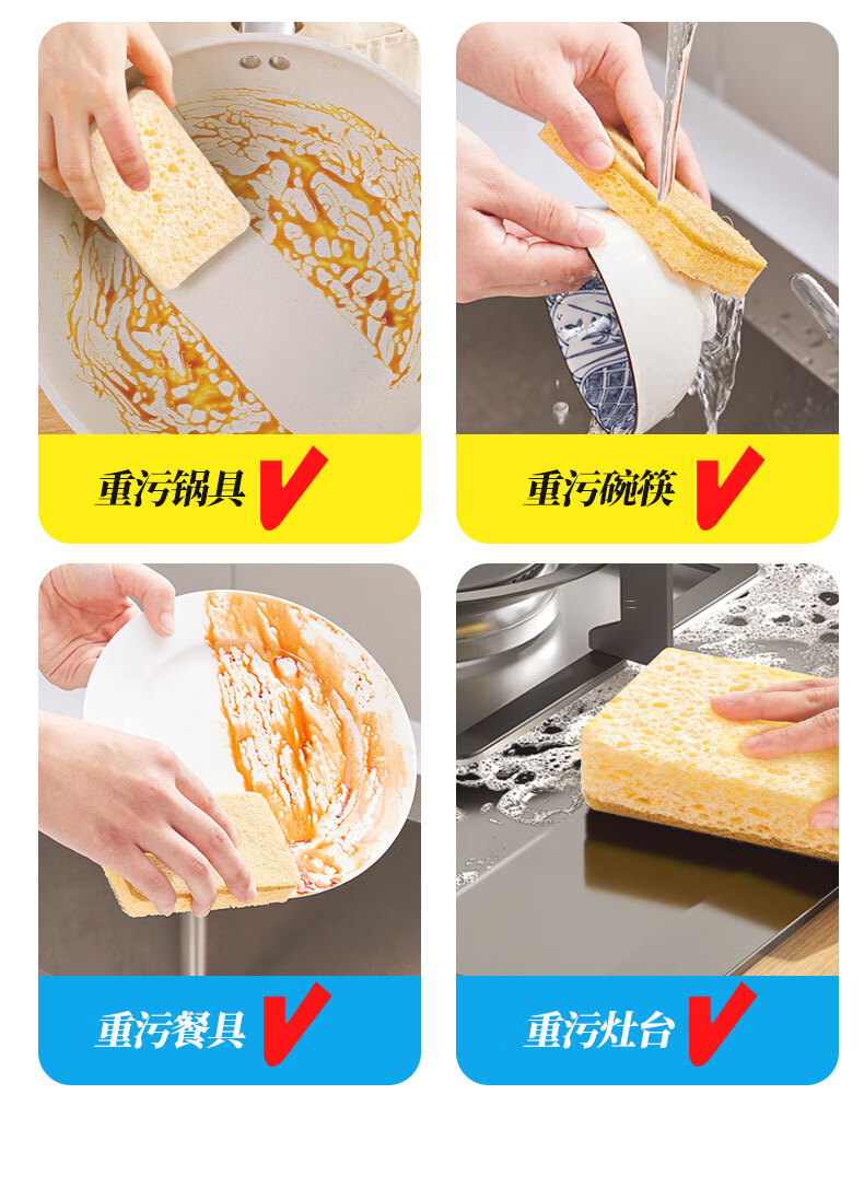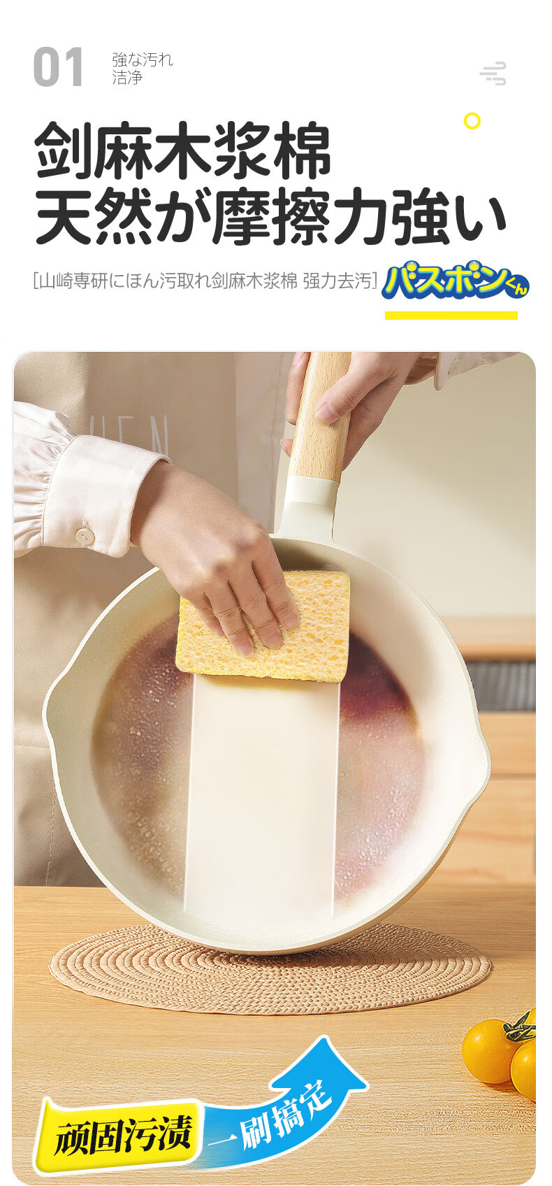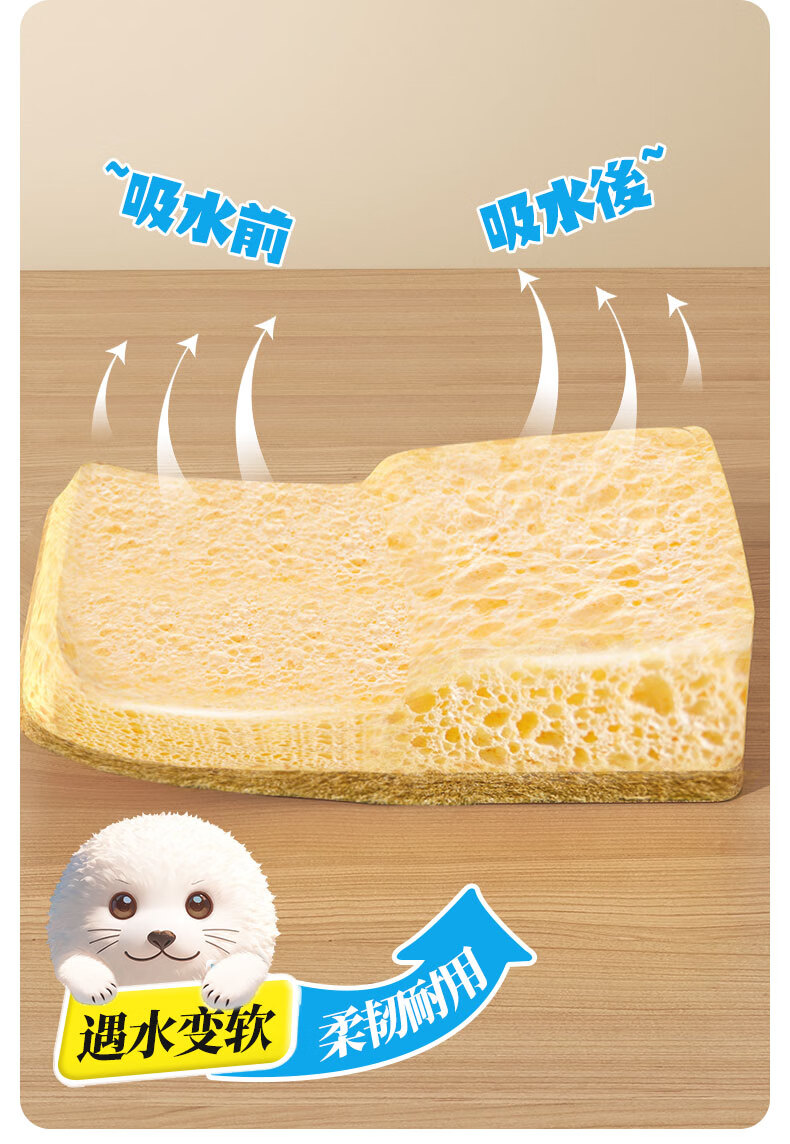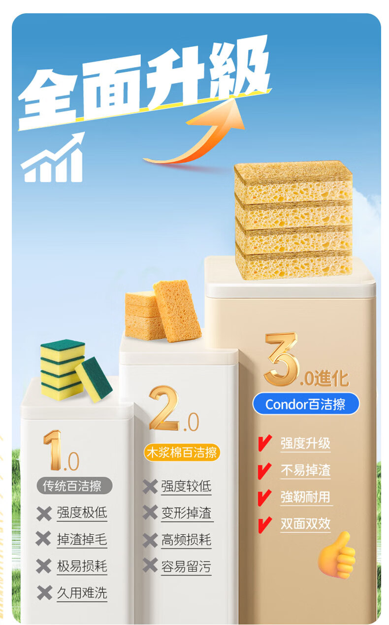CONDOR日本天然木浆棉百洁擦4片厨房百洁布洗碗海绵刷锅碗不易沾油