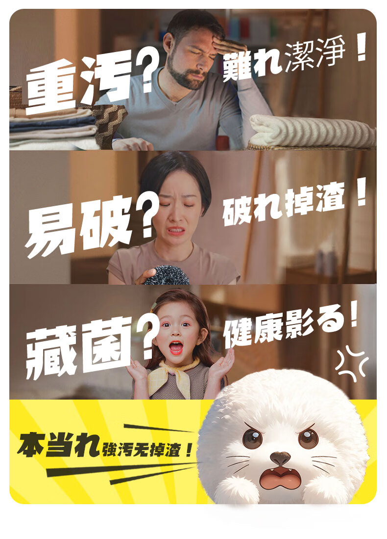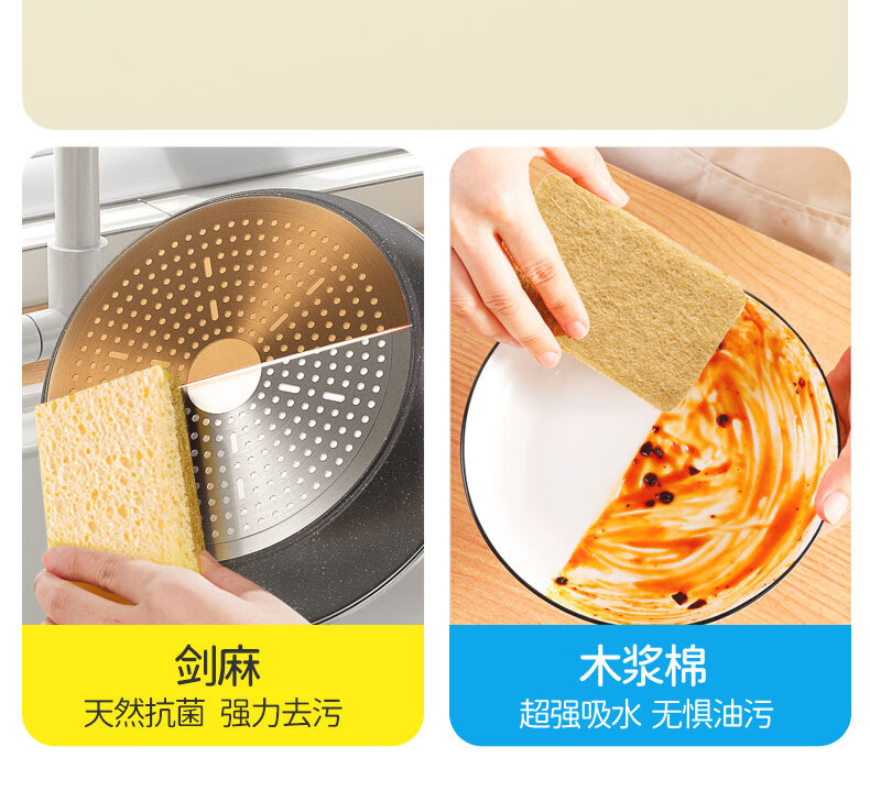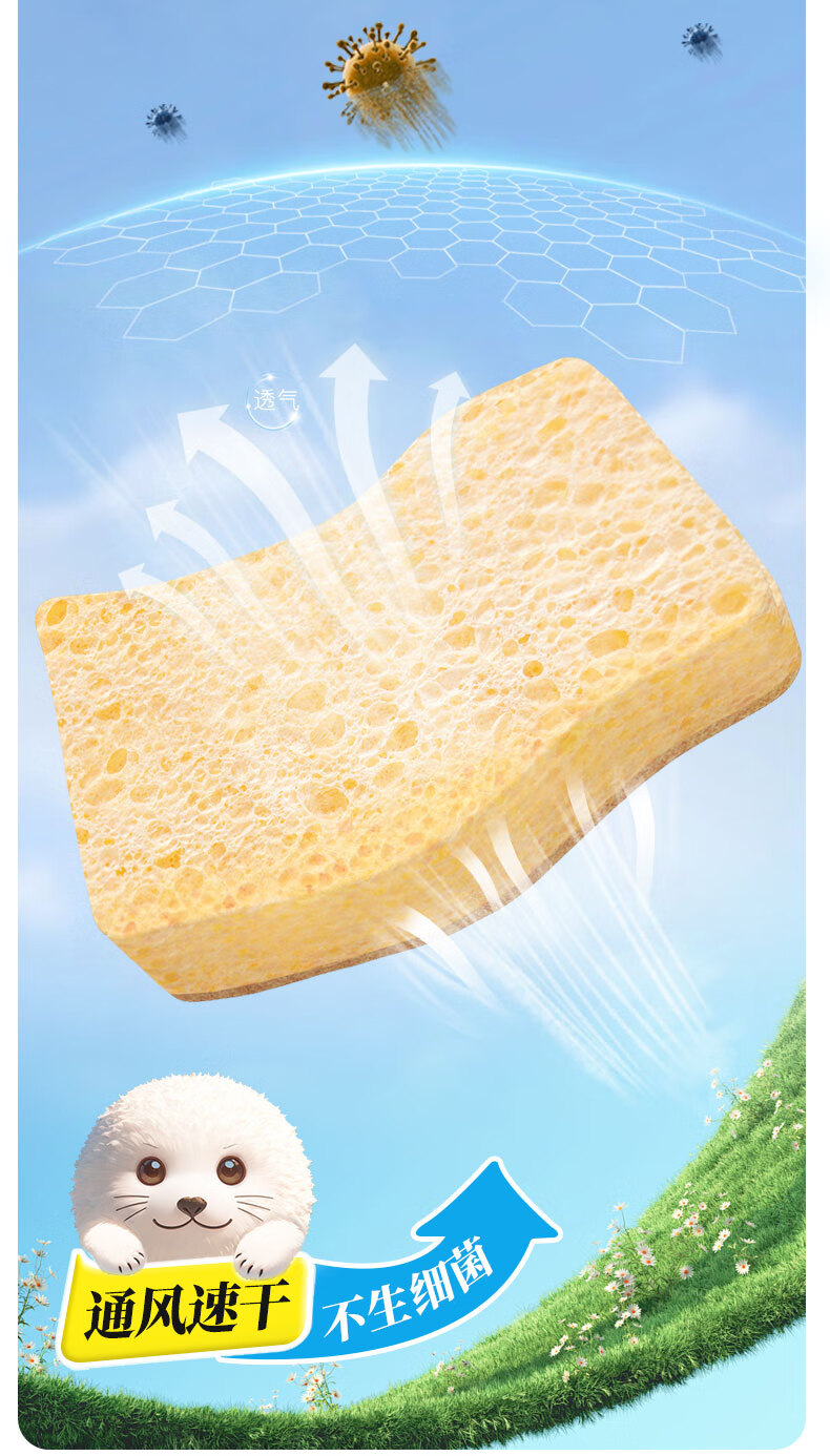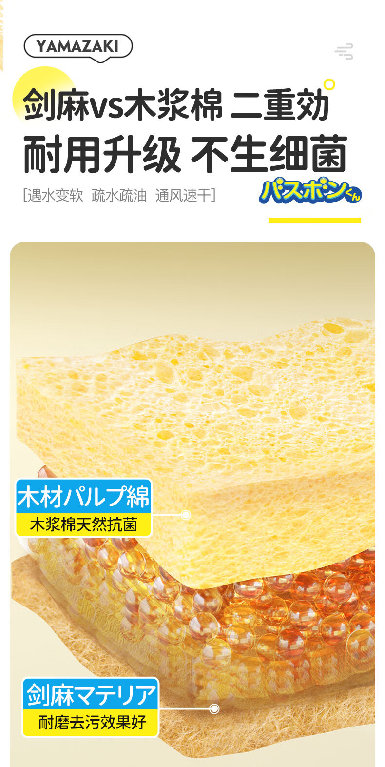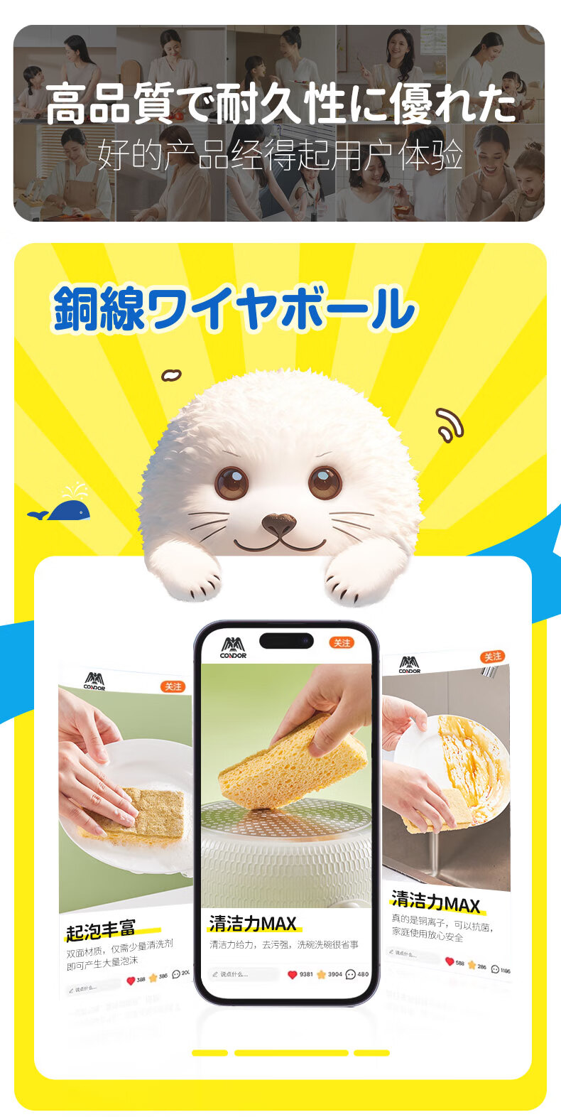 CONDOR日本天然木浆棉百洁擦4片厨房百洁布洗碗海绵刷锅碗不易沾油