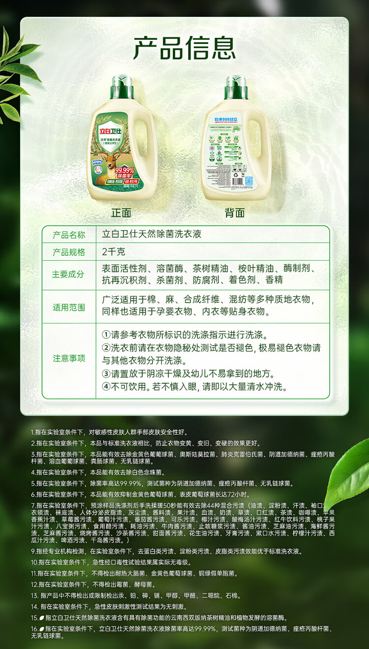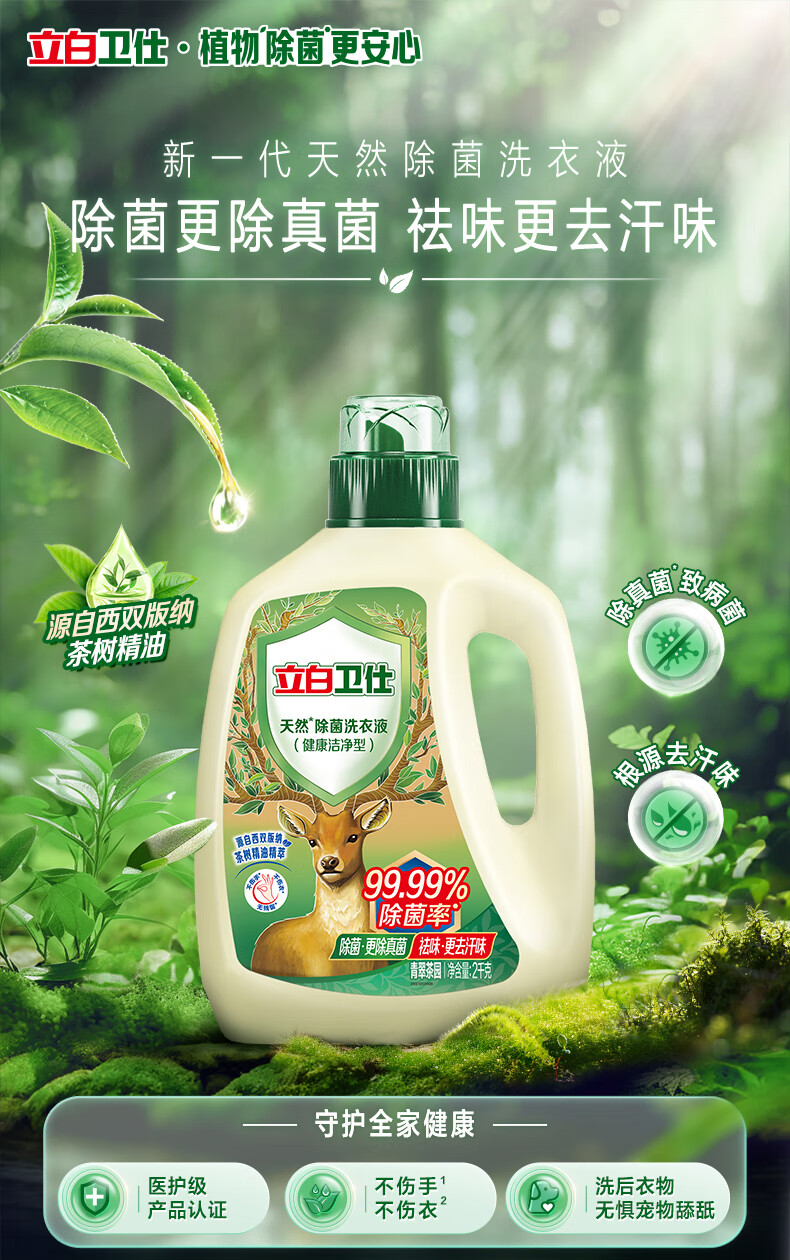 立白卫仕天然除菌洗衣液4斤除运动汗味除菌率99.99% 青翠茶园淡香