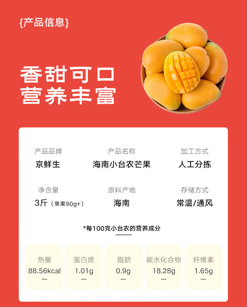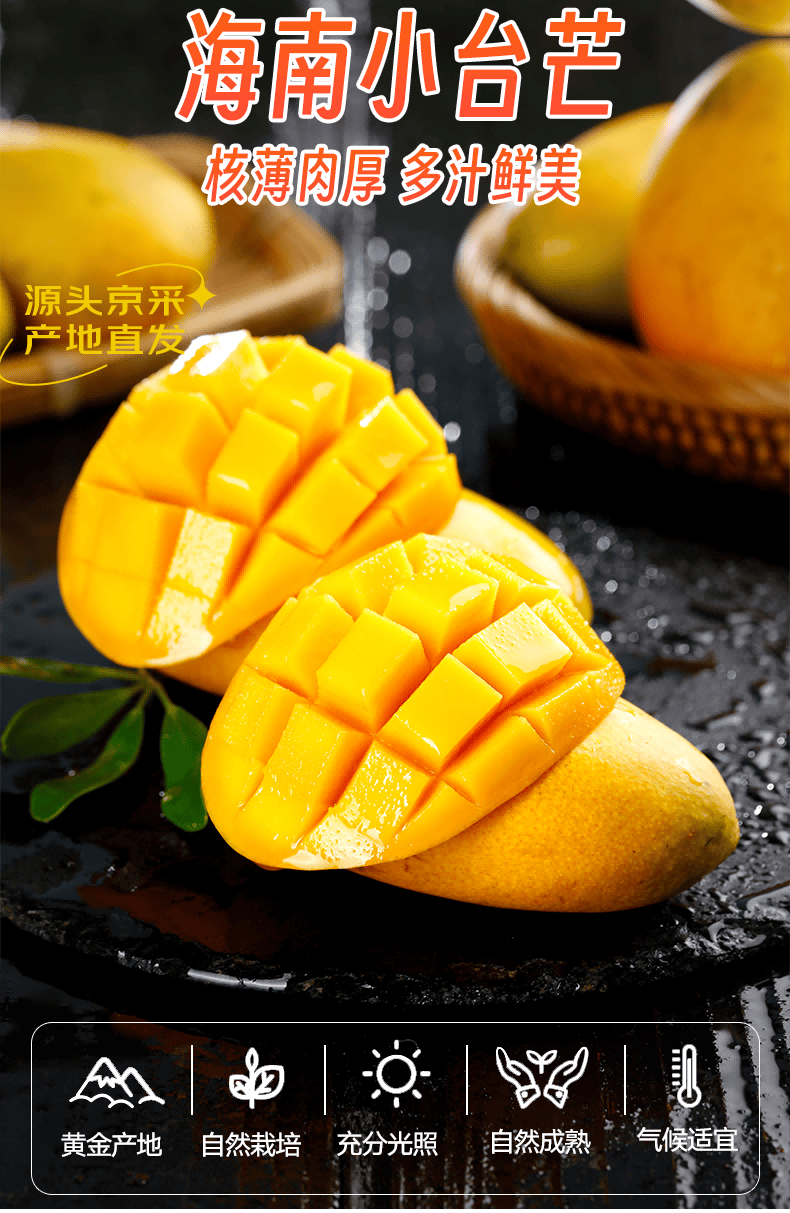 京鲜生 海南金煌芒果 净重3斤 单果300g+ 新鲜水果 源头直发