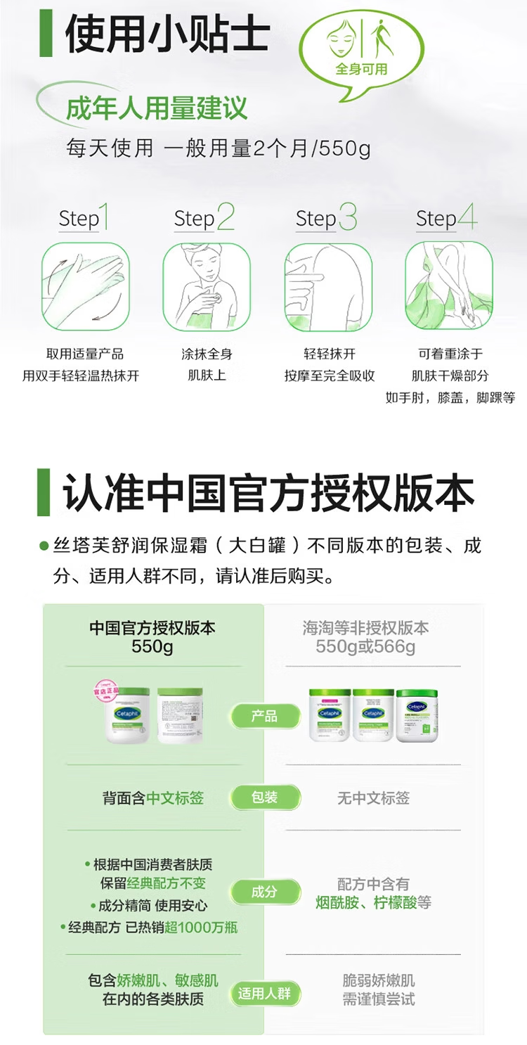 丝塔芙大白罐保湿身体乳滋润补水润肤乳婴幼儿宝妈孕妇面霜不含烟酰胺 丝塔芙大白罐550g*1罐