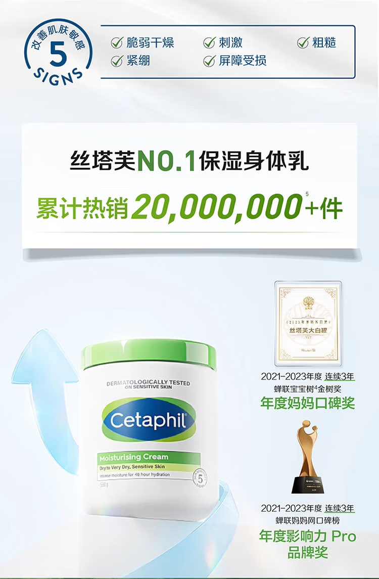 丝塔芙大白罐保湿身体乳滋润补水润肤乳婴幼儿宝妈孕妇面霜不含烟酰胺 1瓶 敏感性肤质 550g防伪码查询