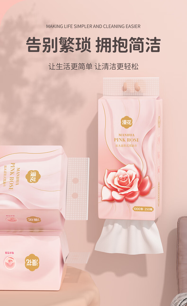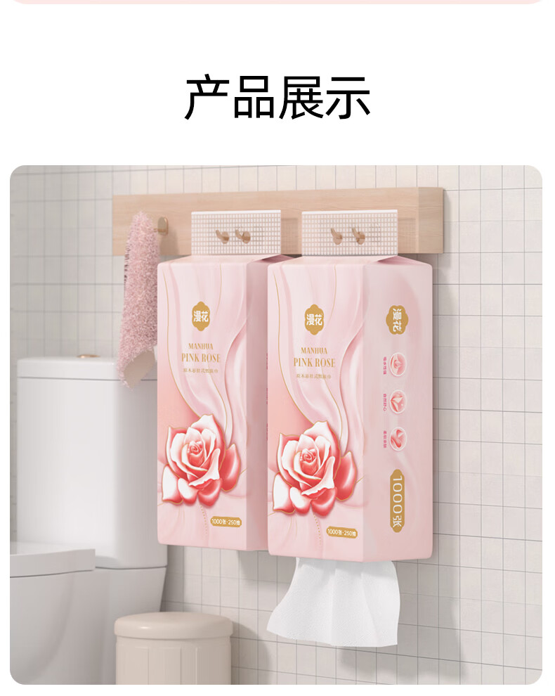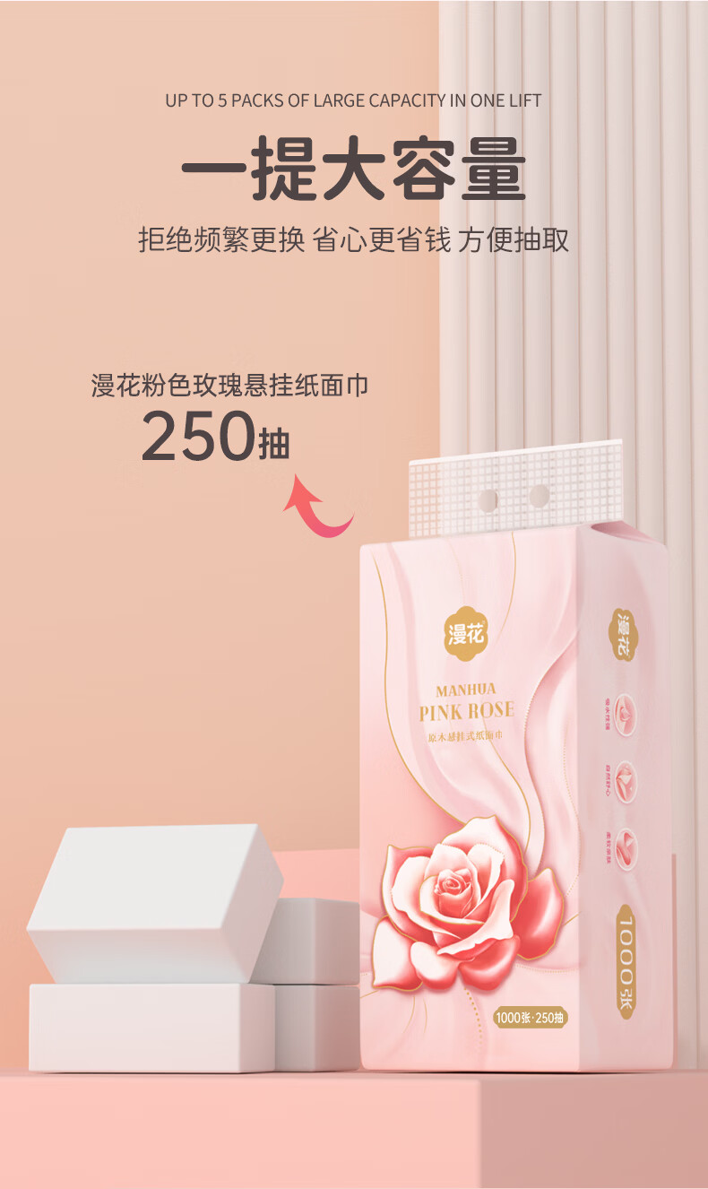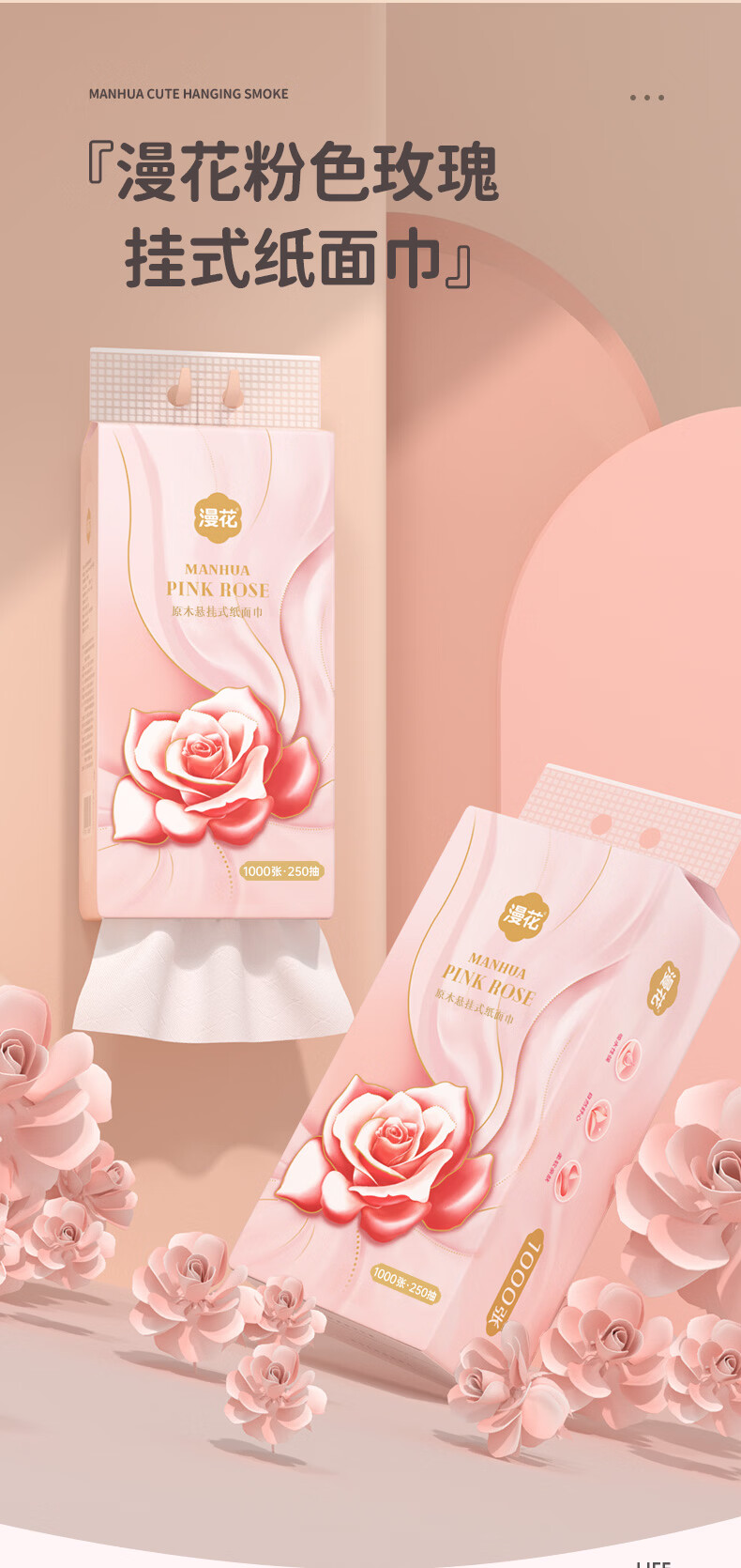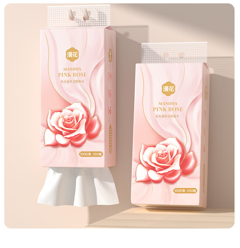 漫花悬挂式抽纸卫生纸家用实惠装餐巾纸1000张/提大包挂抽纸巾 漫花粉玫瑰挂式抽纸4层250抽*10提
