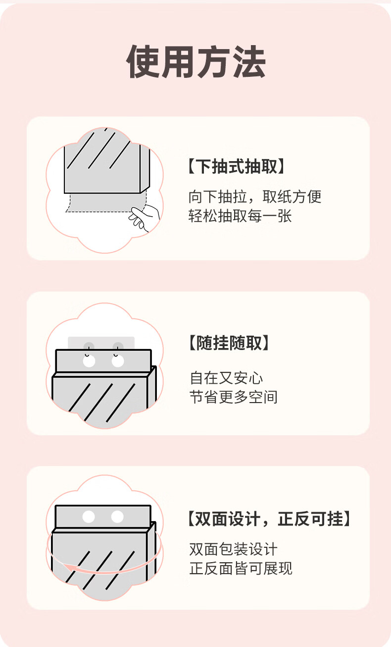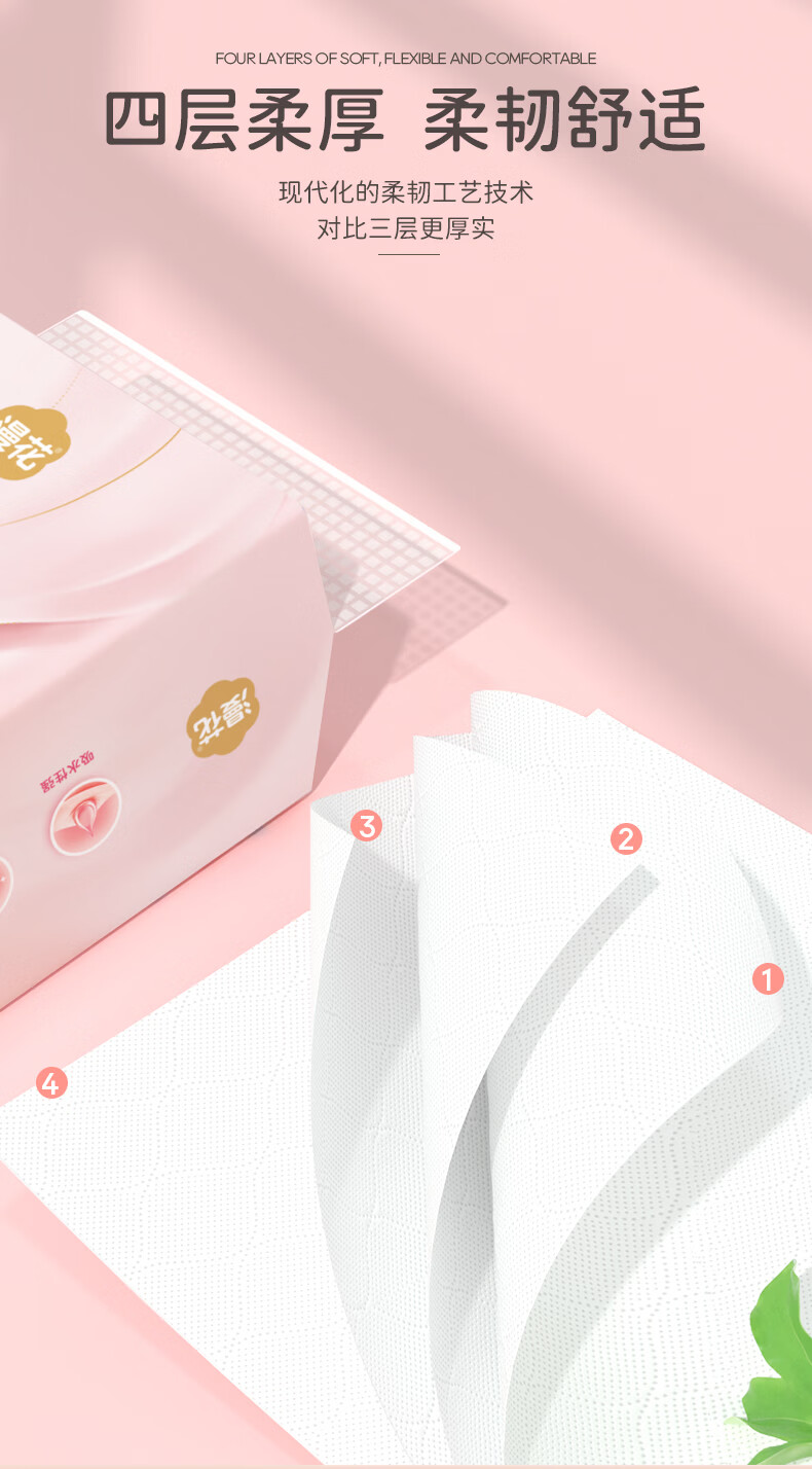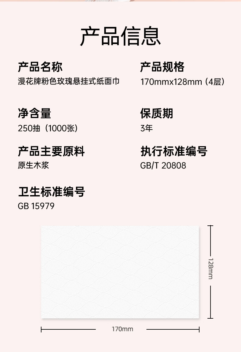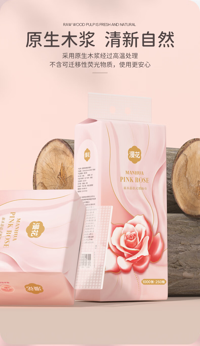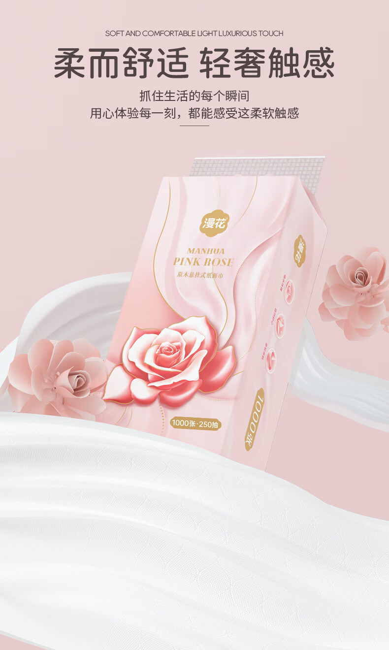 漫花悬挂式抽纸卫生纸家用实惠装餐巾纸1000张/提大包挂抽纸巾 漫花粉玫瑰挂式抽纸4层250抽*10提