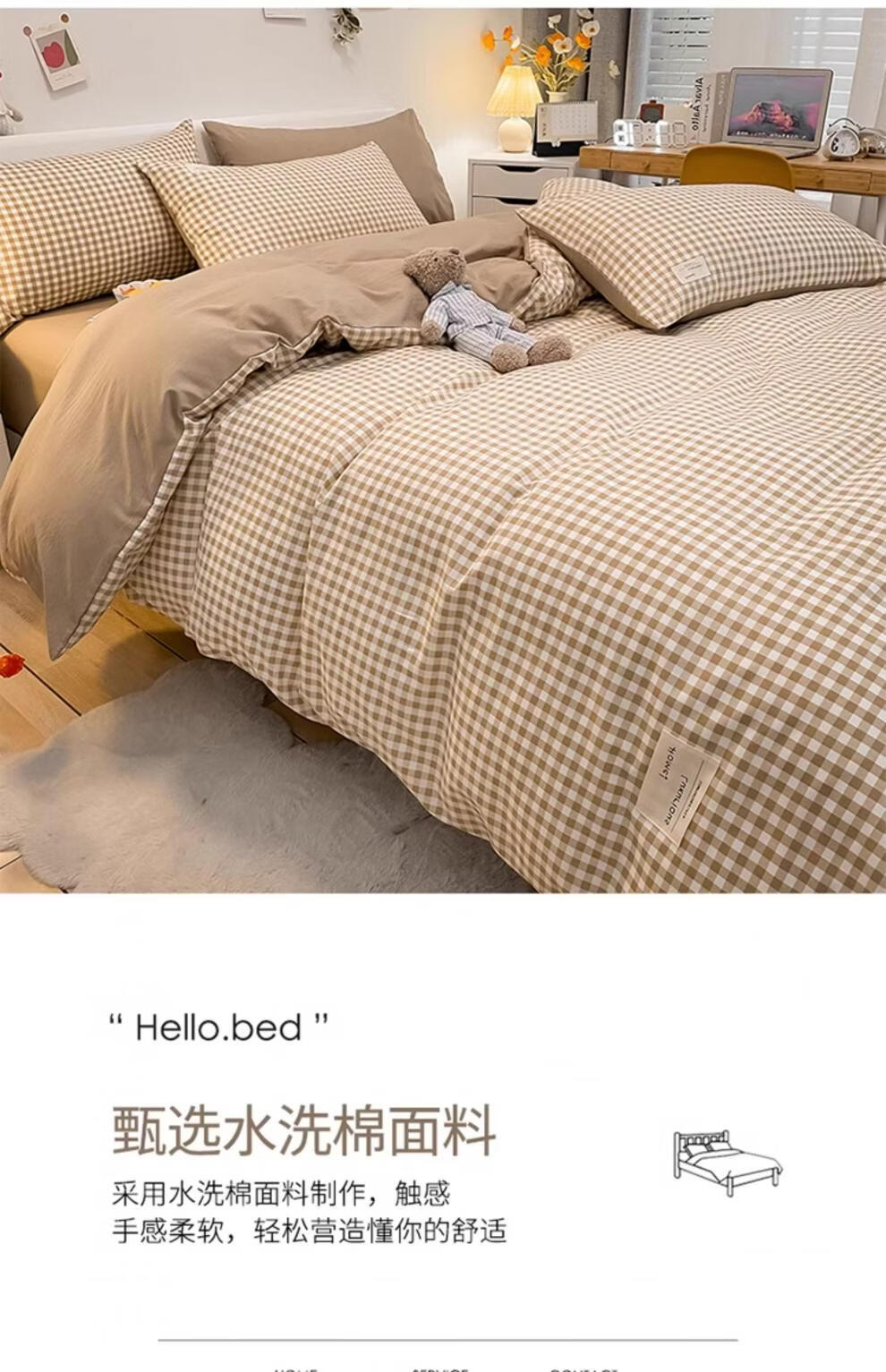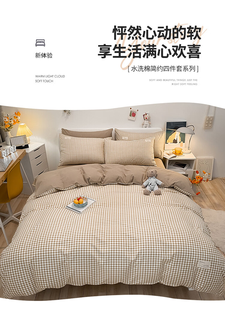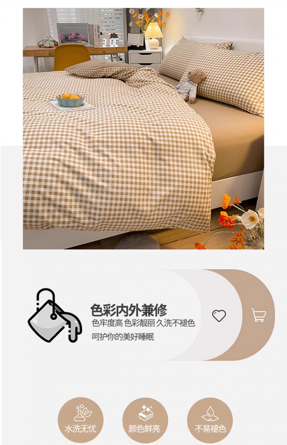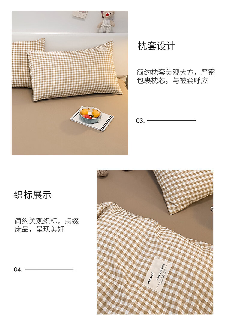 正圣被套单人150x200被罩200x230cm单件加厚水洗棉学生宿舍被单被套 米小格-柔软亲肤不起球 【单被套】 150cm*200cm