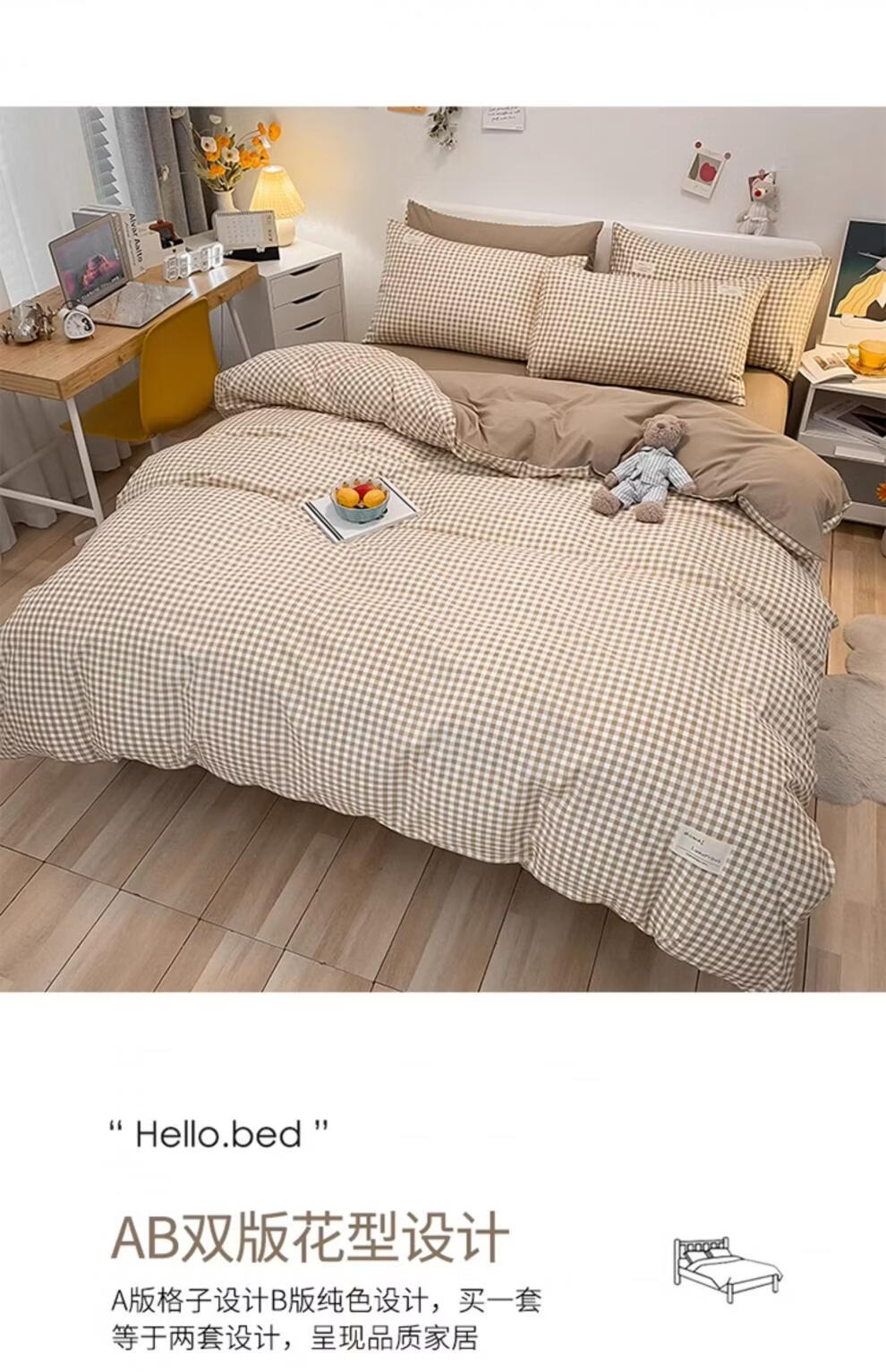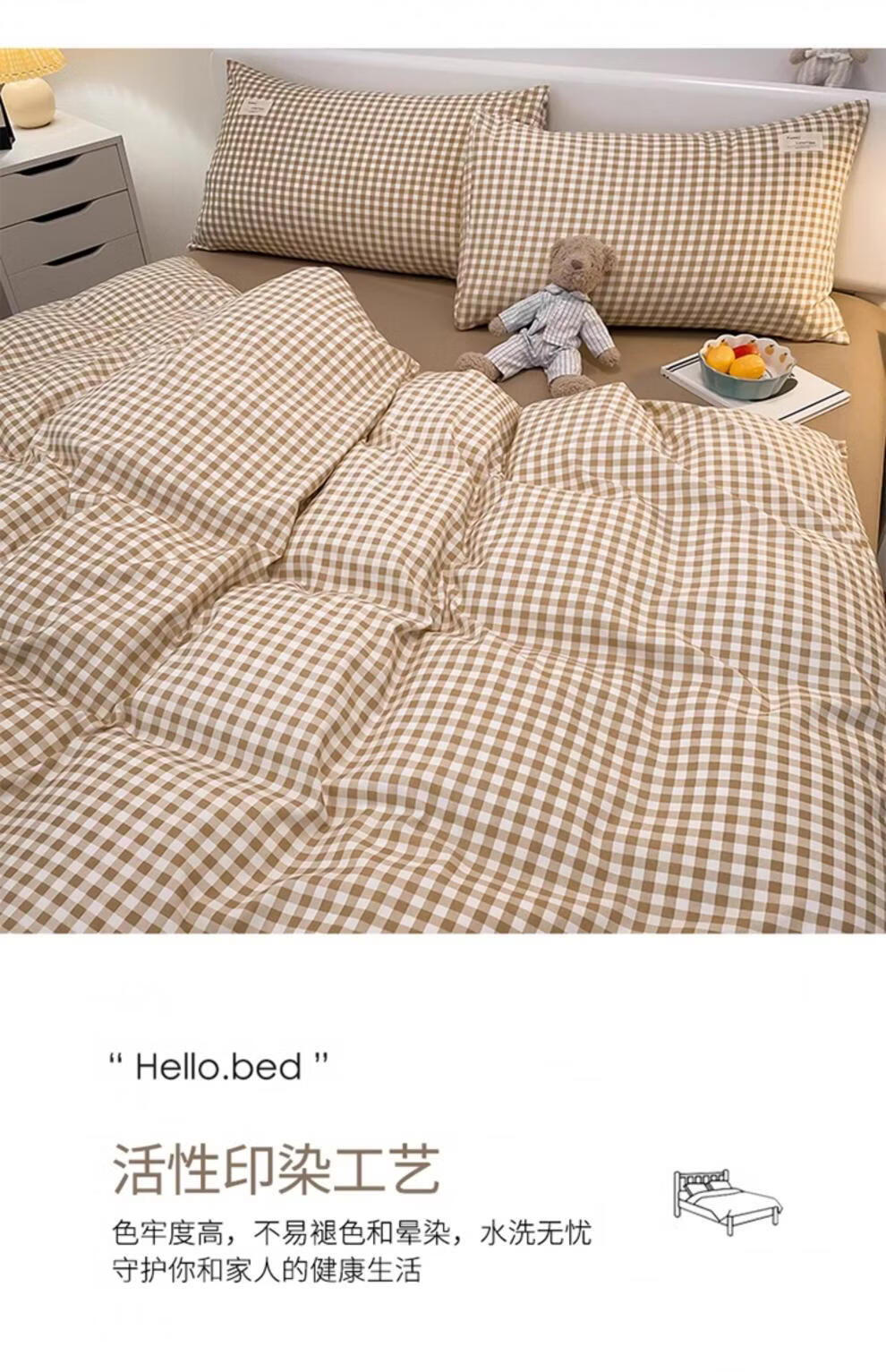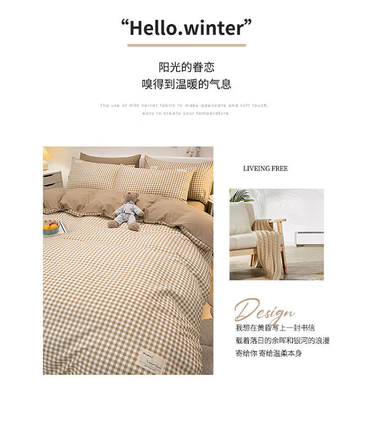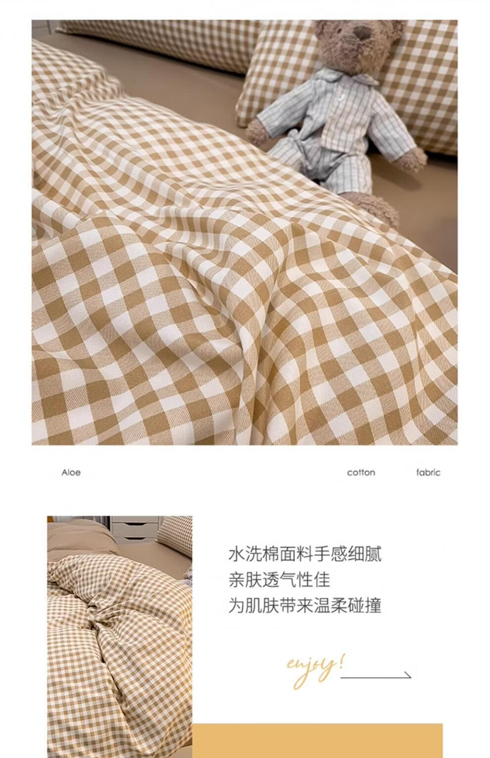 正圣被套单人150x200被罩200x230cm单件加厚水洗棉学生宿舍被单被套 米小格-柔软亲肤不起球 【单被套】 150cm*200cm