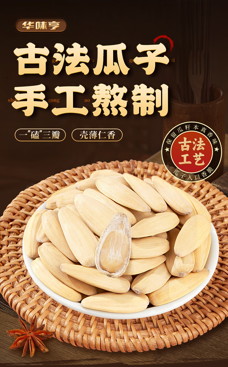 华味亨 300g多味香瓜子 古法脱皮葵花籽大颗粒新货休闲零食坚果 300g多味香瓜子*3袋