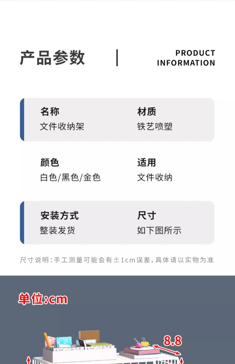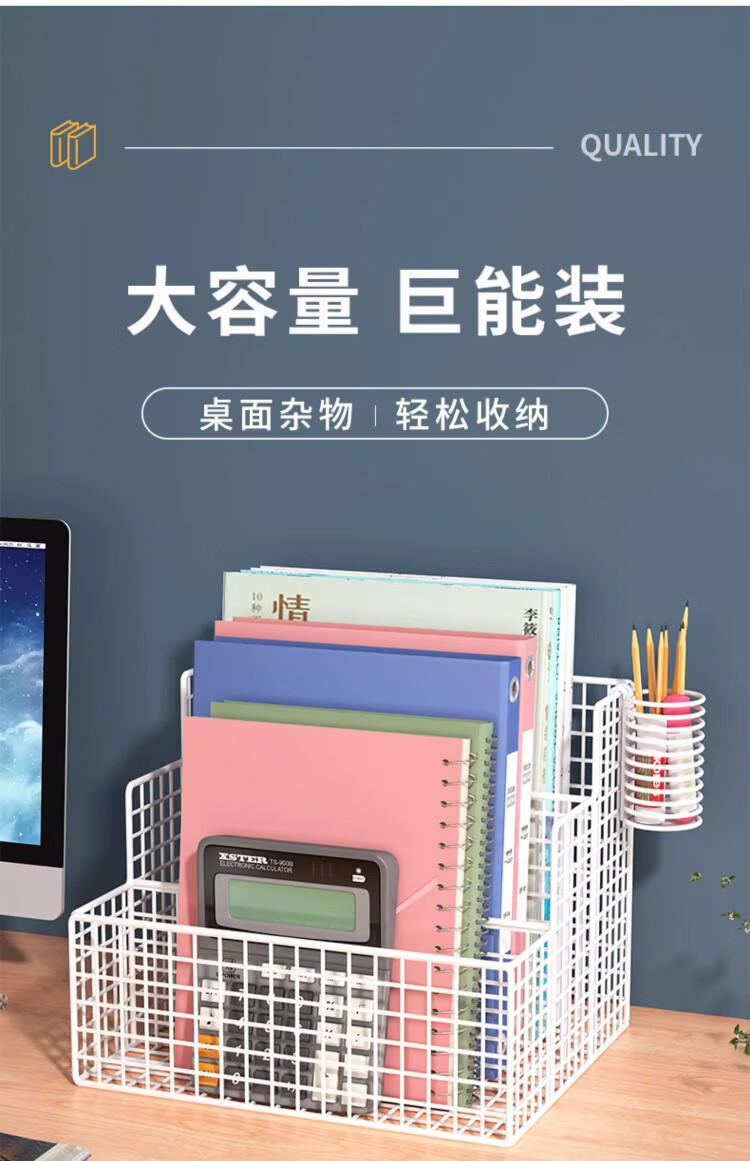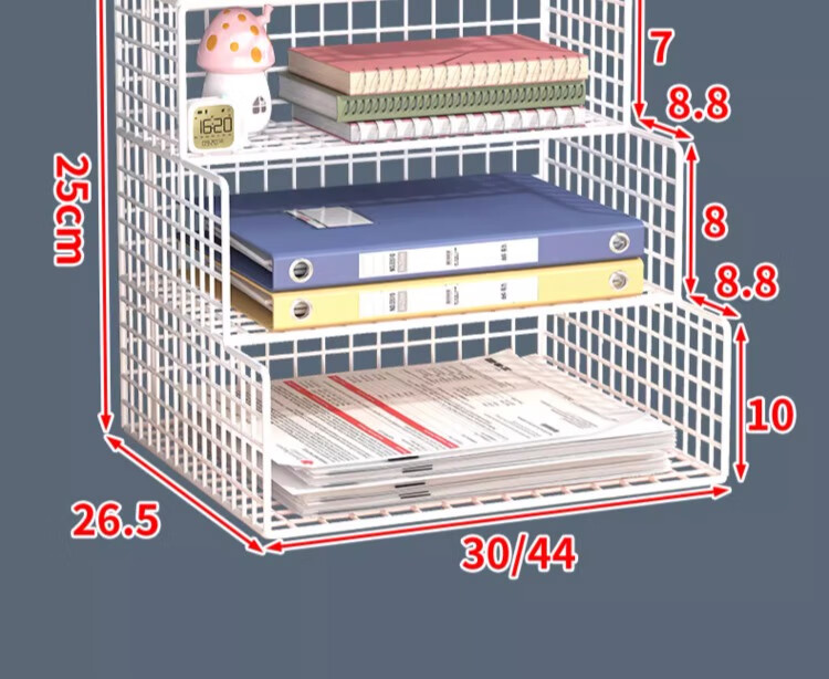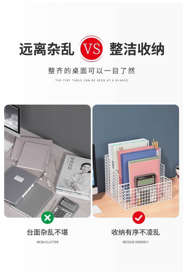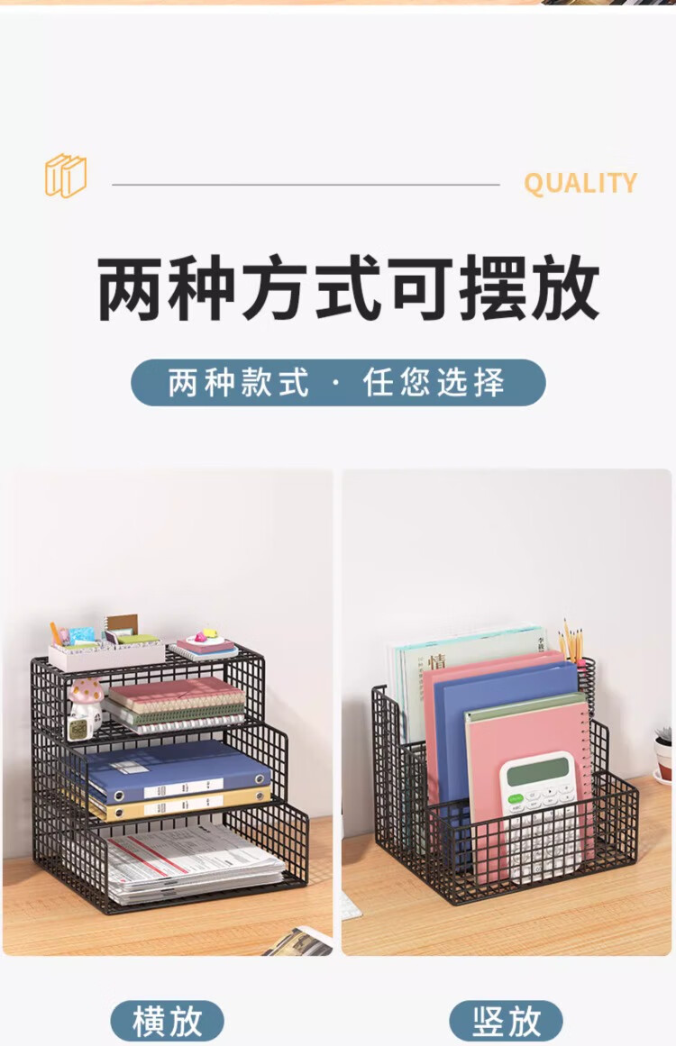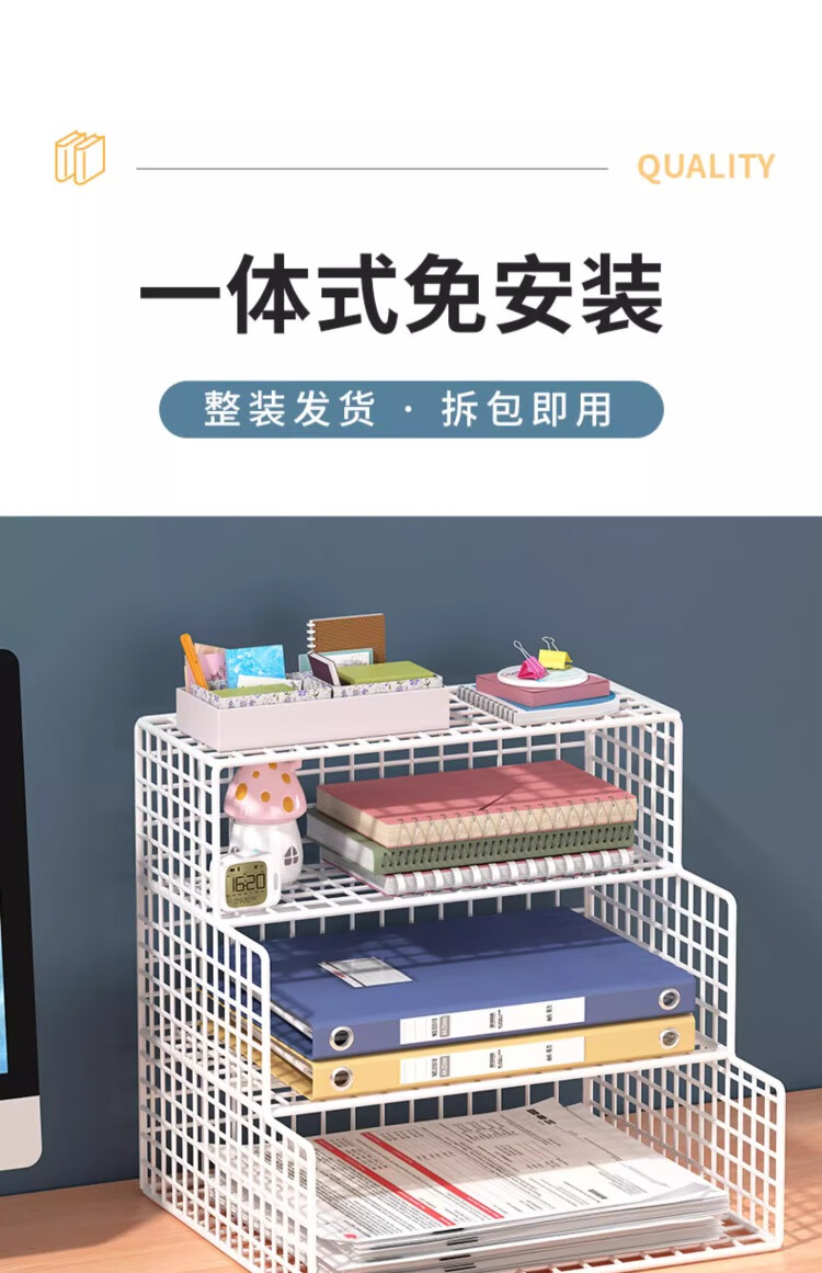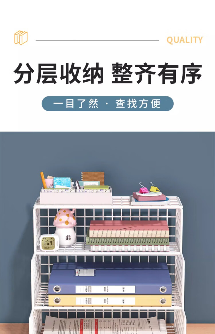 尔思家桌面置物架办公室文件多层文具收纳架笔记本侧立支架桌上立式书架 白色大号-横款