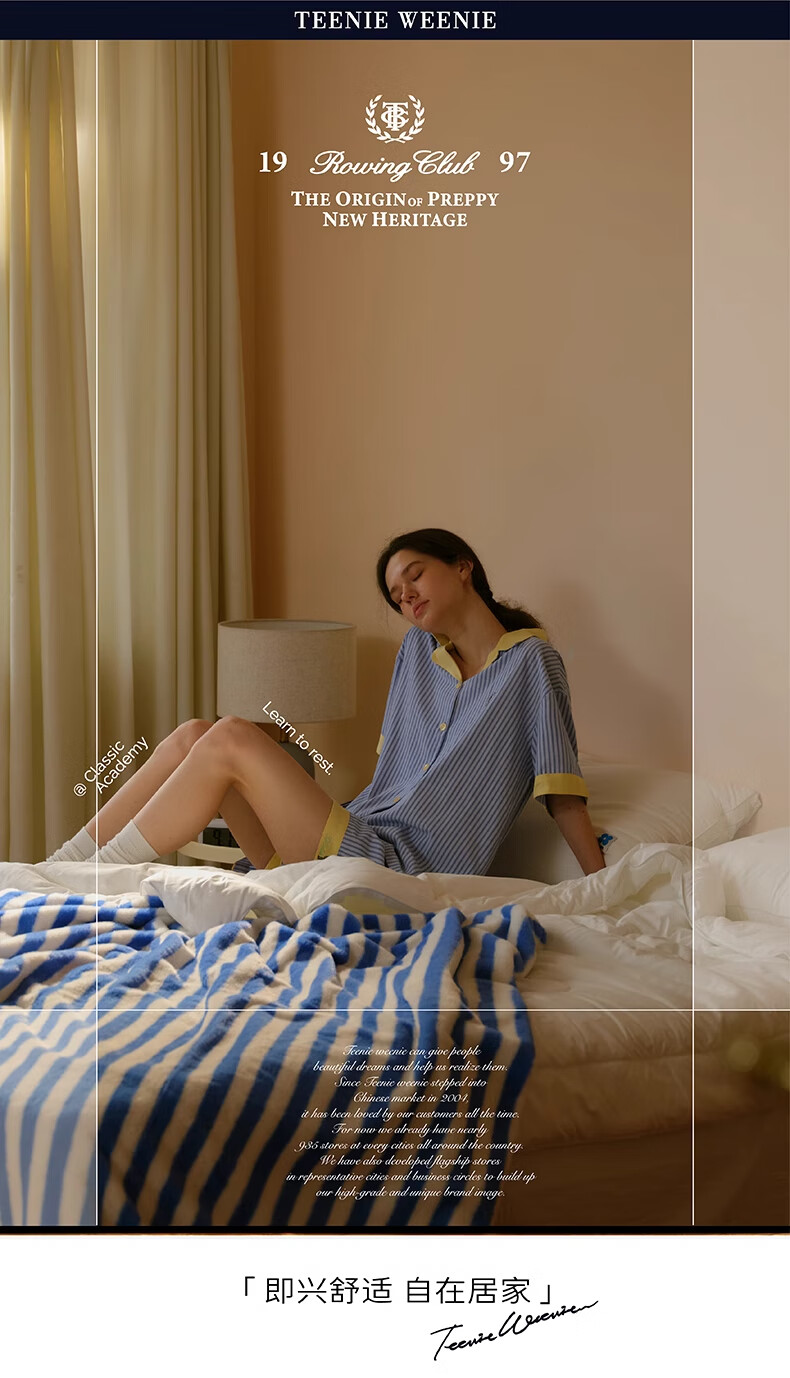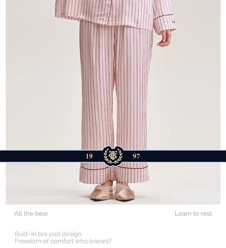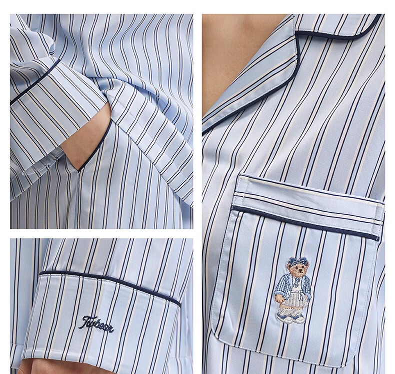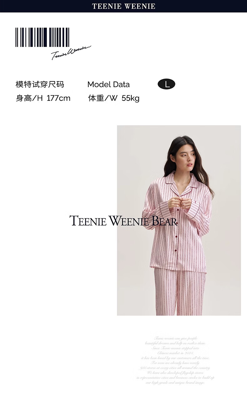 Teenie Weenie水光绸丝滑睡衣女款2025新款夏季凉感家居服套装 定格时光小熊丨巴黎粉 L
