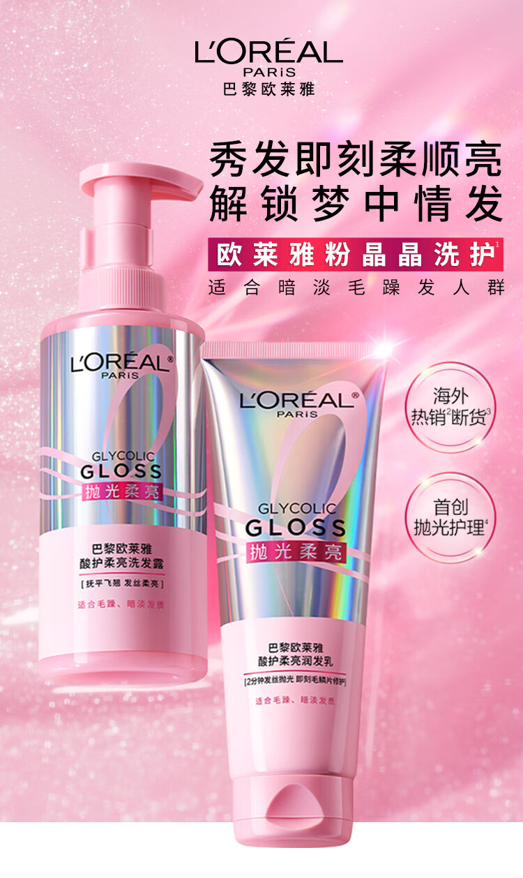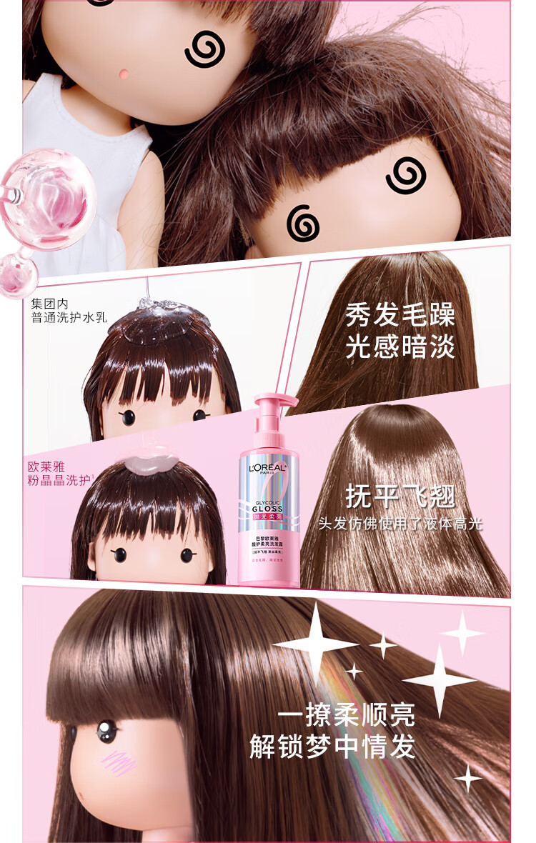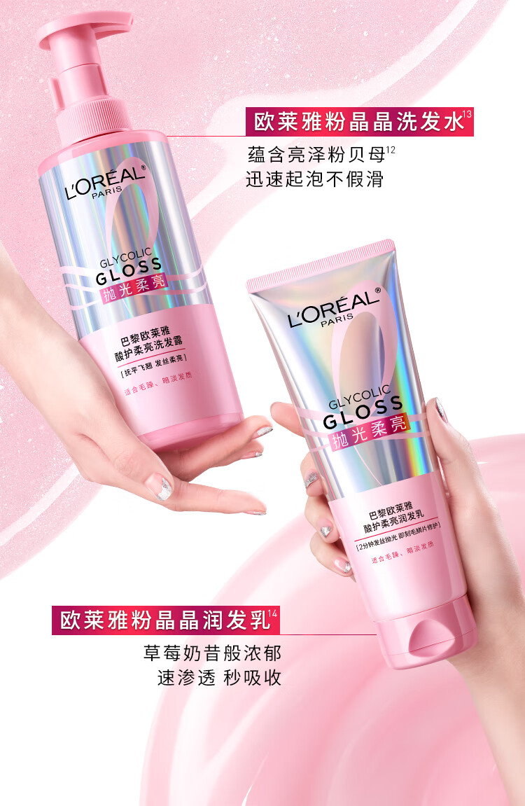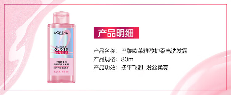 欧莱雅粉晶晶洗发露 闪耀柔顺改善干枯毛躁受损护理80ml试用旅行装