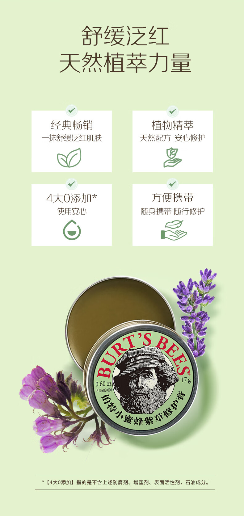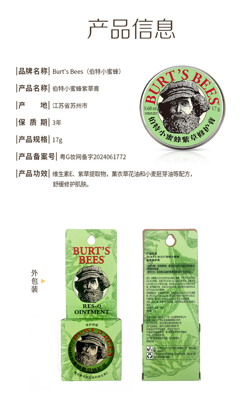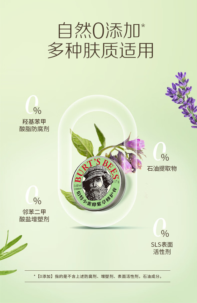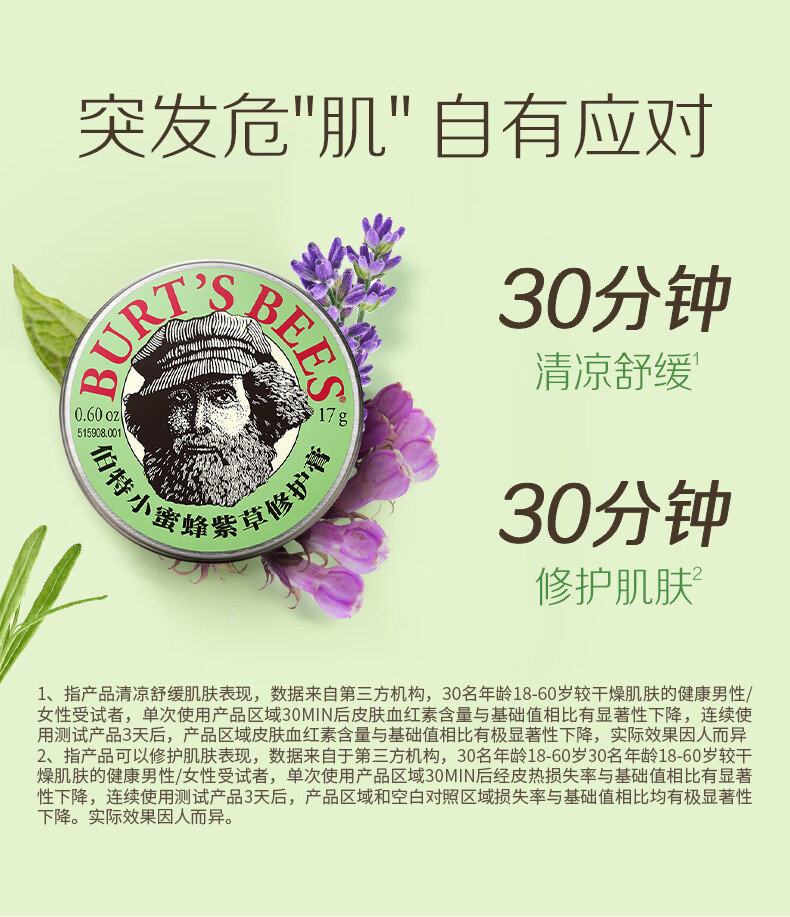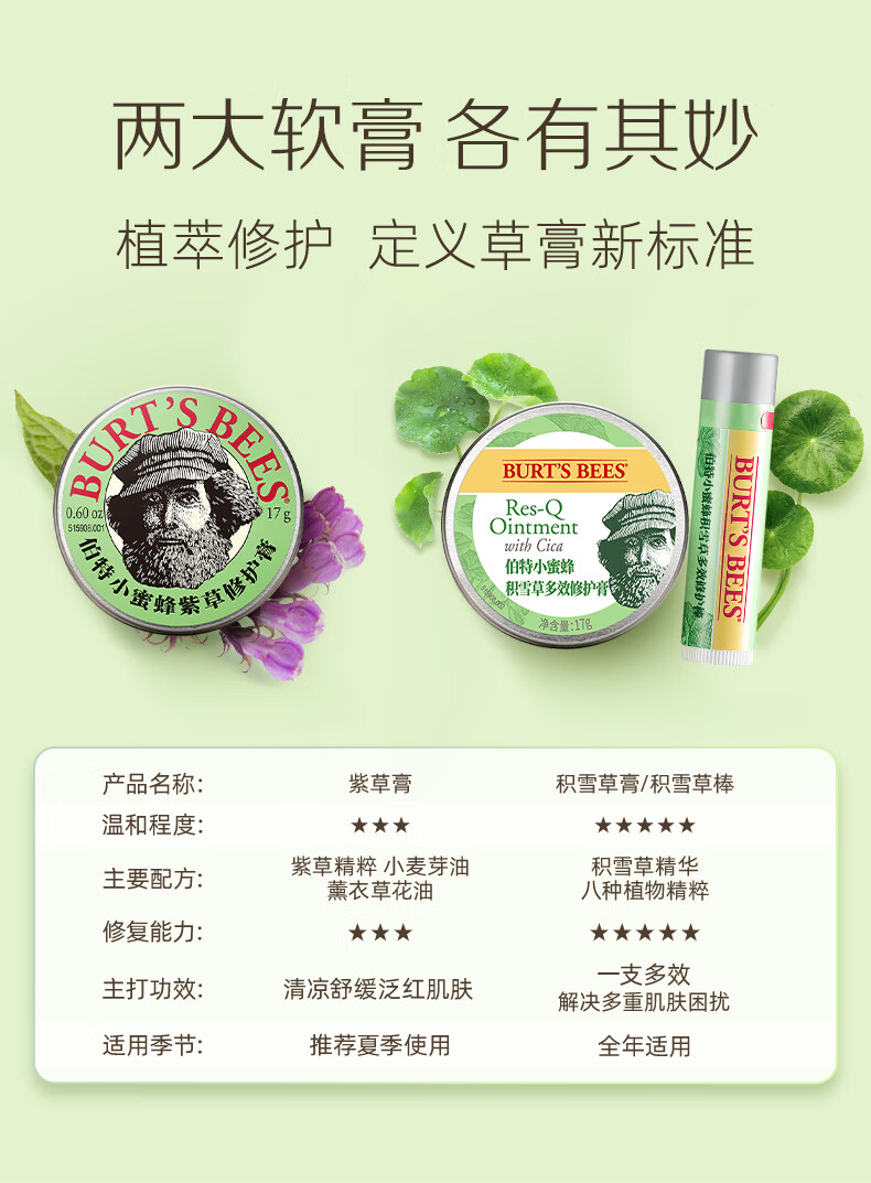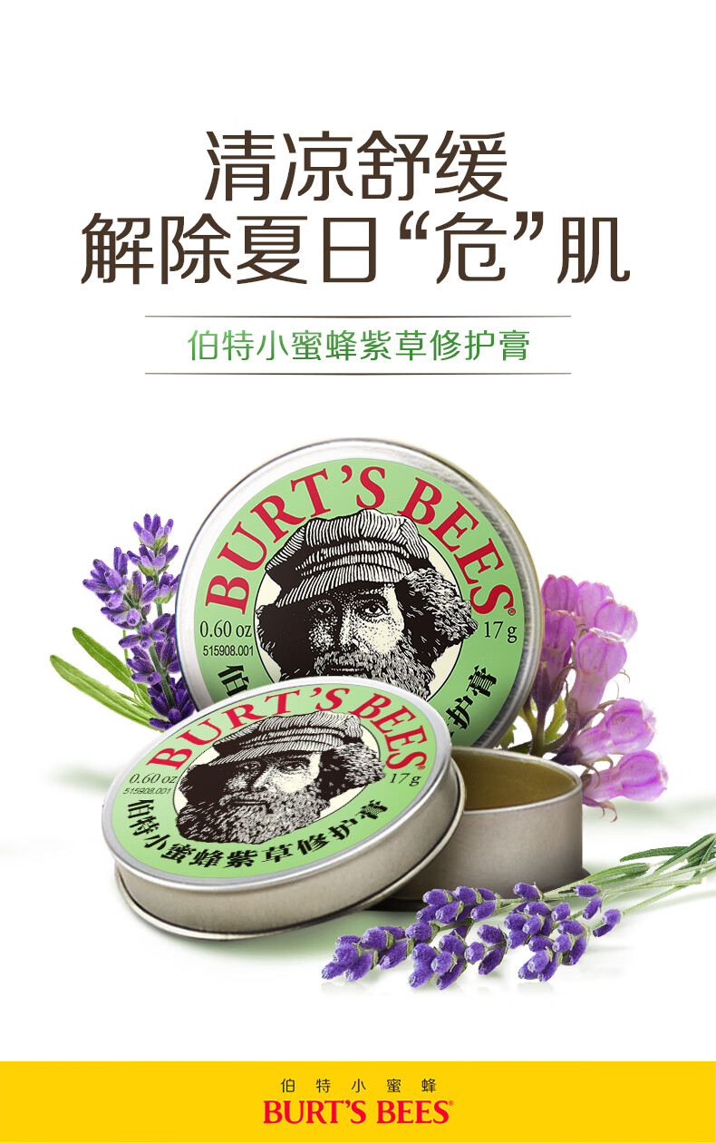 伯特小蜜蜂紫草膏17g 舒缓蚊虫叮咬修护青草植萃清凉膏儿童护肤赠植物精油贴
