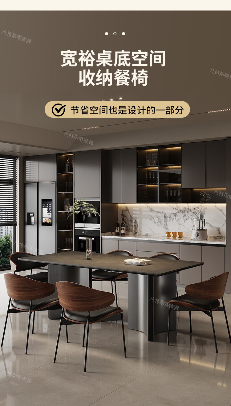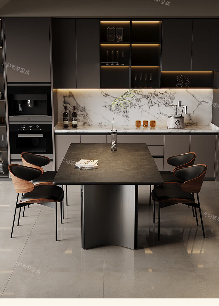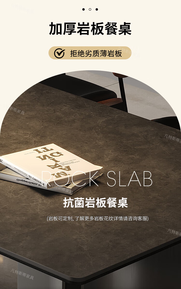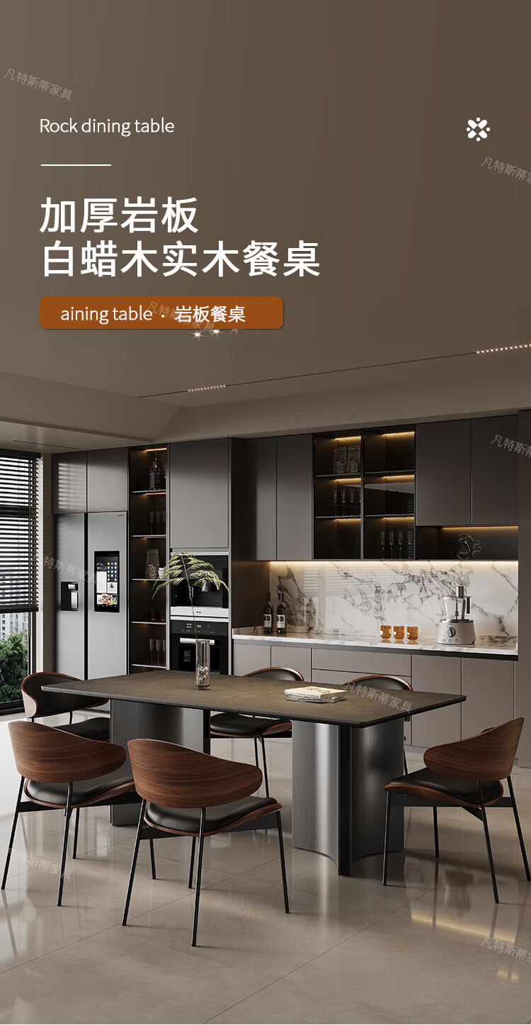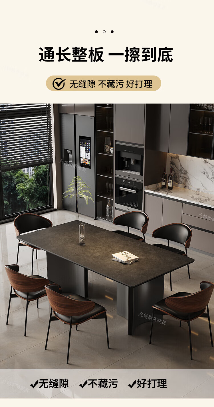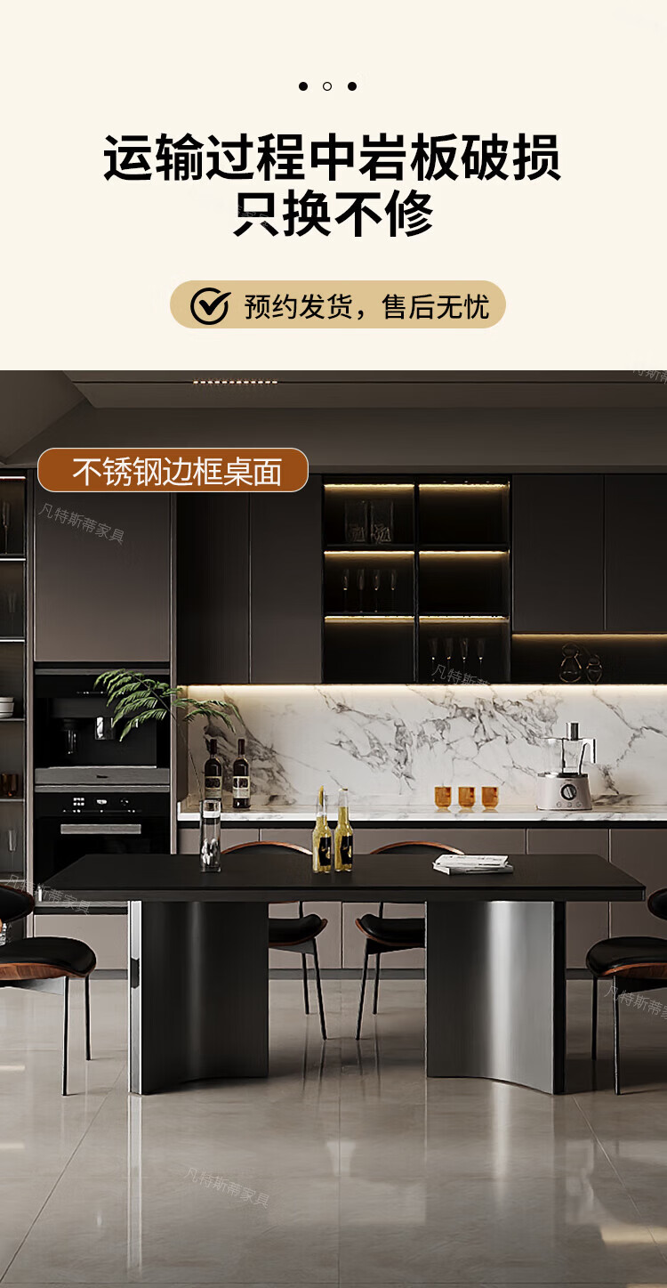 凡特斯蒂意式极简岩板餐桌椅子全套新款长方形餐桌现代轻奢客厅黑色吃饭桌 单餐桌 160cm *80cm*75cm