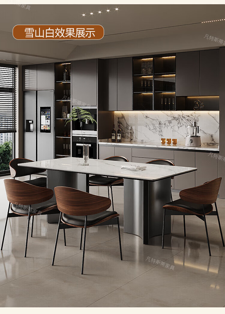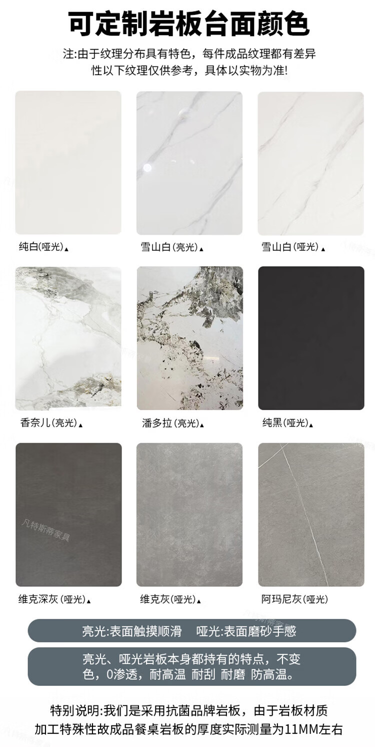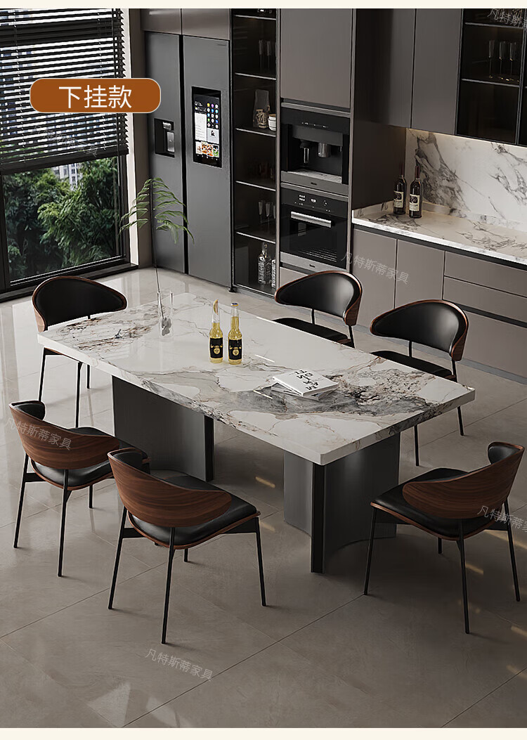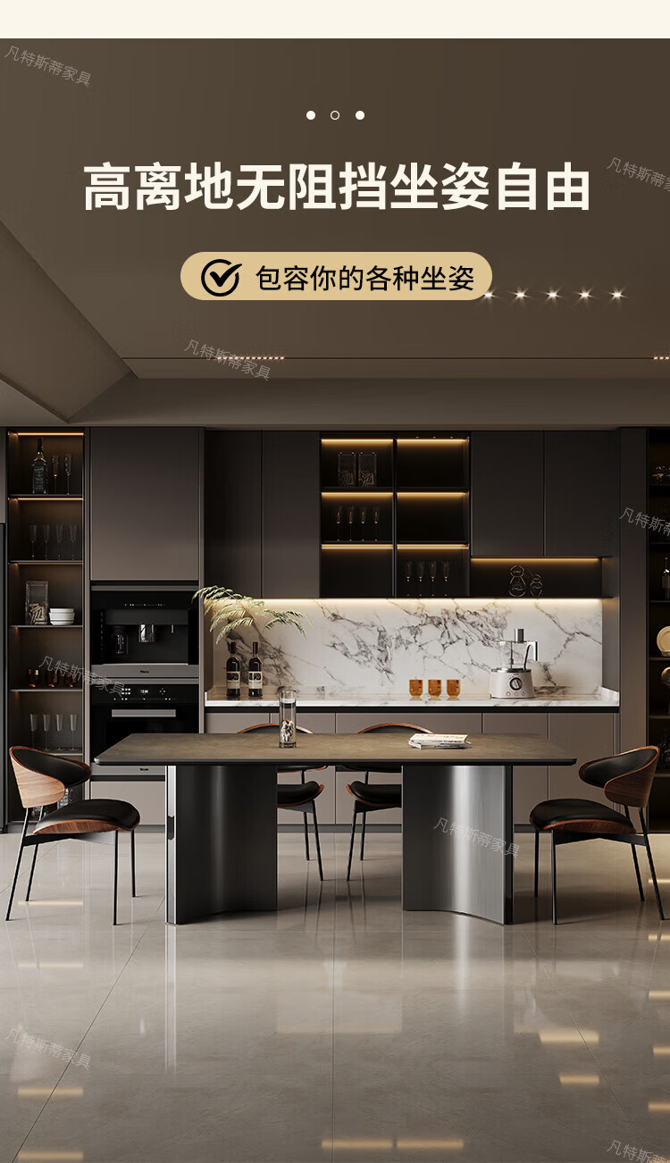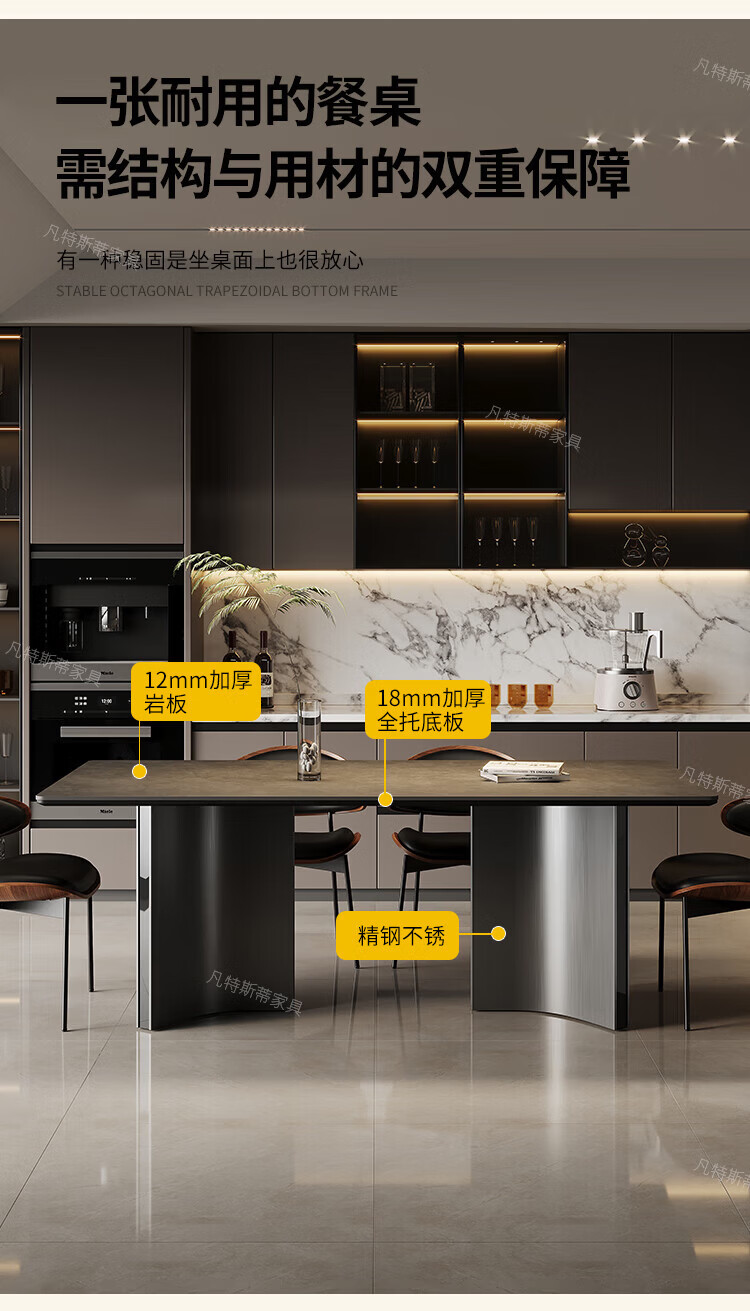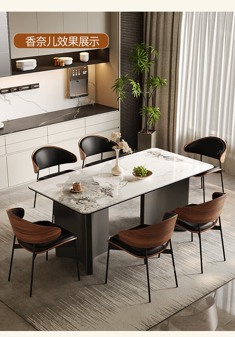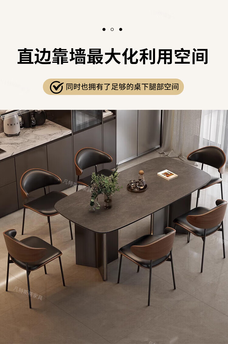 凡特斯蒂意式极简岩板餐桌椅子全套新款长方形餐桌现代轻奢客厅黑色吃饭桌 单餐桌 160cm *80cm*75cm