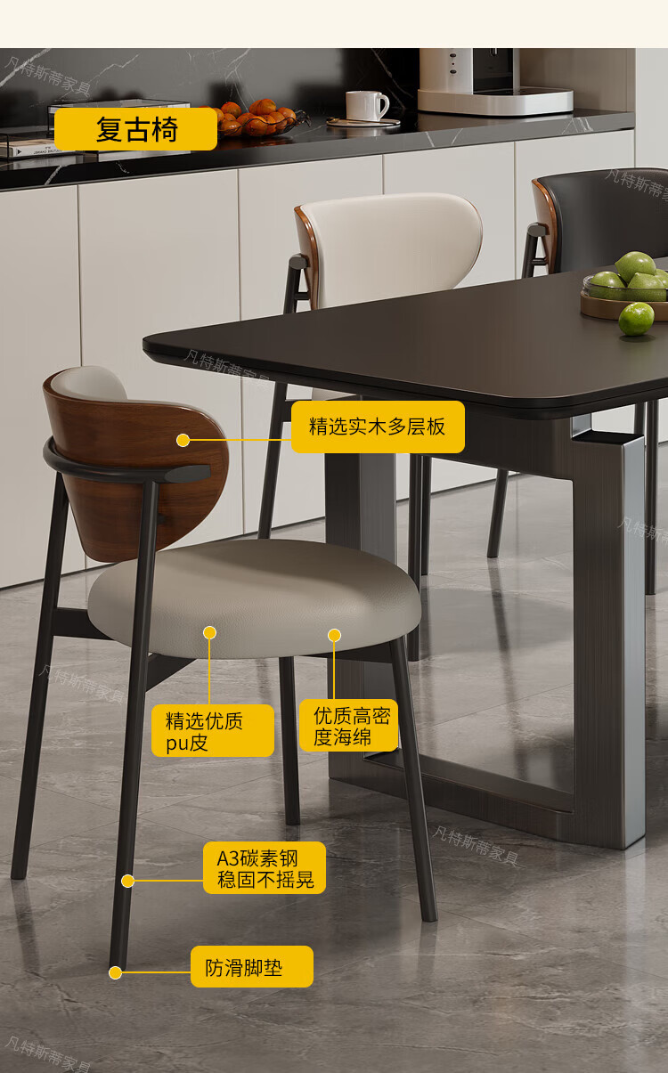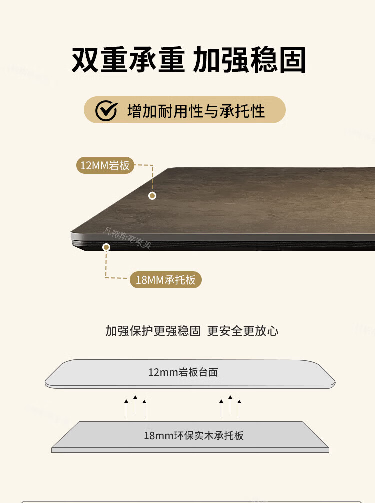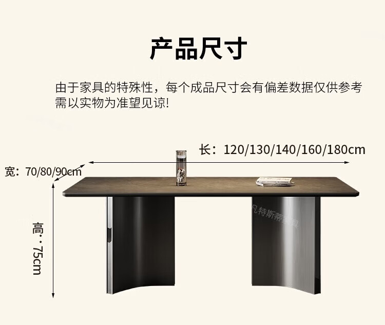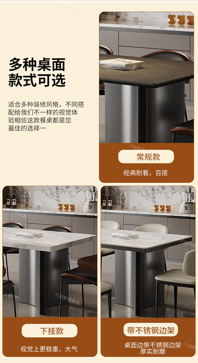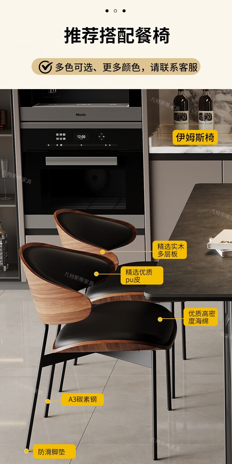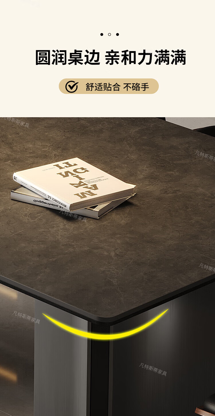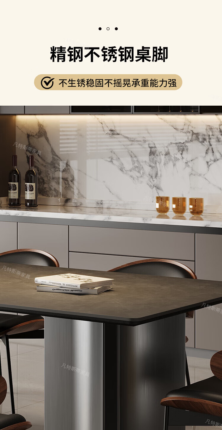 凡特斯蒂意式极简岩板餐桌椅子全套新款长方形餐桌现代轻奢客厅黑色吃饭桌 单餐桌 160cm *80cm*75cm