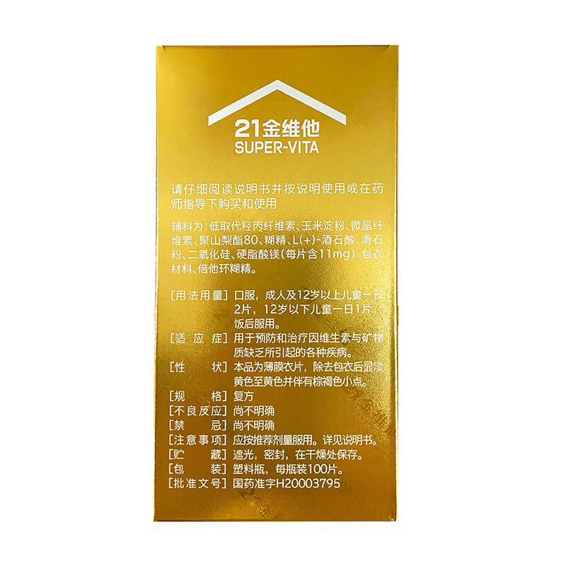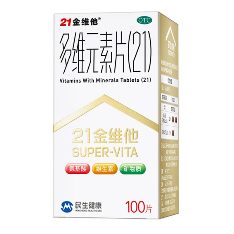 21金维他 多维元素片(21) 复合维生素B族矿物质 补充成人男女士维C维E含AD钙铁锌赖氨酸增强免疫力100片