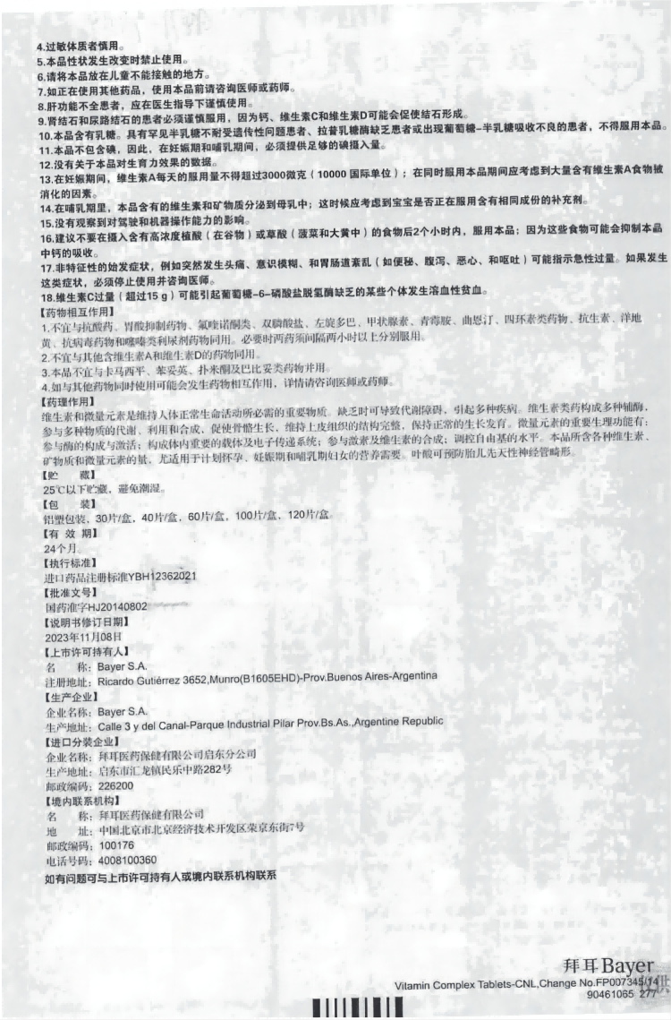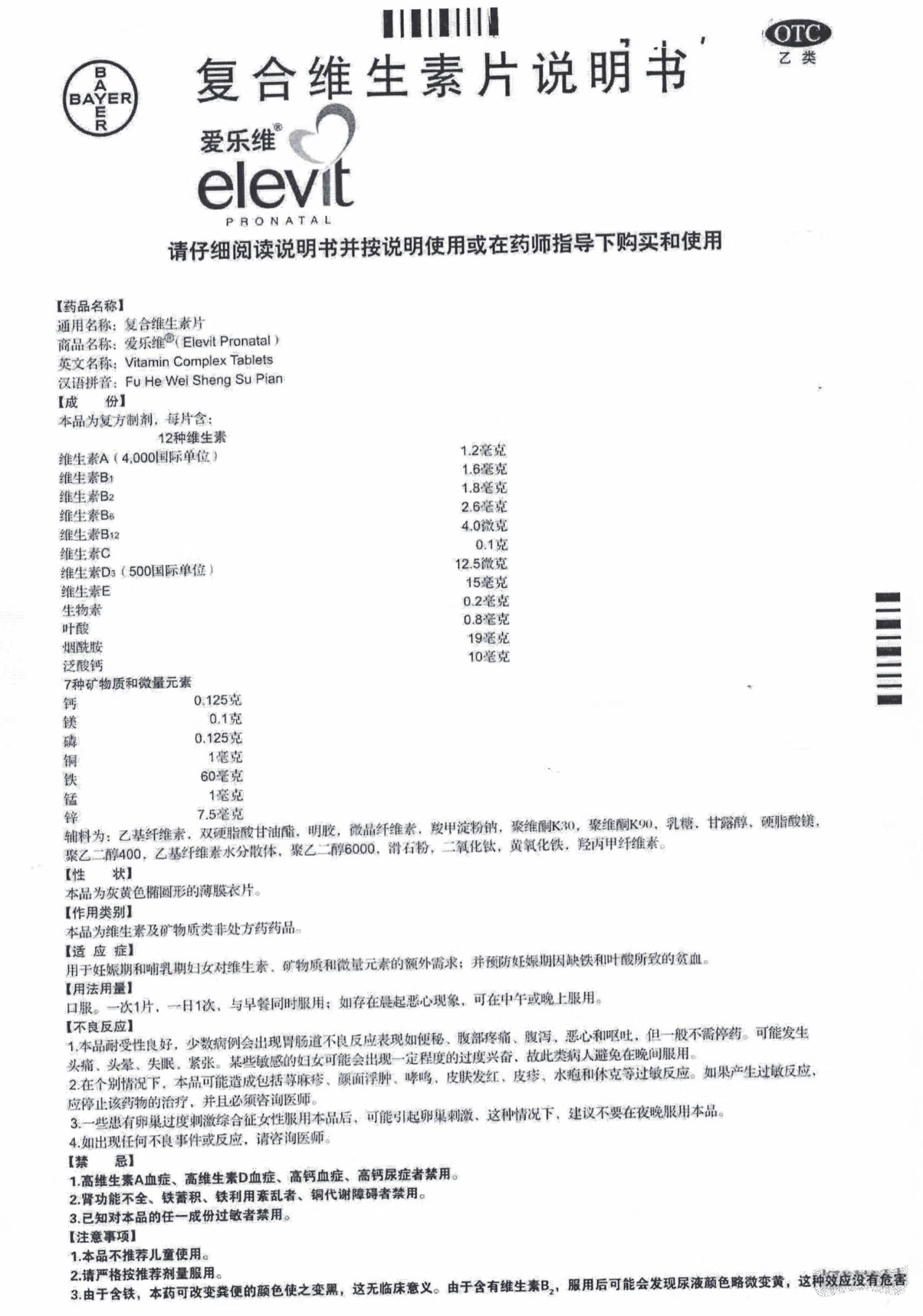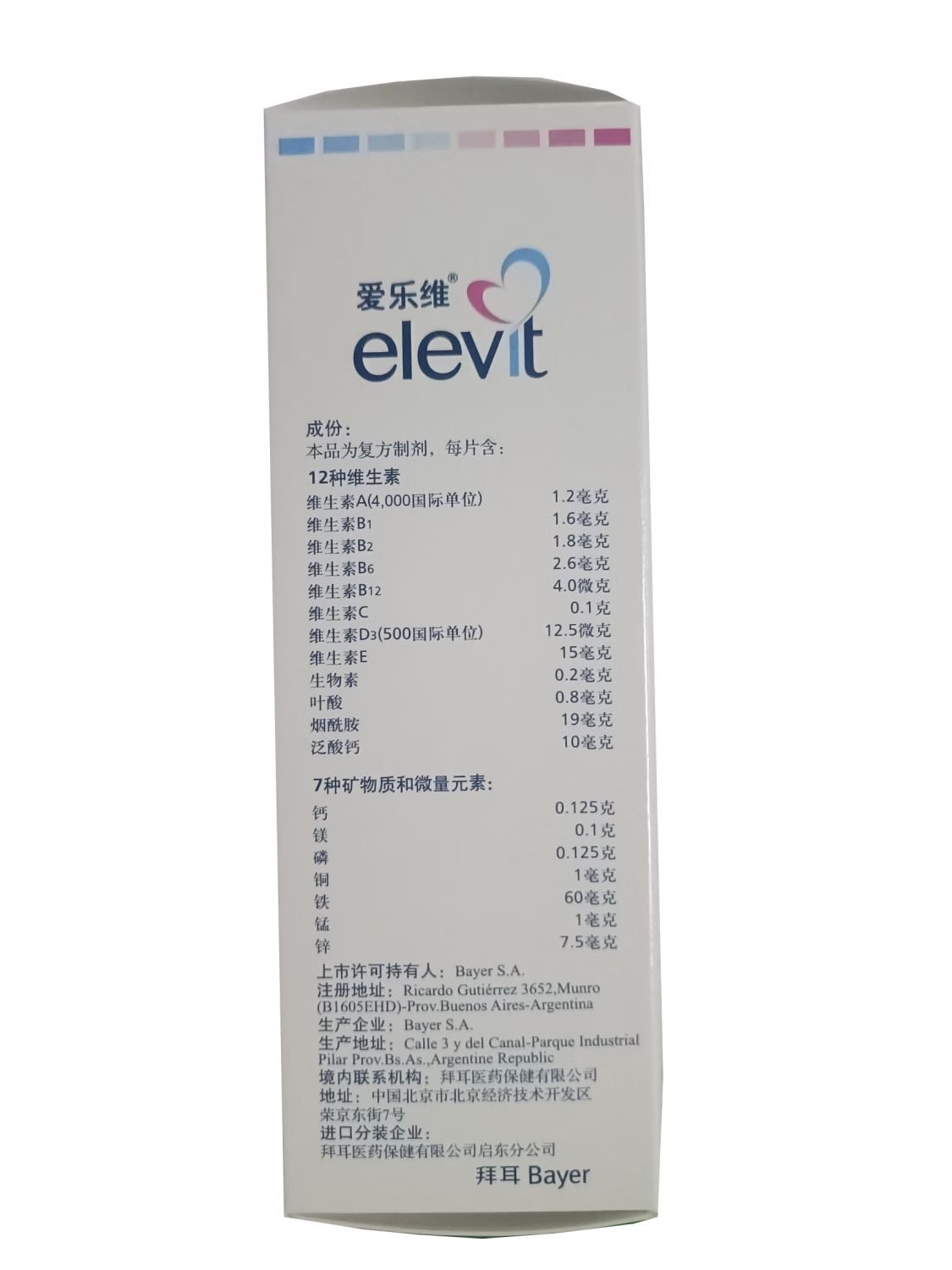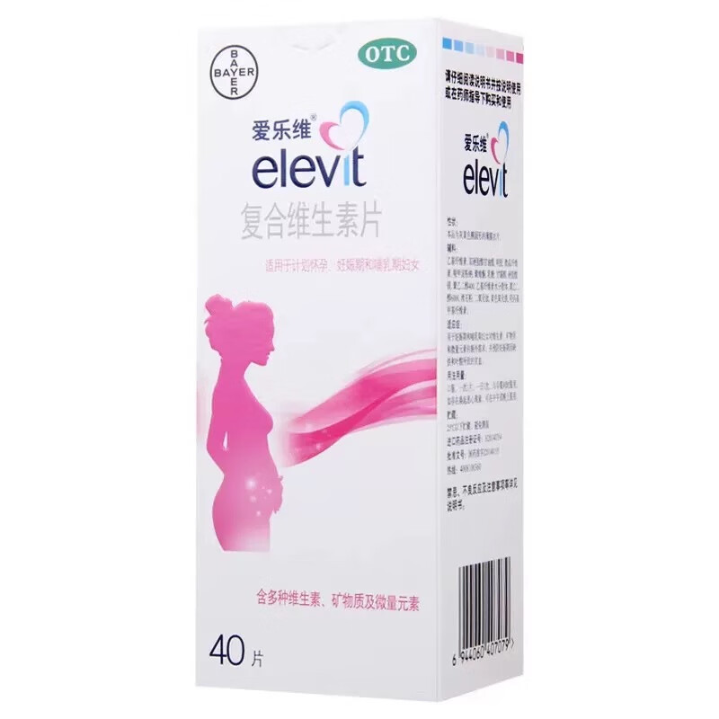 【原研好药】拜耳爱乐维叶酸 复合维生素片40片 补充钙铁锌维生素c 孕妇叶酸备孕片女性艾乐维