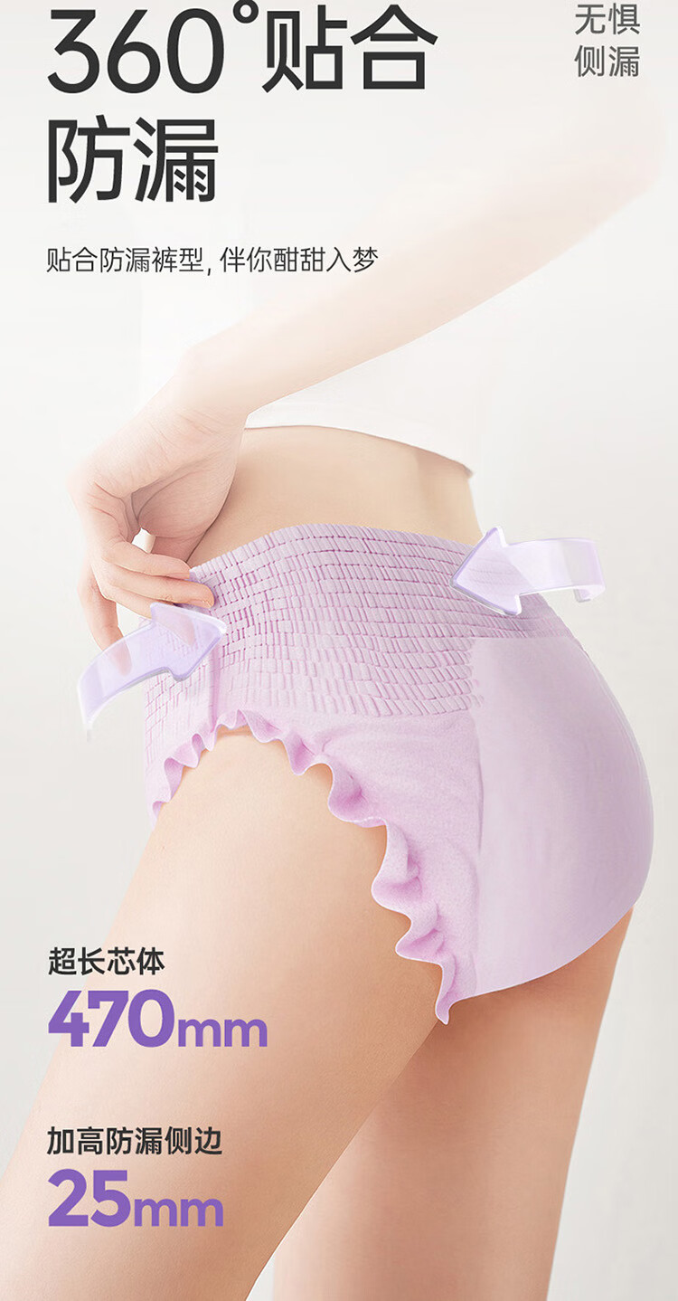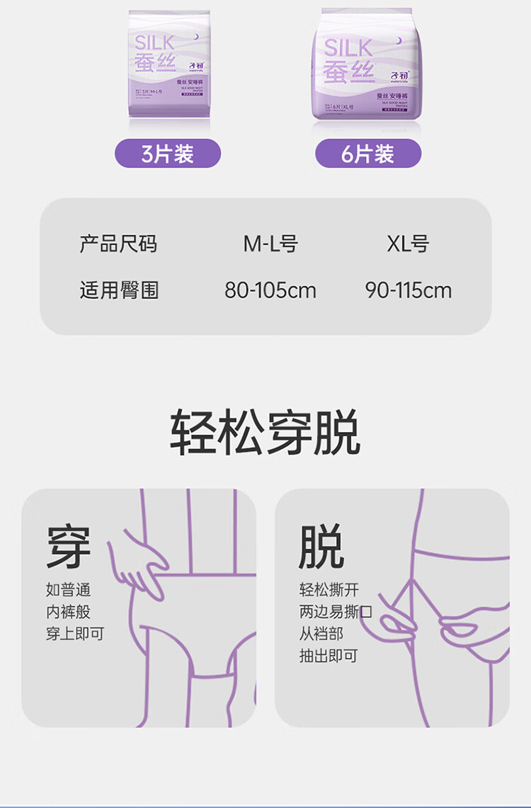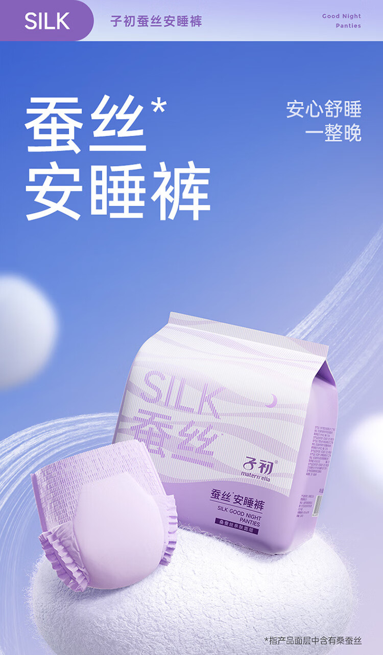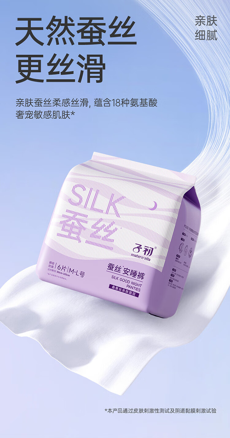 子初蚕丝安睡裤产妇卫生巾夜用裤型卫生巾女经期姨妈巾安心裤18片ML码