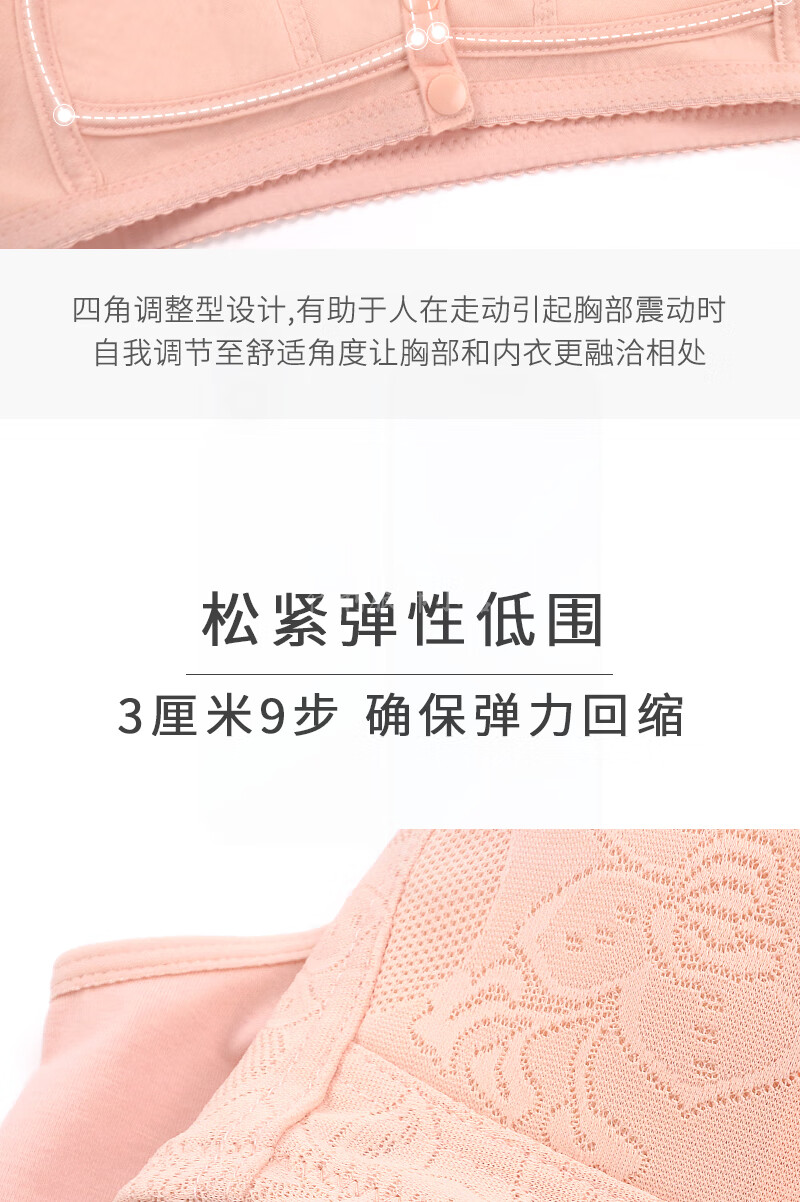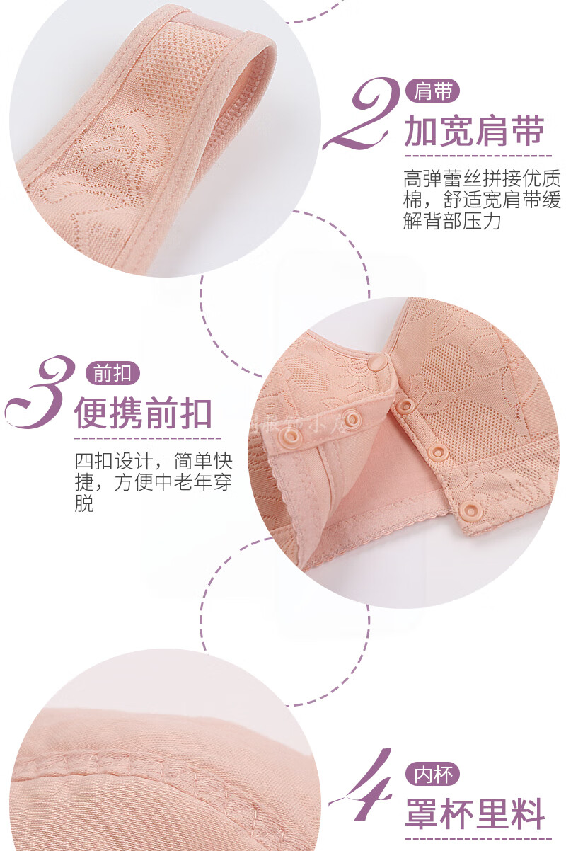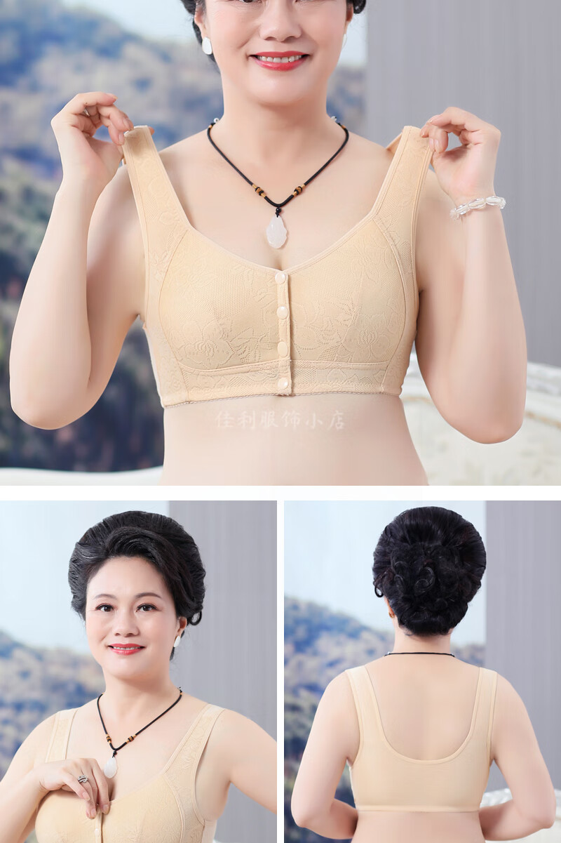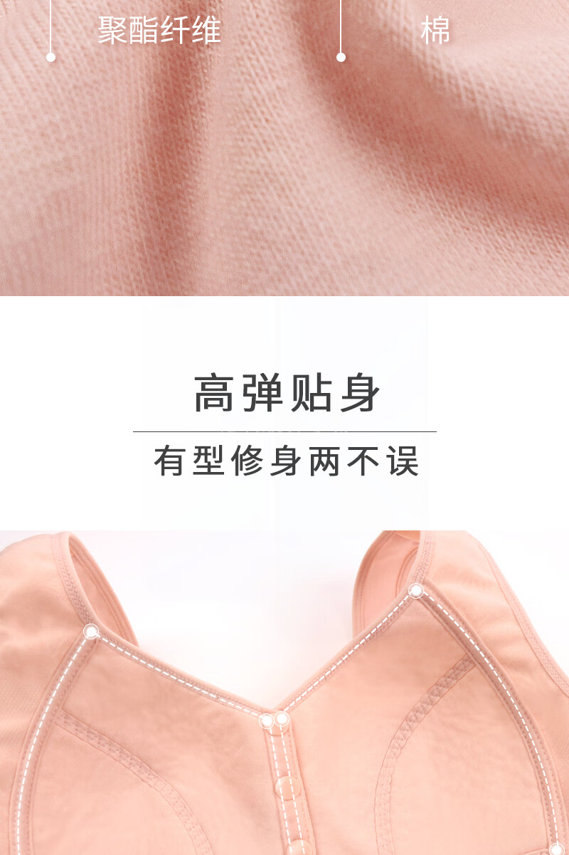中老年人薄款前开扣聚拢文胸无钢圈薄款内衣女防下垂大码背心胸罩 【1件装】杏色 【36码】建议80-96斤
