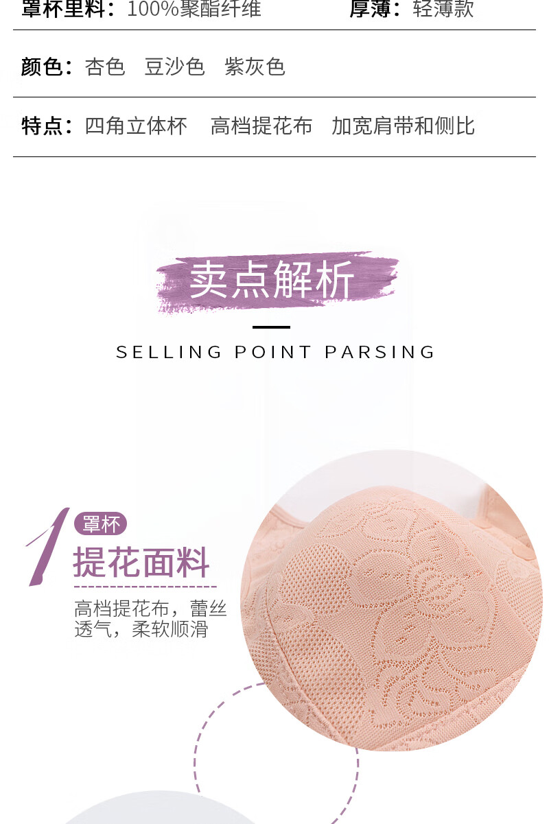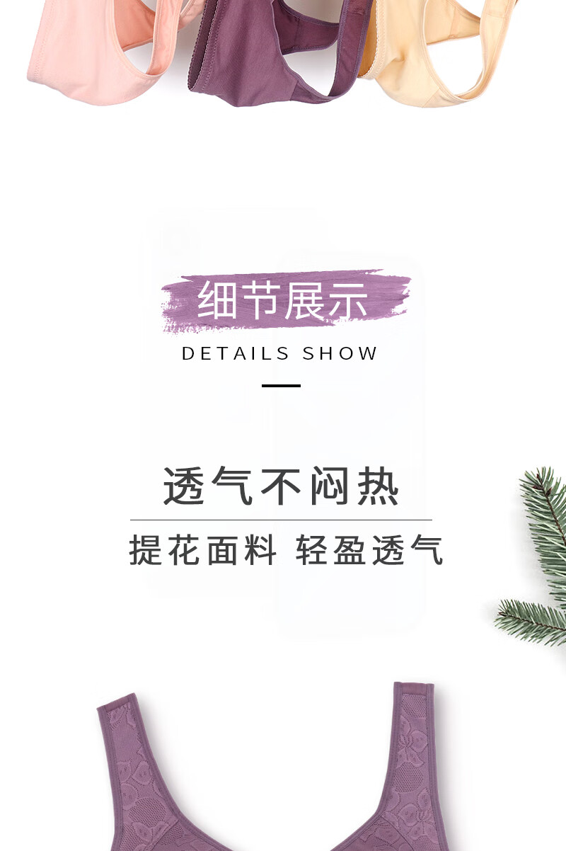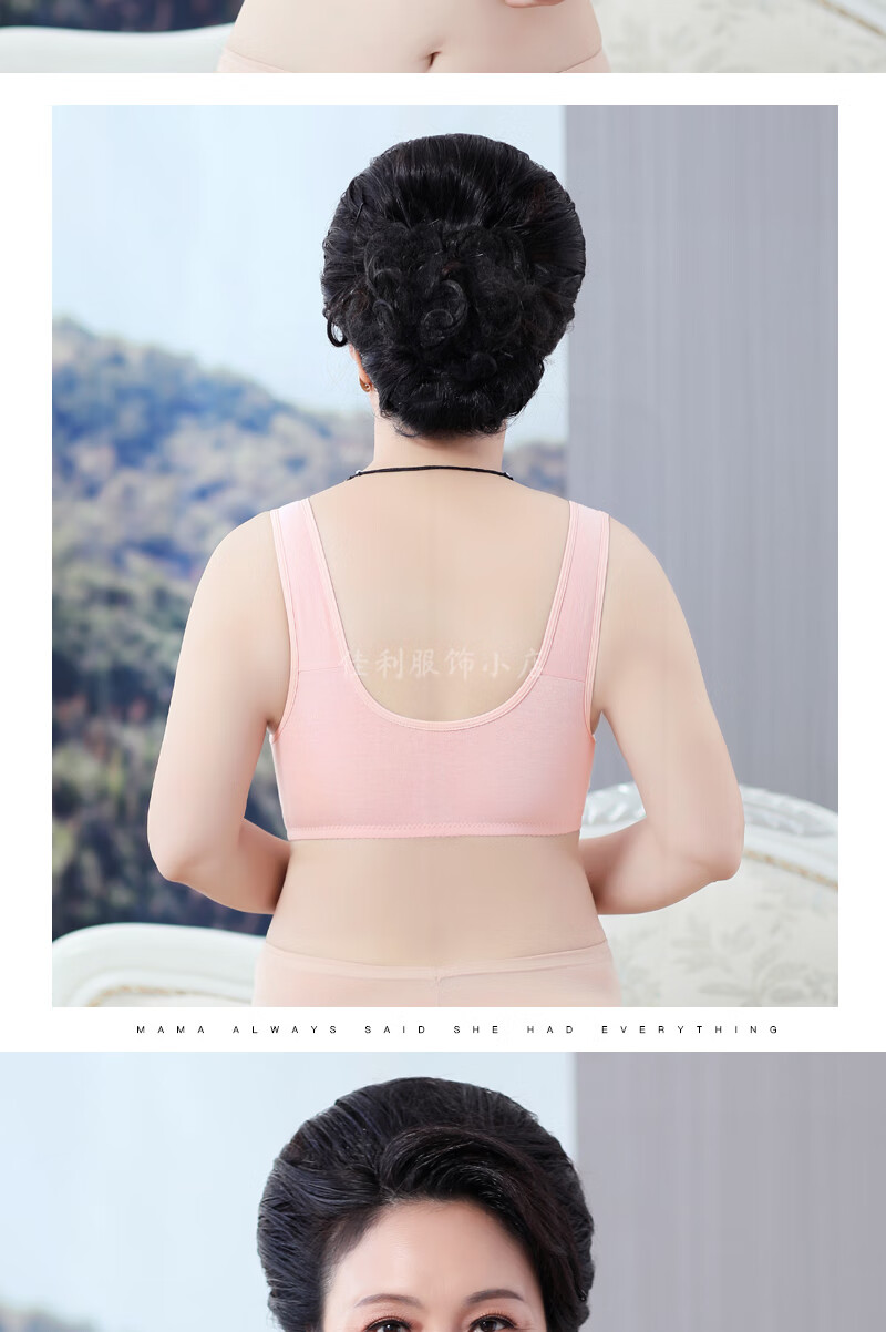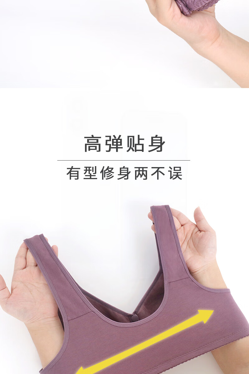 中年妈妈前开扣无钢圈文胸薄款聚拢防下垂睡眠胸罩背心式内衣女夏 紫灰+杏色【2件裝】 42码【建议120-133斤】