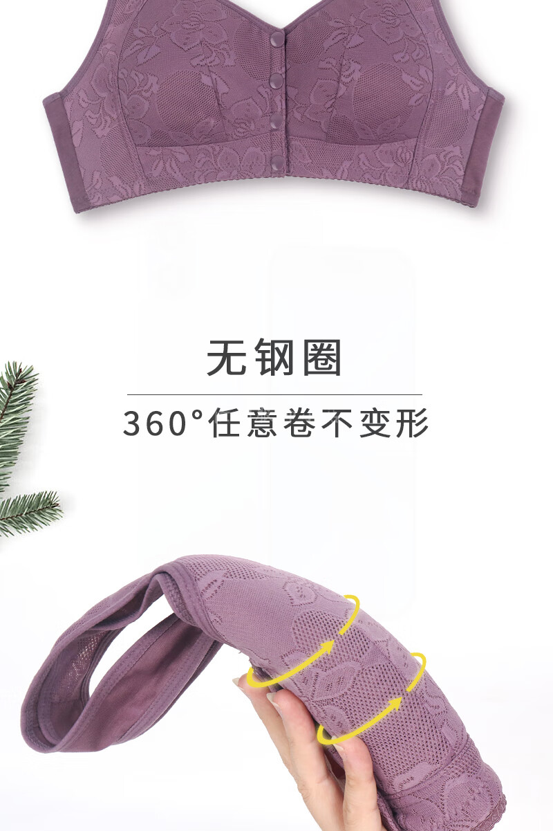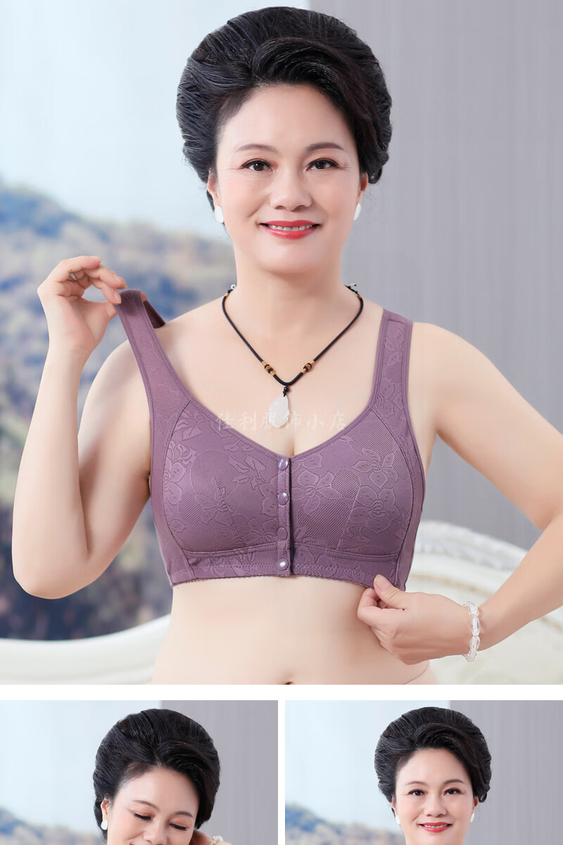 中老年妈妈前扣文胸薄款无钢圈内衣女聚拢防下垂收副乳背心式胸罩 【紫灰】一件装 95B 【42码】建议120-133斤