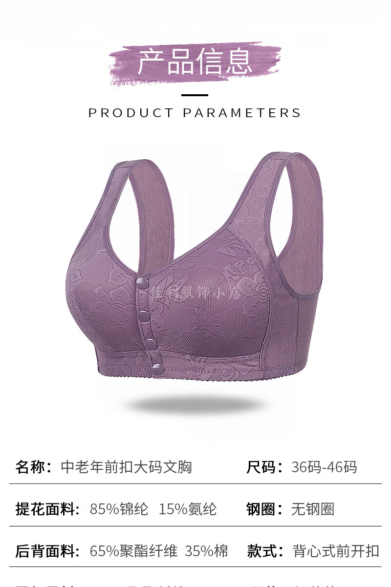 薄款前开扣无钢圈聚拢文胸中年妈妈防下垂睡眠内衣女大码背心胸罩 【紫灰】1件裝 42码(建议120-133斤)