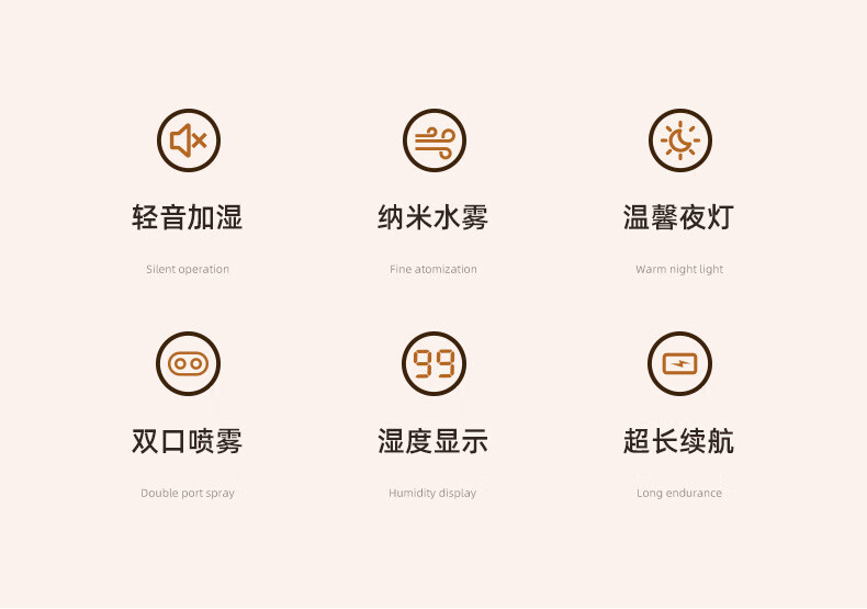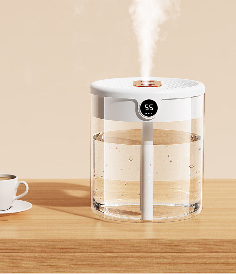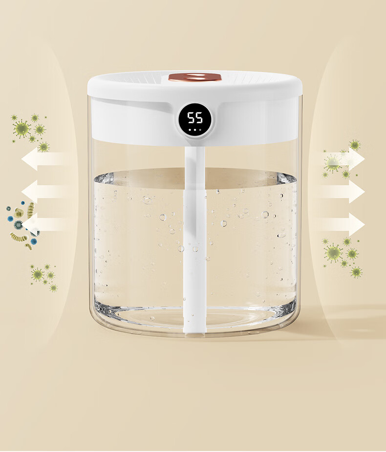 KESI JAR新款2L双喷加湿器usb大容量家用静音卧室办公室小夜灯数显 白色(数显版
