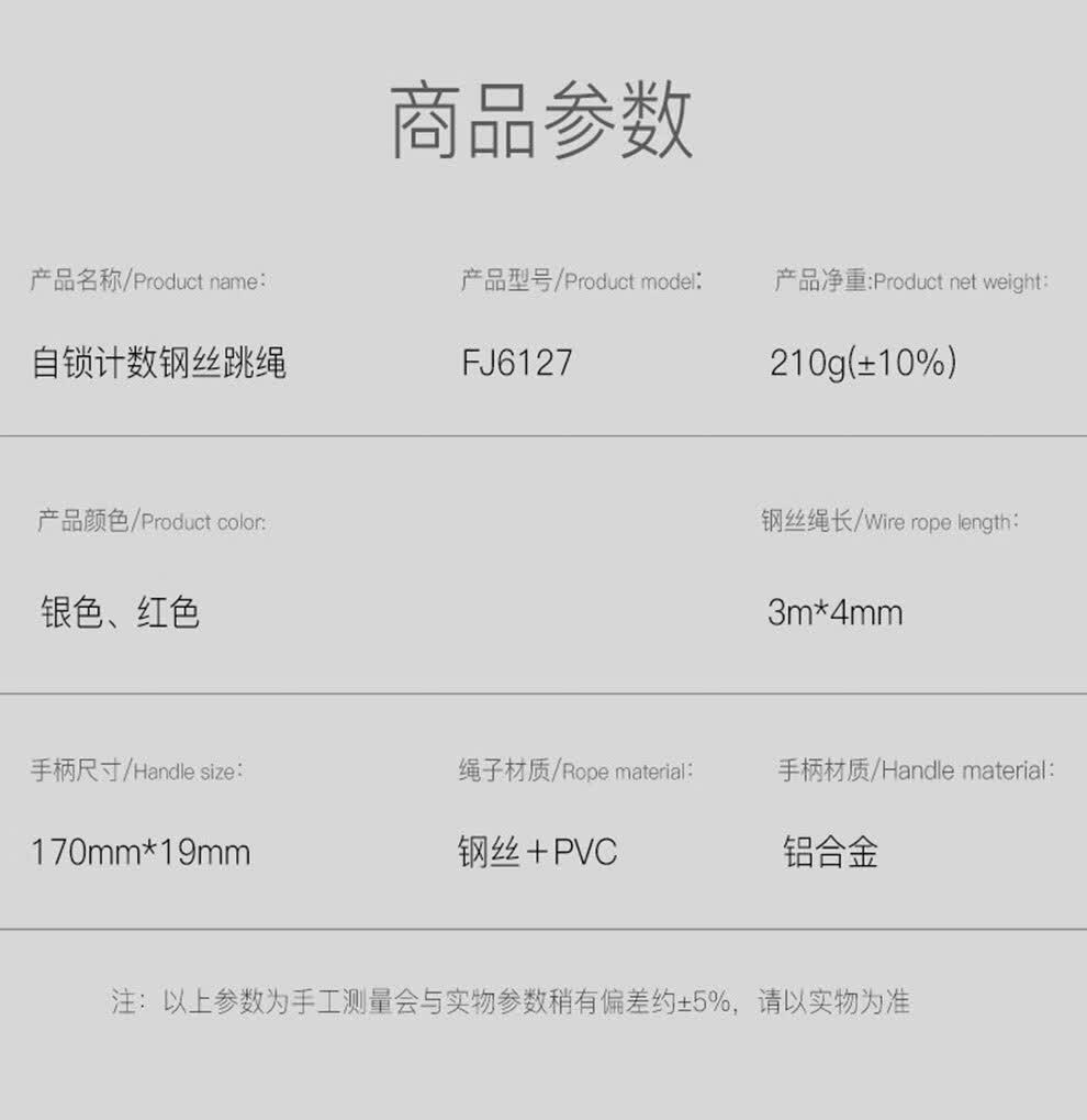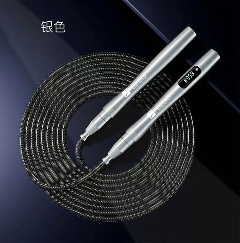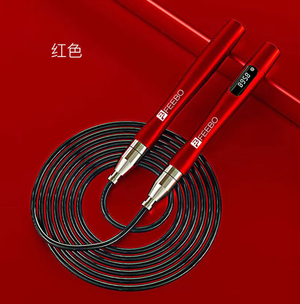 FEEBO跳绳计数无绳自锁专业双轴承可调成人健身中小学生竞速运动钢丝绳 自锁双轴承充电计数-FJ6127红色