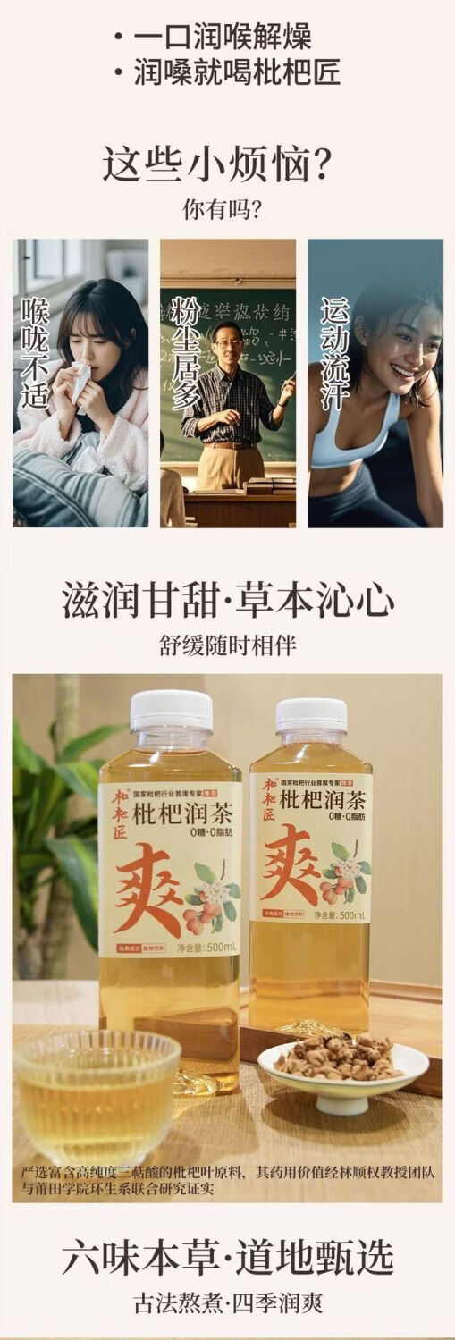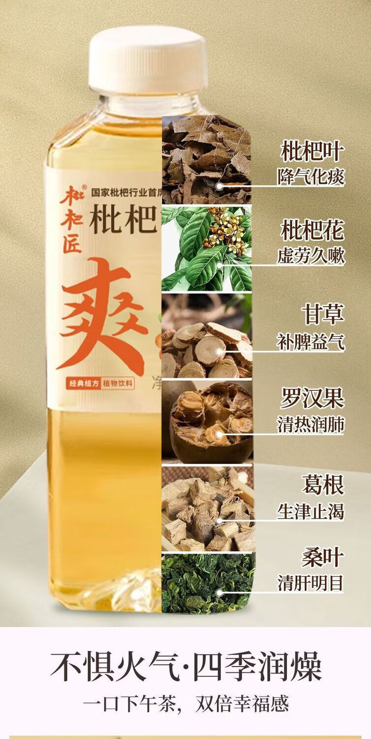 美意颂枇杷匠润茶草本植物黄金配方饮料解腻中草药黄金配方茶饮料 节日快乐【福利买12瓶送8瓶】共20瓶