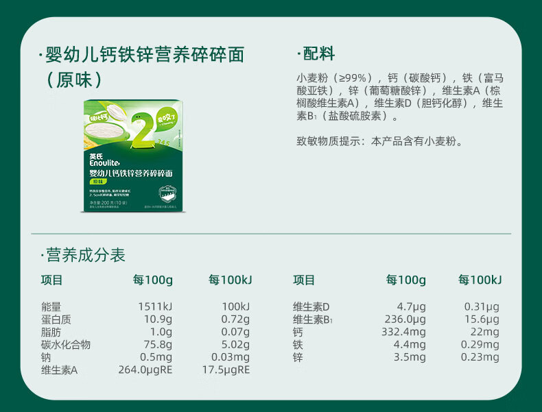 英氏婴幼儿钙铁锌碎碎面200g 婴儿辅食面条宝宝早餐儿童面 采销真验厂