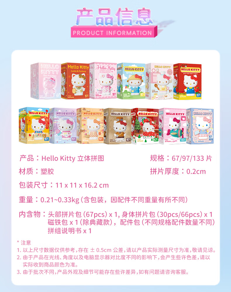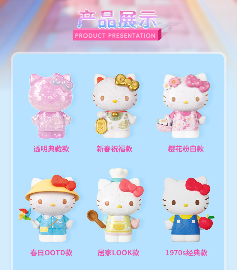 3D-JP三丽鸥HelloKitty50周年潮玩手办3d立体拼图玩具diy情侣生日礼物