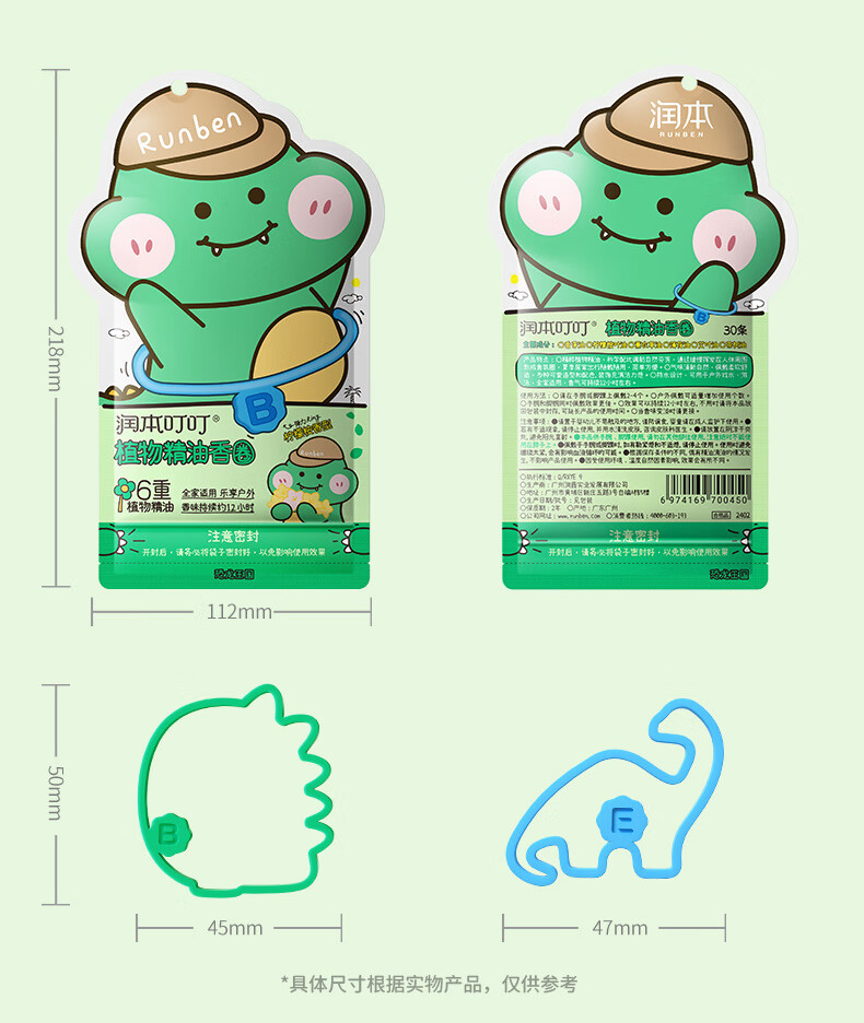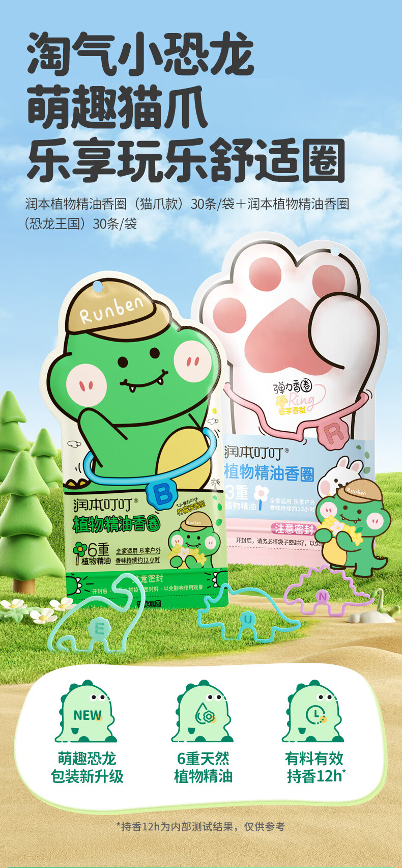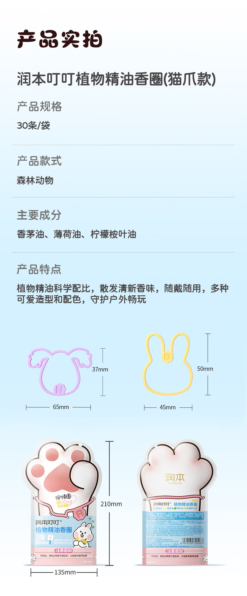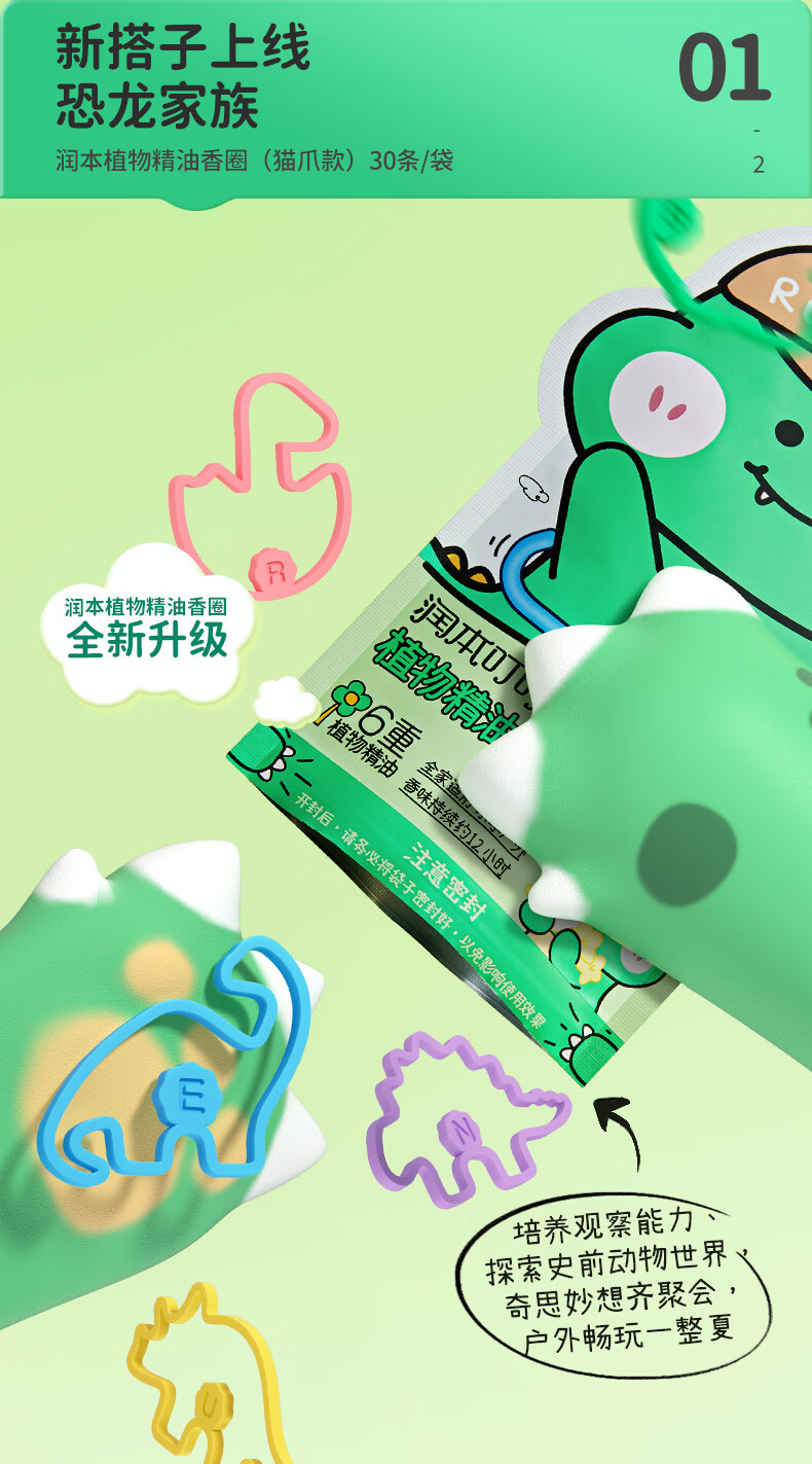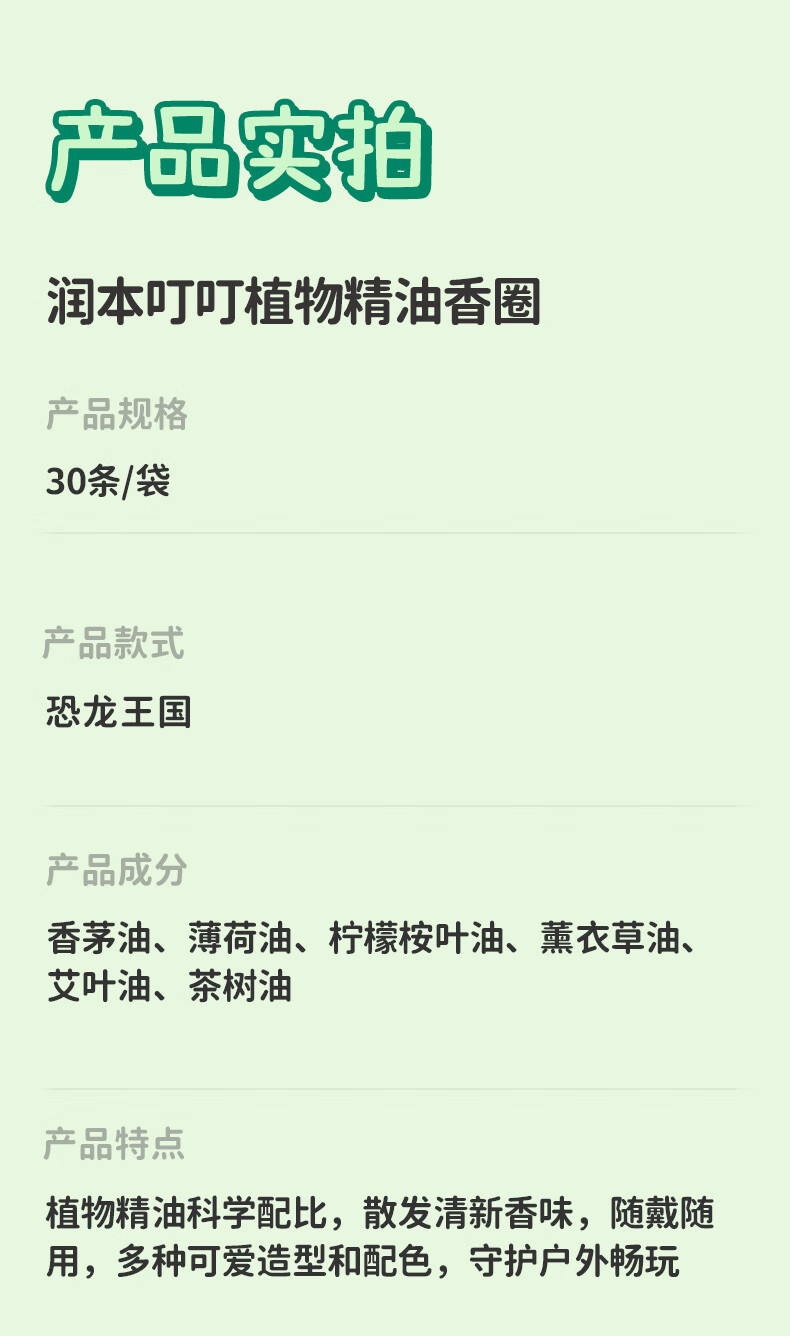润本儿童叮叮植物精油手环30条*2户外儿童防护香圈森林动物+恐龙王国
