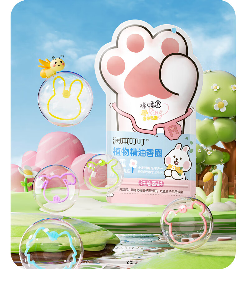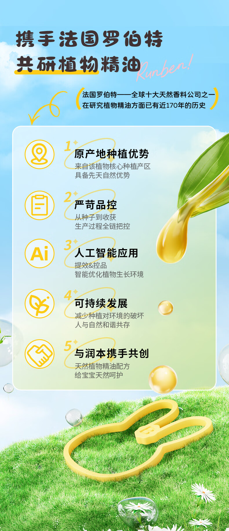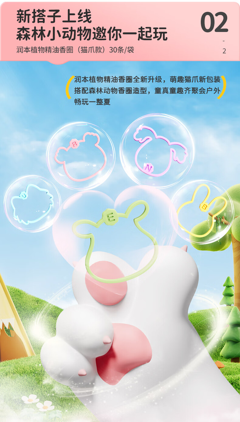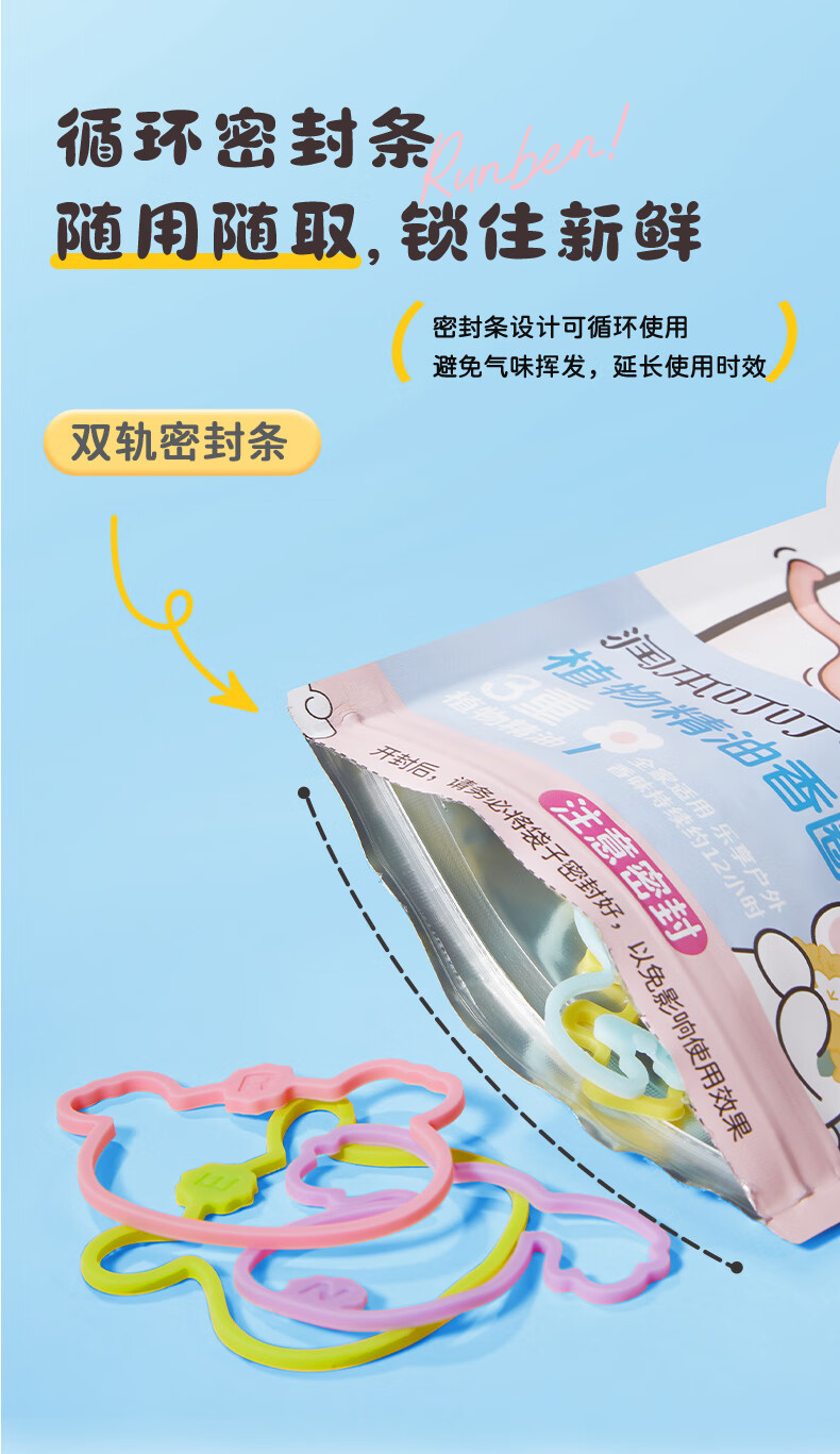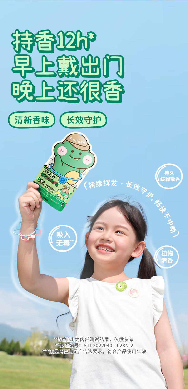 润本儿童叮叮植物精油手环30条*2户外儿童防护香圈森林动物+恐龙王国