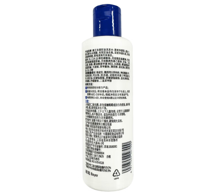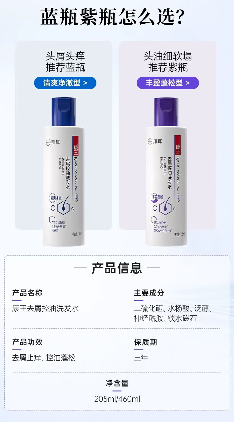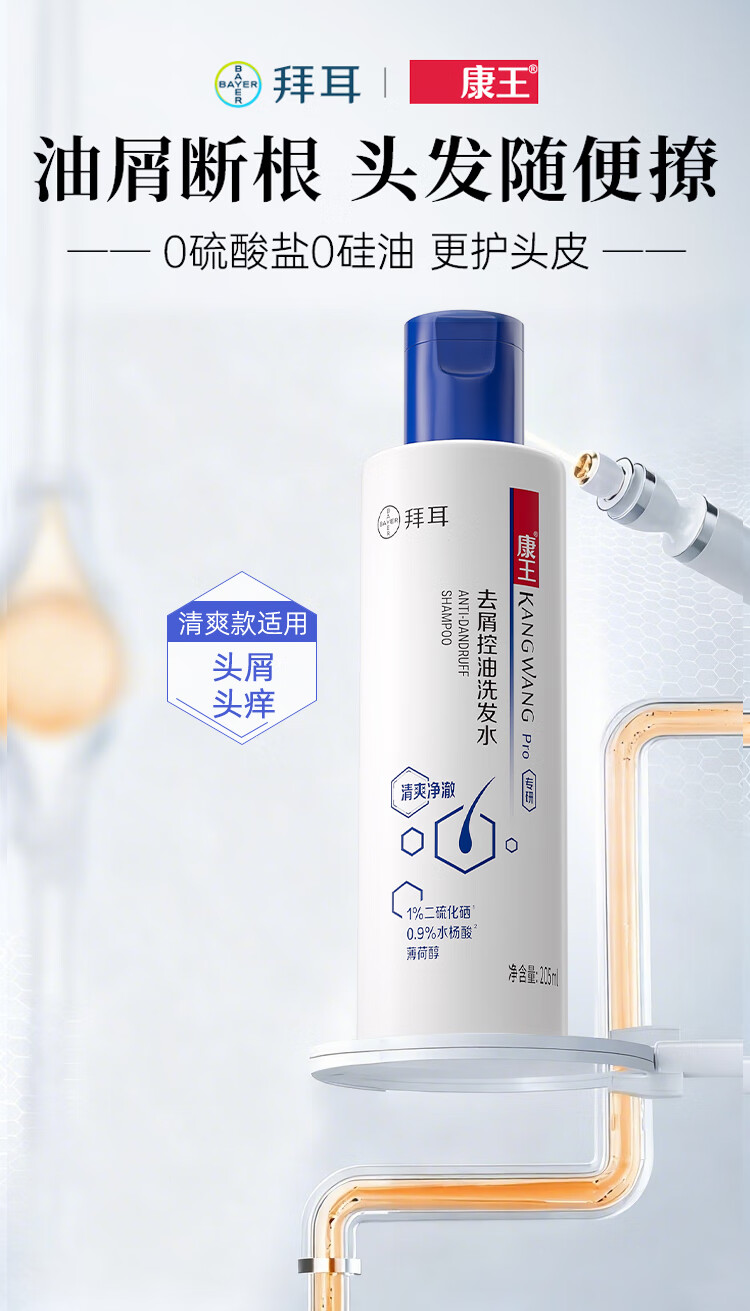 拜耳康王1%二硫化硒洗发水205ml-清爽净澈型 去屑止痒控油洗剂洗发液 京东自营【丁香医生推荐】