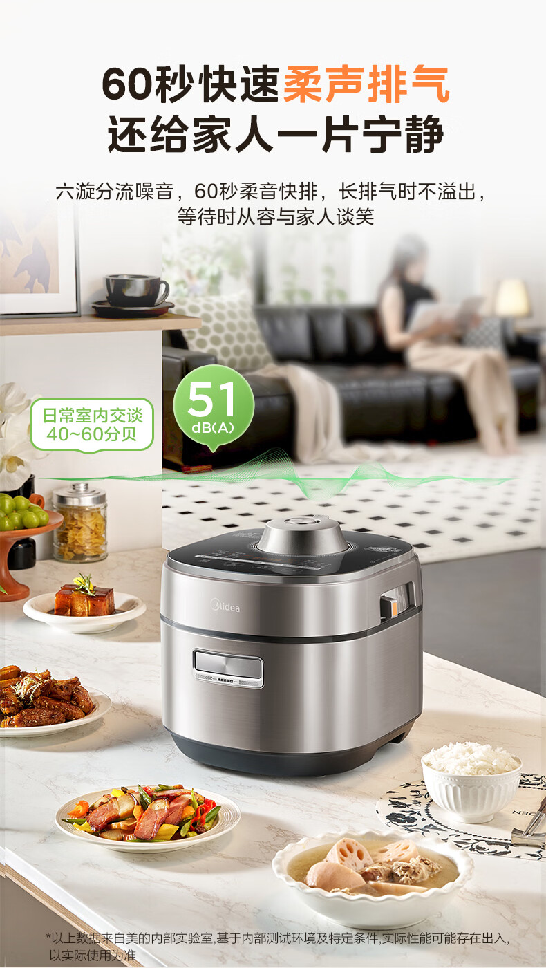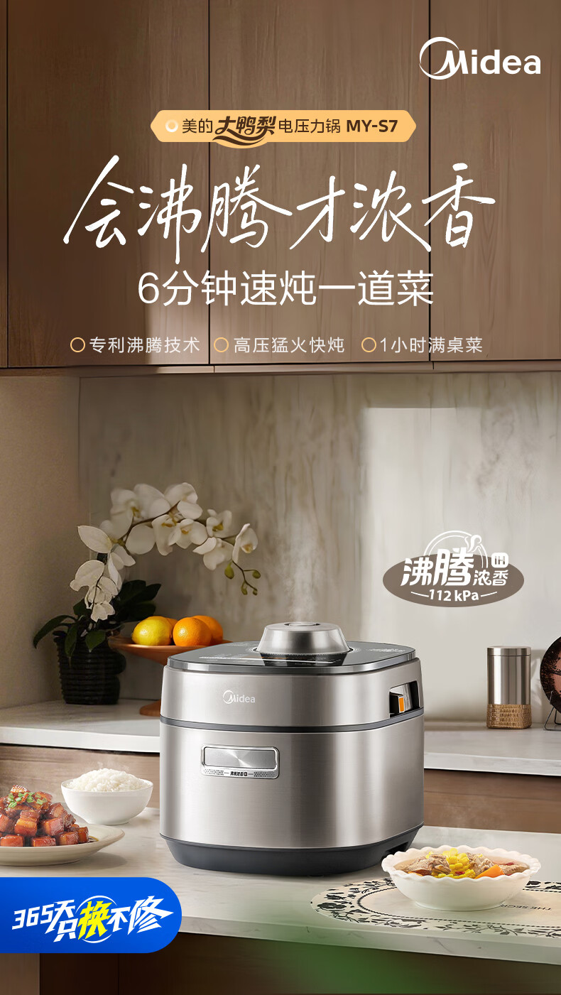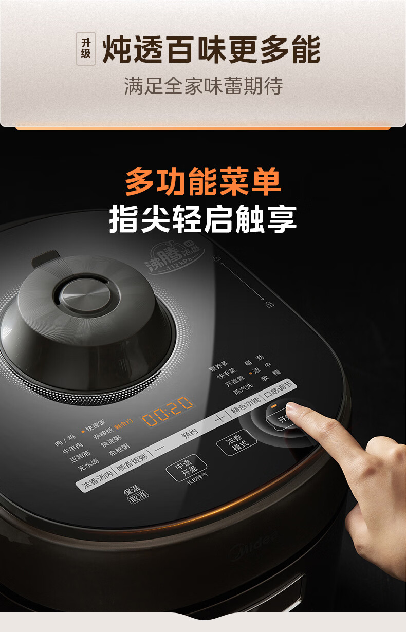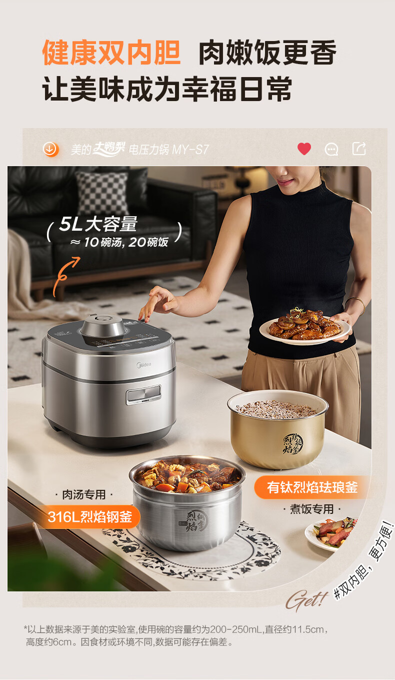 美的(Midea)大鸭梨有钛电压力锅ih加热高压112kPa电饭锅5L家用4-6人饭煲0涂层316L电压锅智能预约蒸汽洗MY-S7
