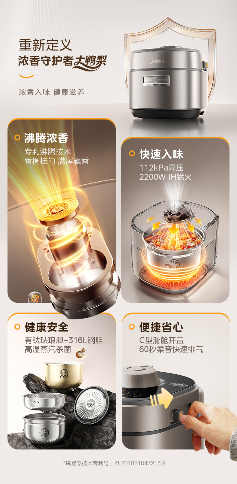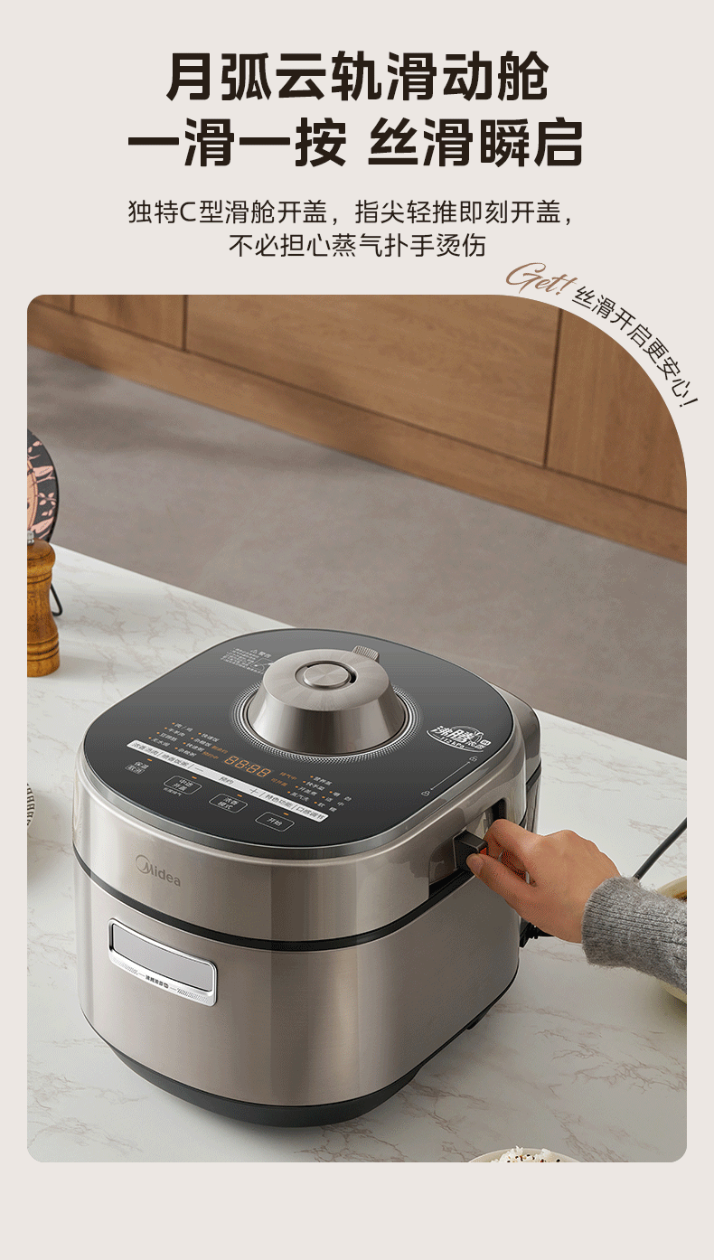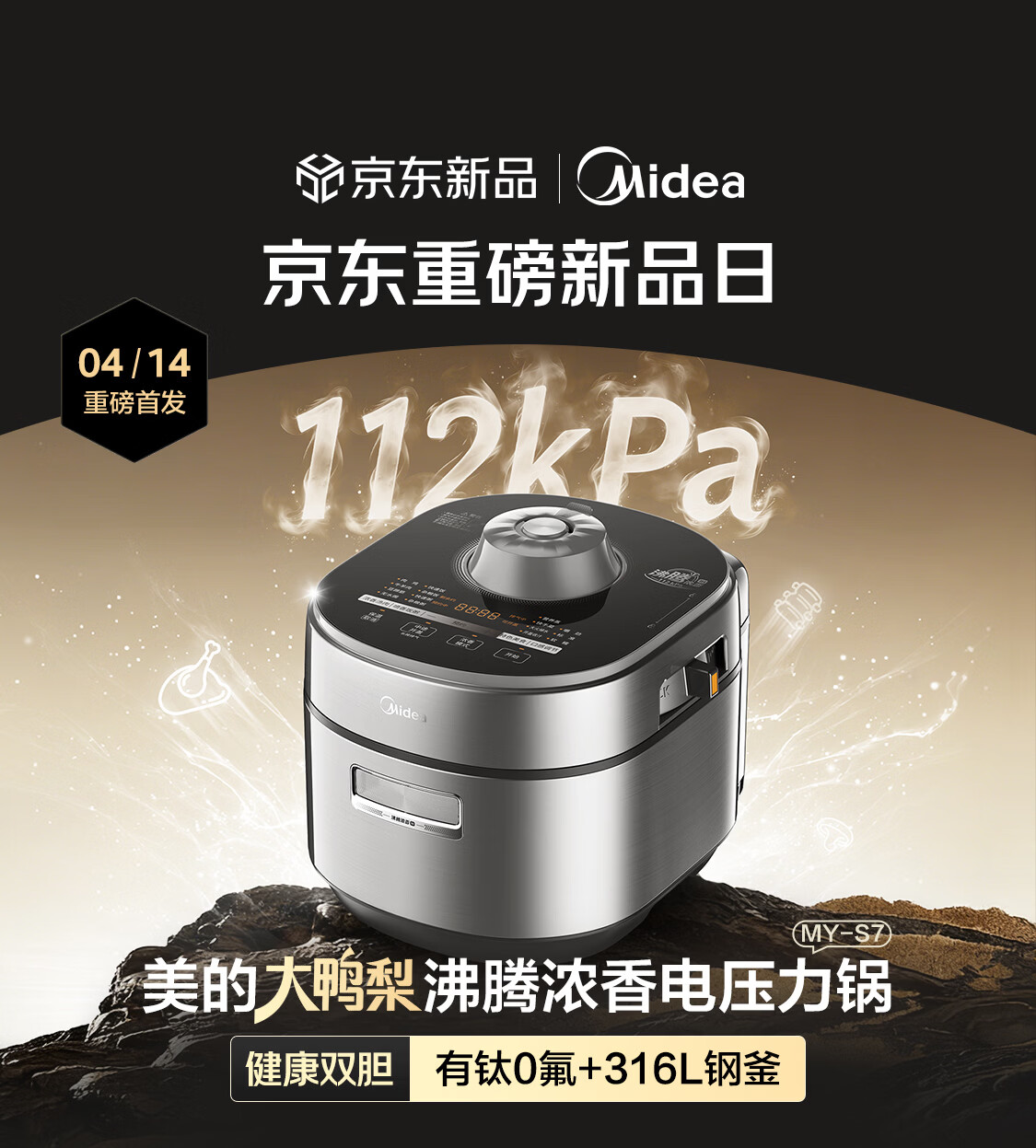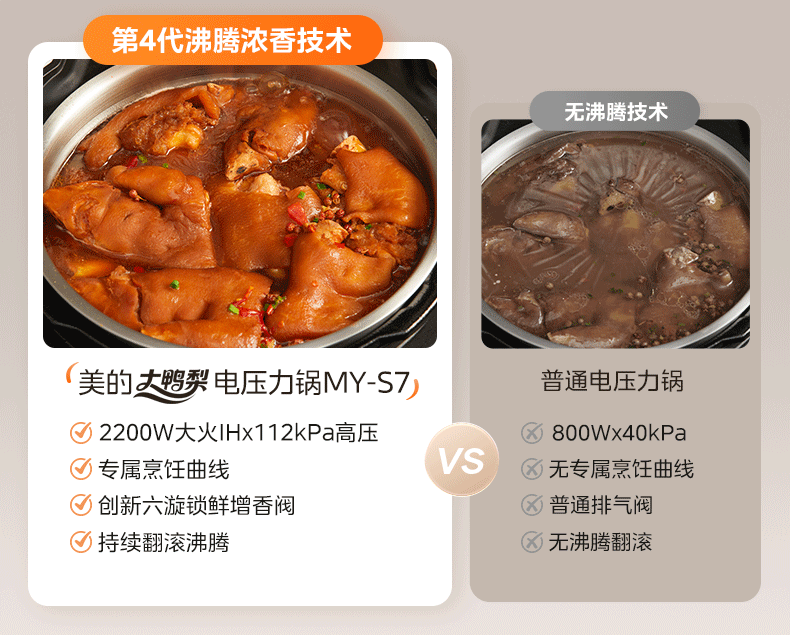 美的(Midea)大鸭梨有钛电压力锅ih加热高压112kPa电饭锅5L家用4-6人饭煲0涂层316L电压锅智能预约蒸汽洗MY-S7