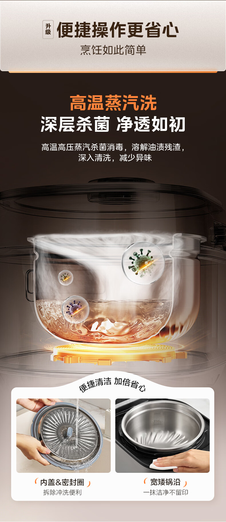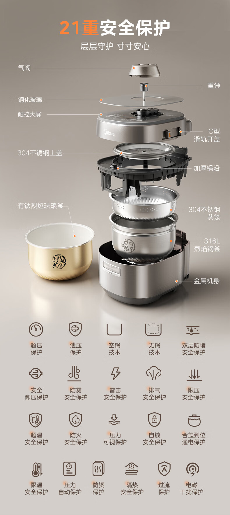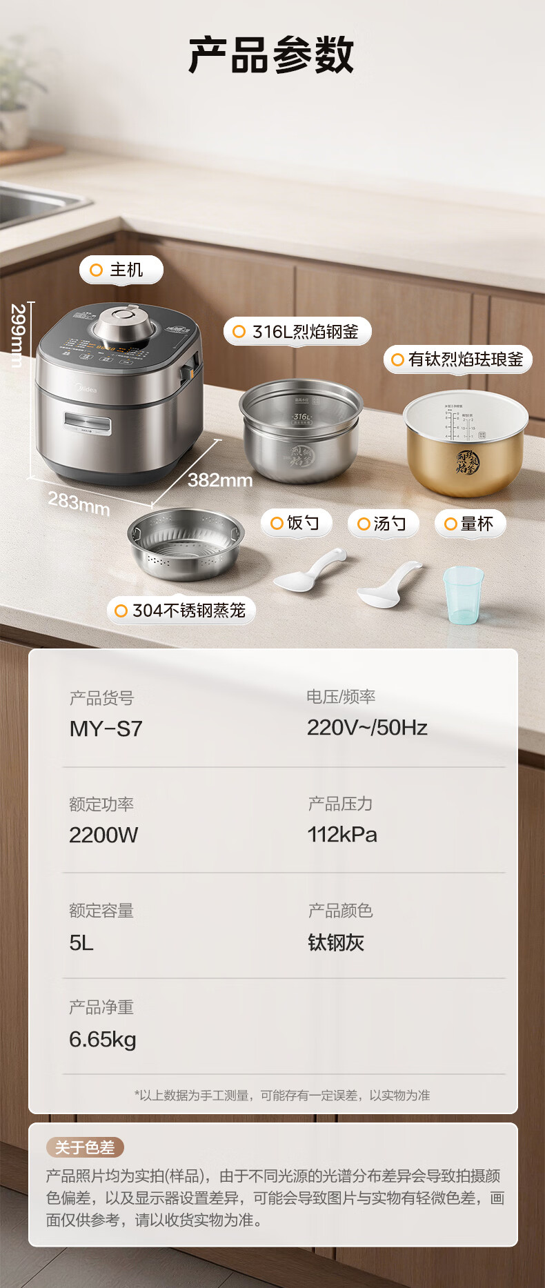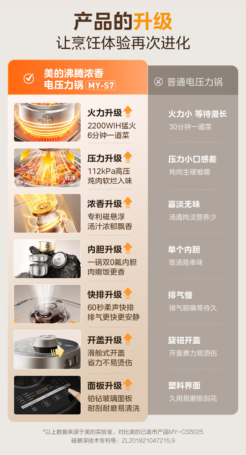 美的(Midea)大鸭梨有钛电压力锅ih加热高压112kPa电饭锅5L家用4-6人饭煲0涂层316L电压锅智能预约蒸汽洗MY-S7