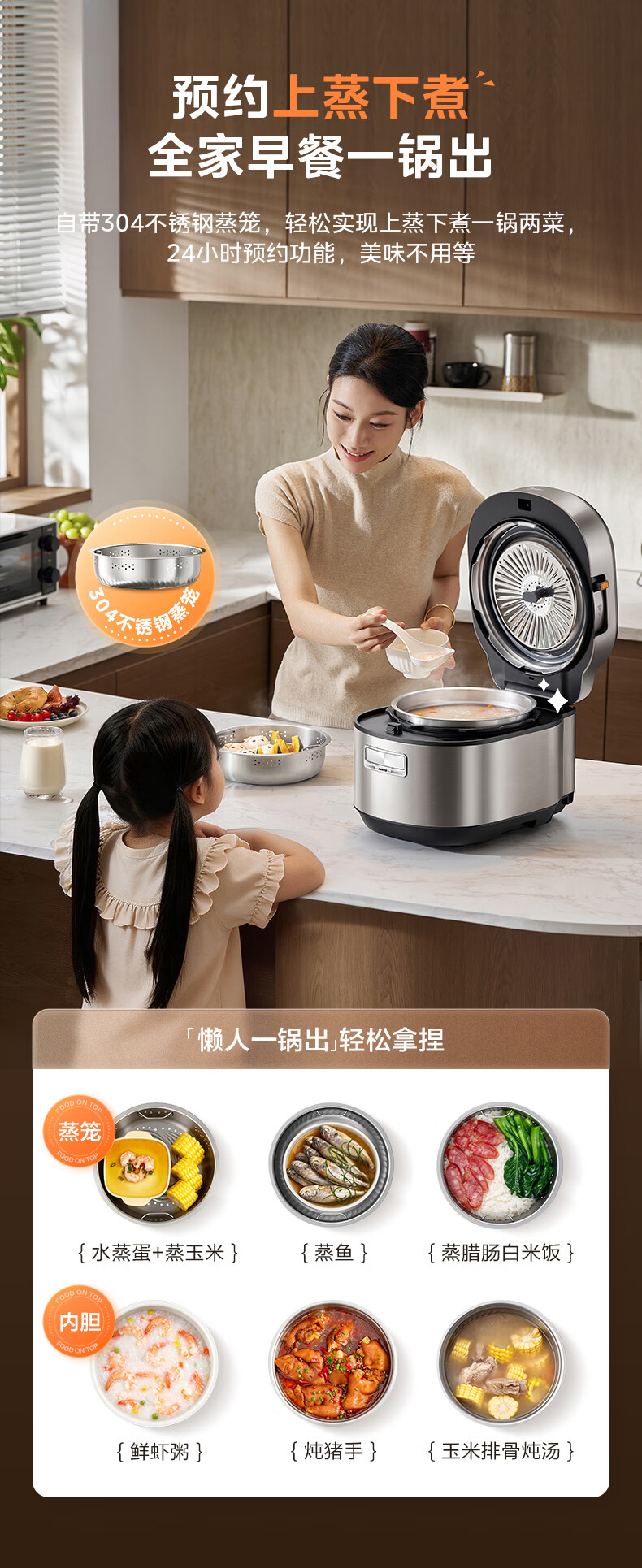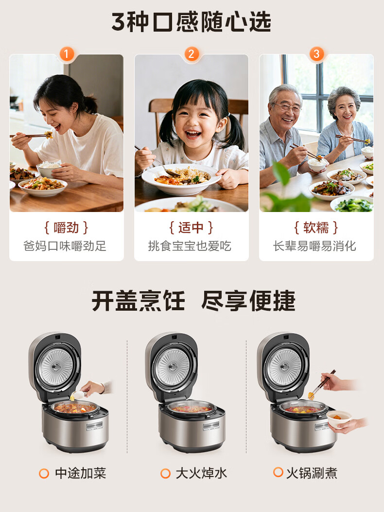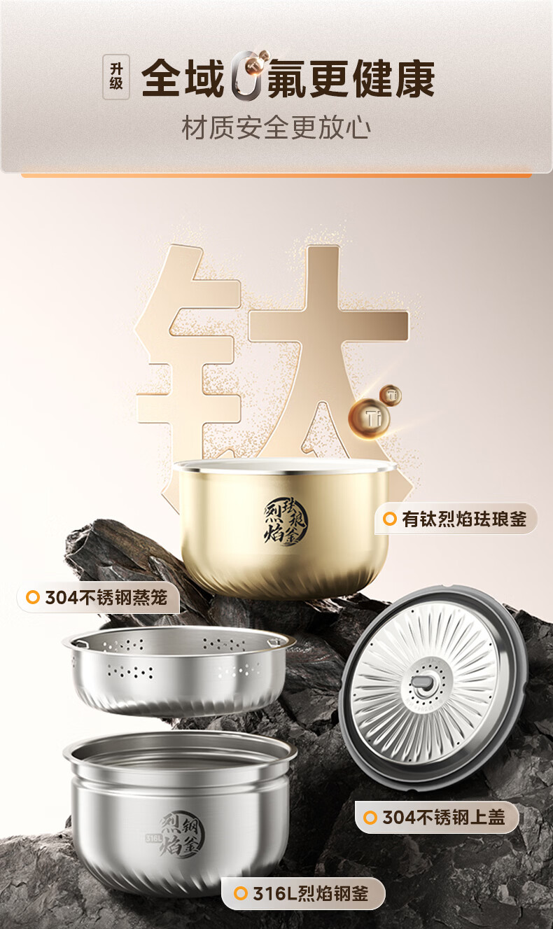 美的(Midea)电饭煲 家用3升0涂层不锈钢电饭锅无涂层蜂窝内胆2-3人IH加热智能预约多功能电饭锅蒸煮煲汤饭锅 【母婴级316L不锈钢内胆】 3L 0涂层