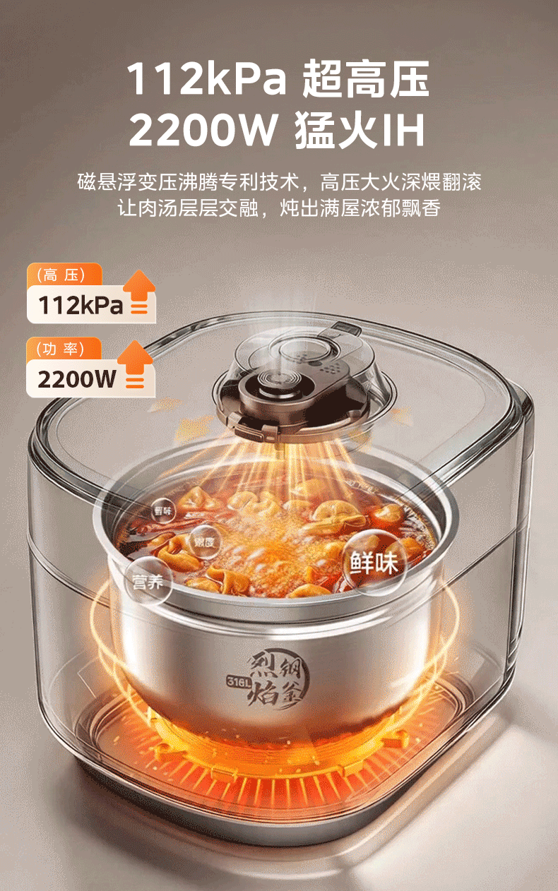 九阳(Joyoung)尊享电压力锅免排汽1代 5L超高压112KPa猛火IH智能预约0涂层母婴316L双球胆煲汤电饭煲Y-50IHZ6