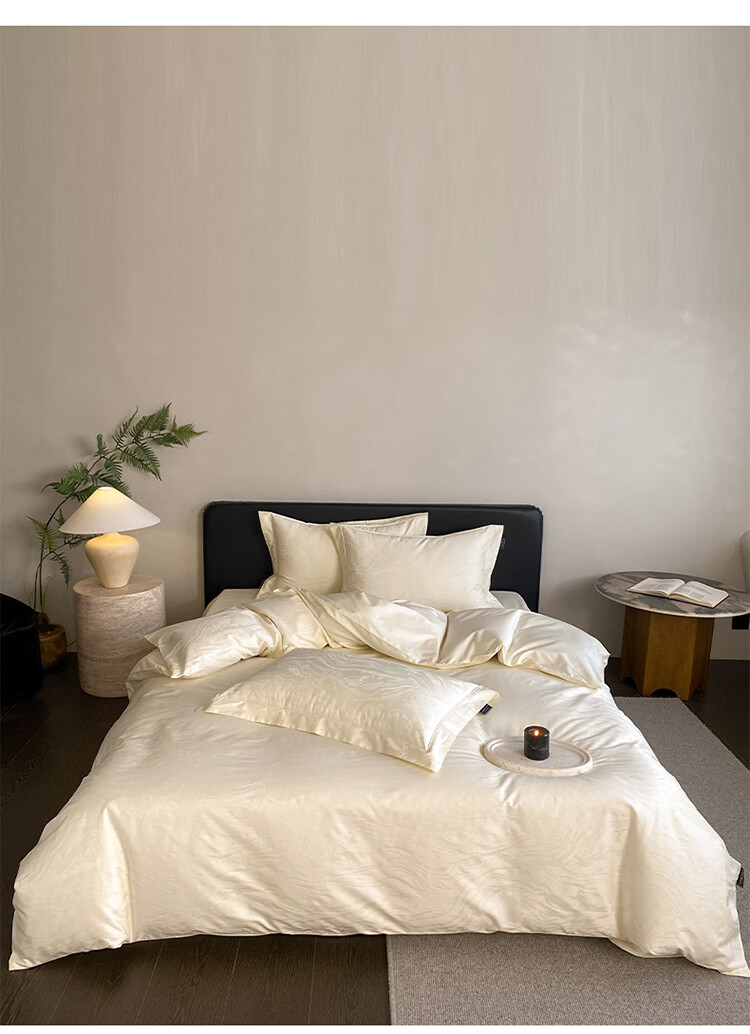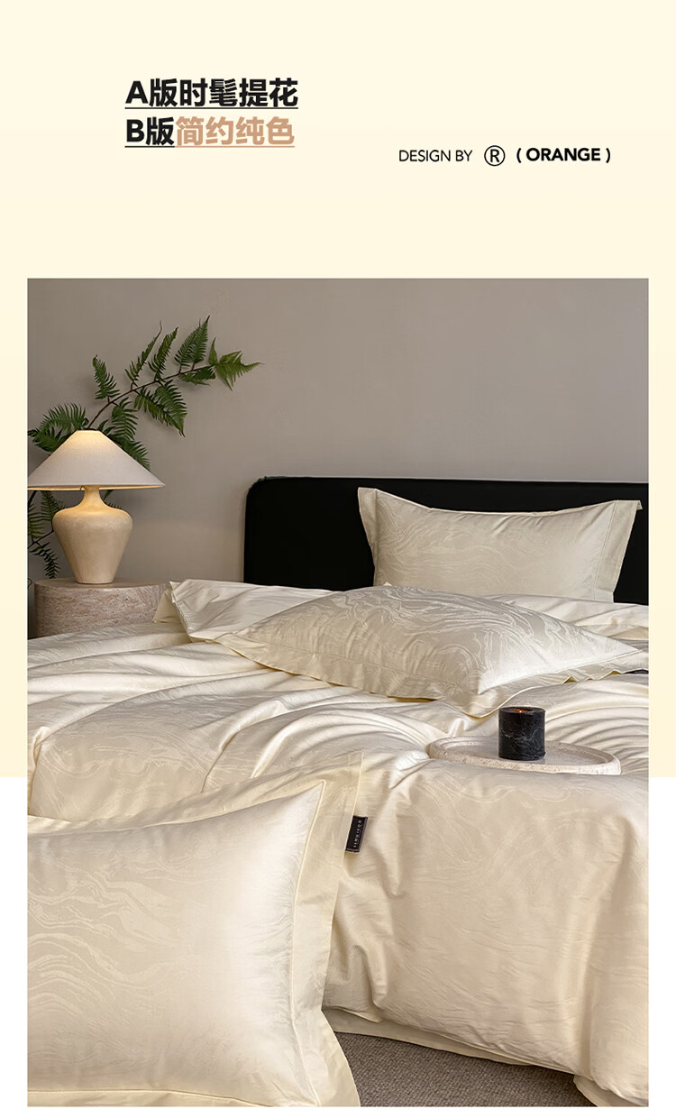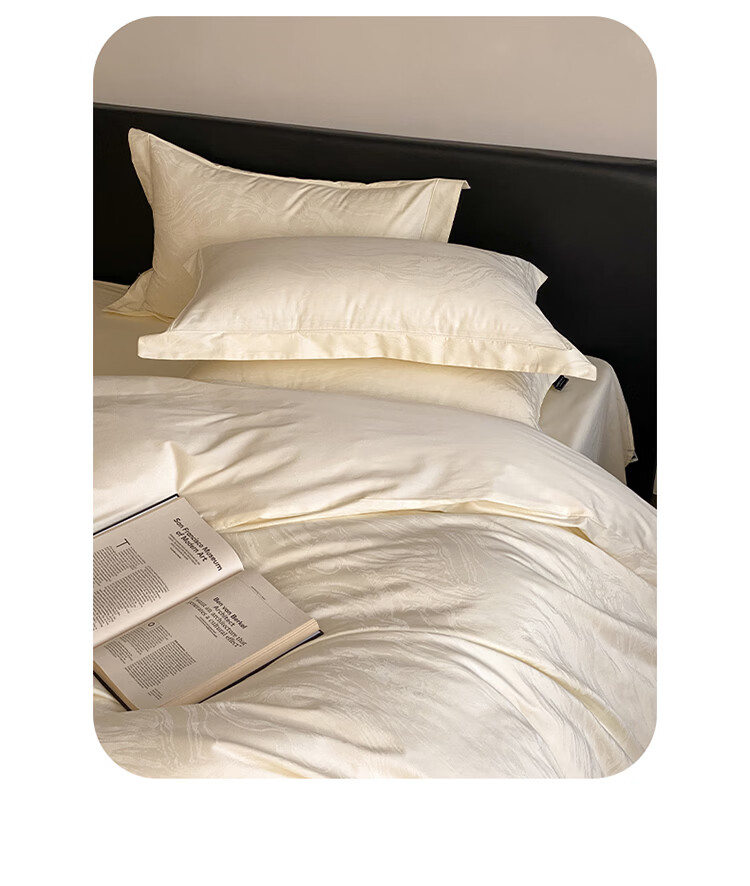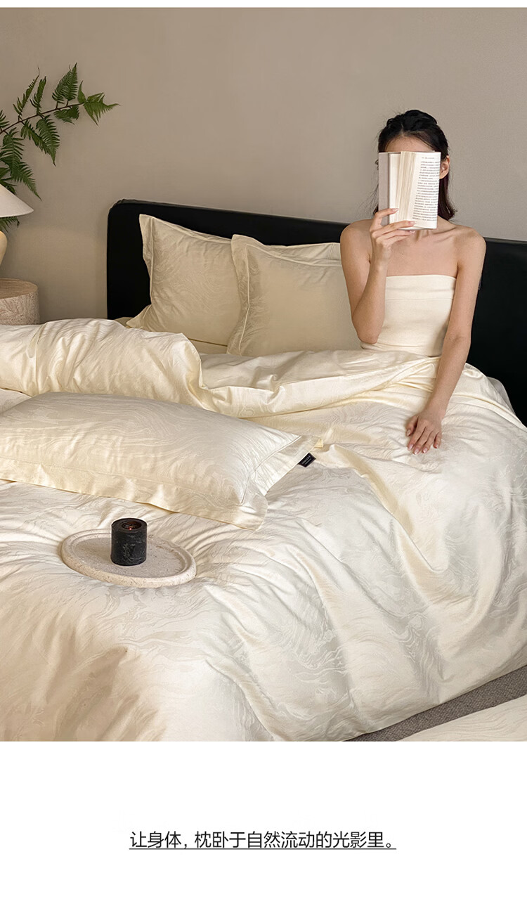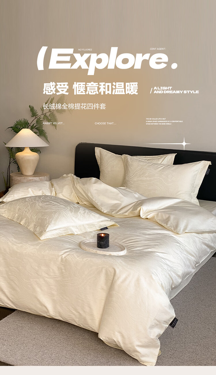 ROLAND LIVE春夏长绒棉全棉提花四件套柔软透气AB版被套床单床笠家用床上用品 SW 长绒棉提花四件套-鹿汀象牙白 1.5米床 床单款 【被套200*230cm】