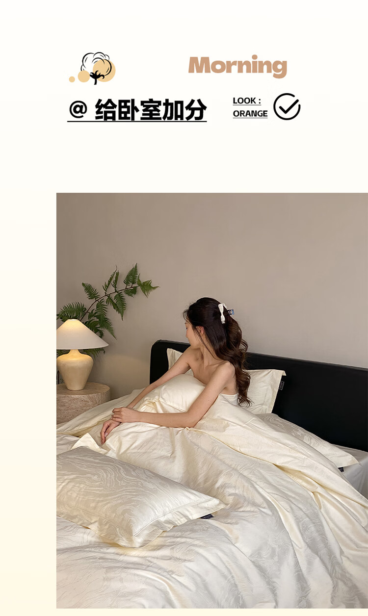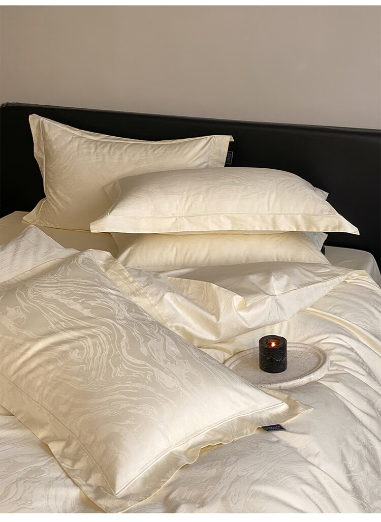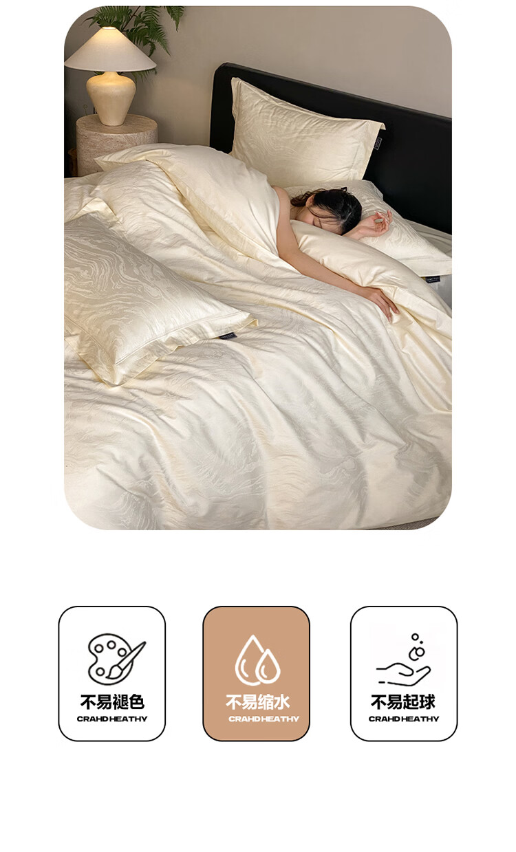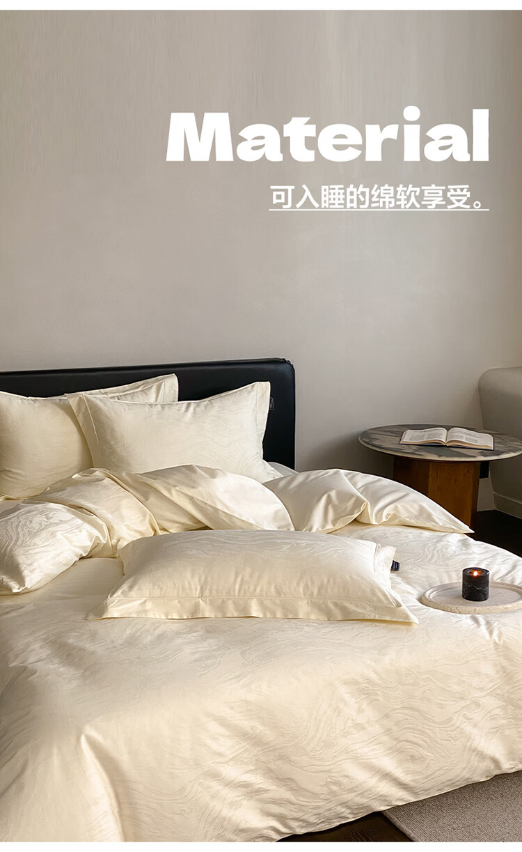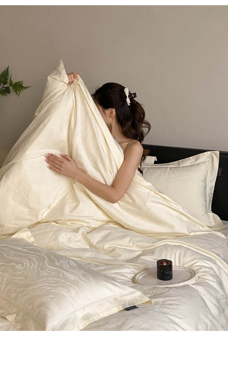 ROLAND LIVE春夏长绒棉全棉提花四件套柔软透气AB版被套床单床笠家用床上用品 SW 长绒棉提花四件套-鹿汀象牙白 1.5米床 床单款 【被套200*230cm】