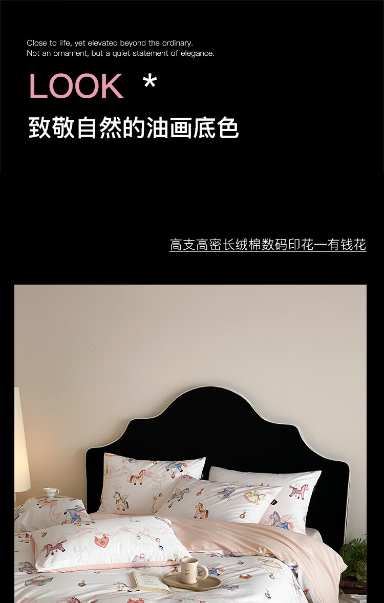 ROLAND LIVE 简约轻奢风长绒棉60春夏四件套亲肤裸睡被套床单全棉四季床品 KZ 长绒棉四件套-有钱花奶白 标准 床单款 【被套200*230cm】