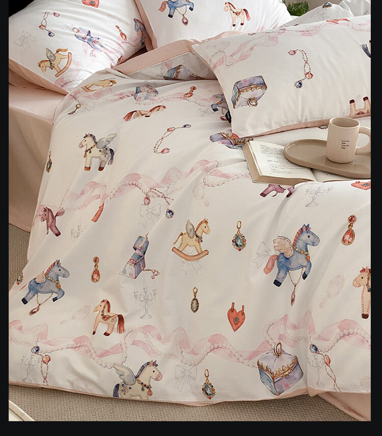 无印良品全棉床品四件套纯棉100%小清新花卉风单双人四季通用可裸睡三件套 苏屿【全棉面料 清新印花】 1.8m 床单款 被套200*230cm