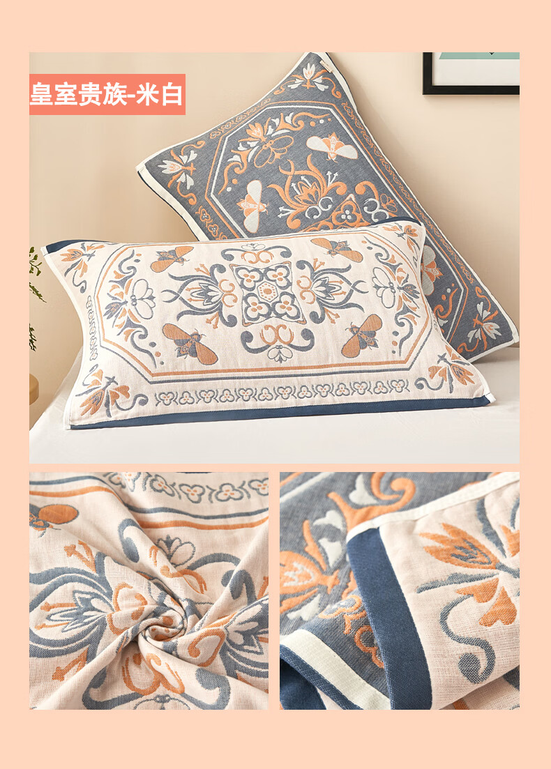 无印良品100%纯棉老粗布枕巾男士夏季防头油枕垫一对全棉高端盖巾家用床品 皇室贵族-米白【全棉亲肤纱布】 53cm*78cm 枕巾一对
