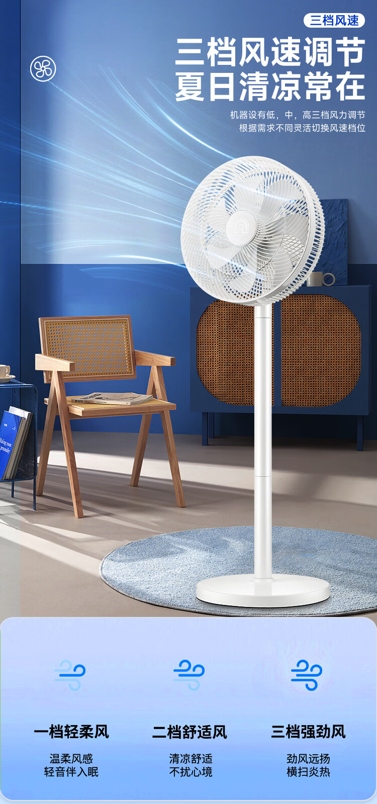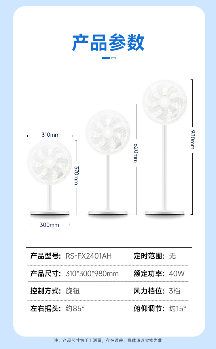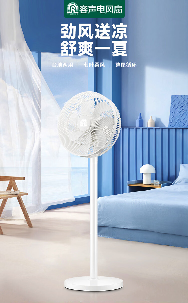 容声电风扇家用落地扇交流定频电风扇轻音风扇立式台地两用大风量节能摇头风扇低噪风扇RS-FX2401AH