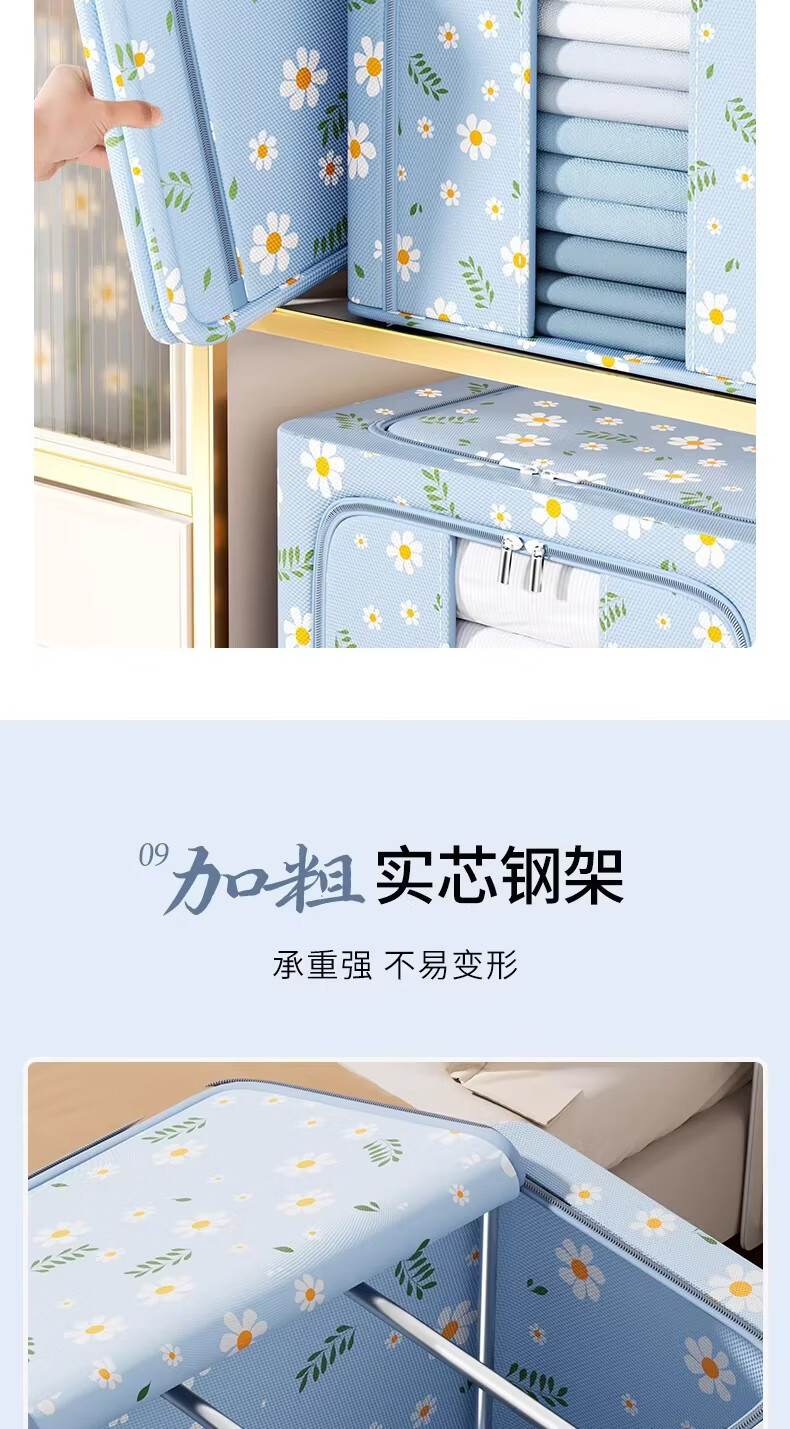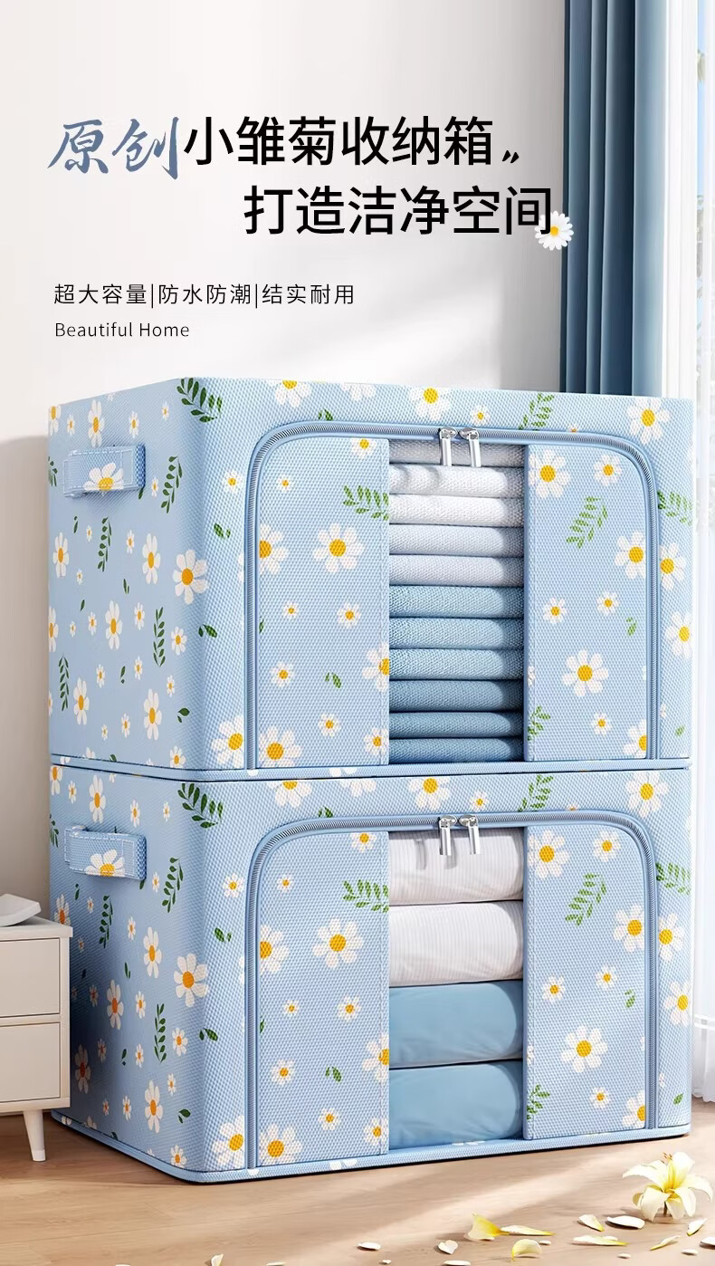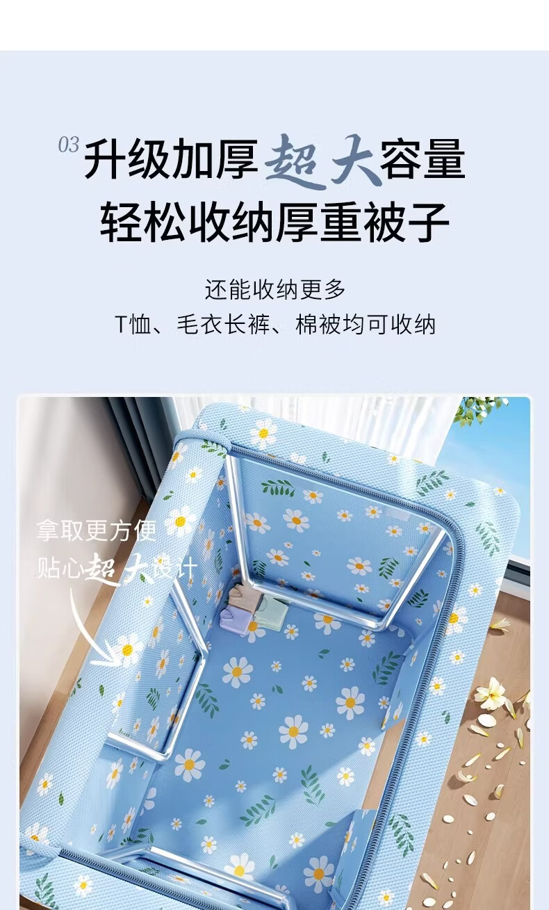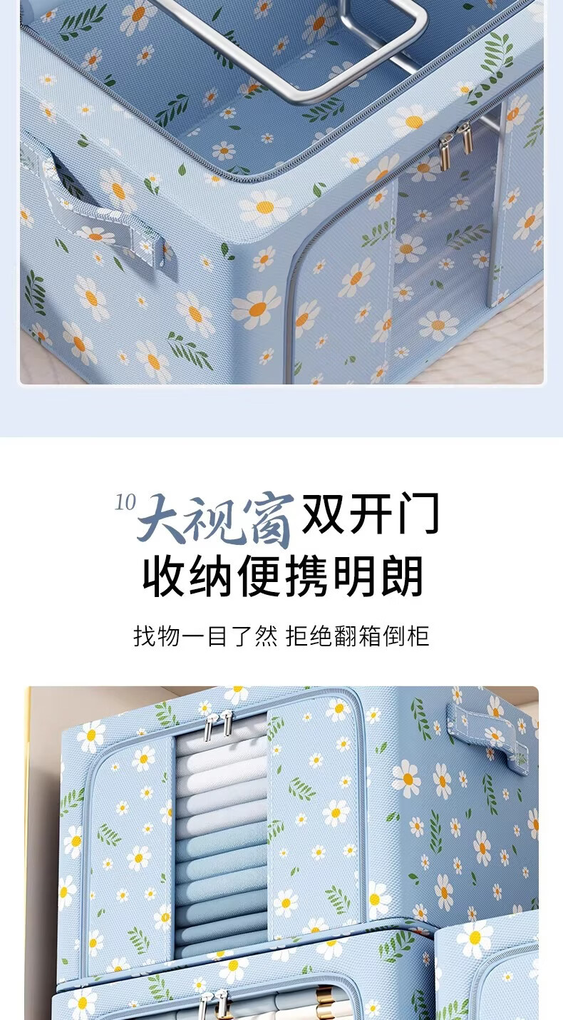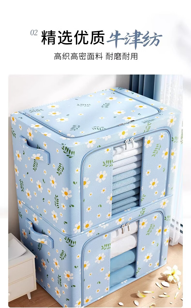 米卡博衣物收纳箱衣服家用衣物大容量搬家打包袋被子四件套整理筐 蓝雏菊-【牛津布/加粗钢架/建议放小孩衣服/贴身衣物】 中号-24L【40*30*20cm】