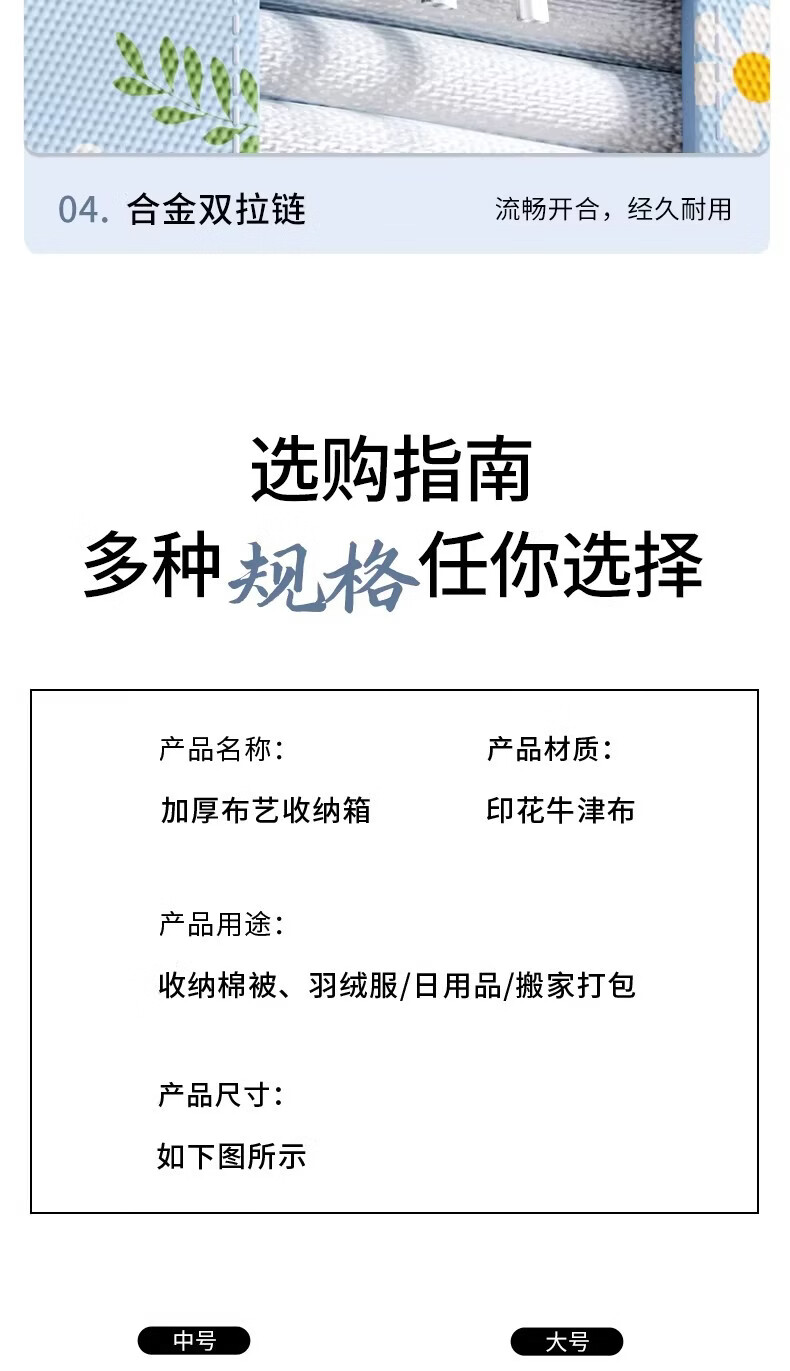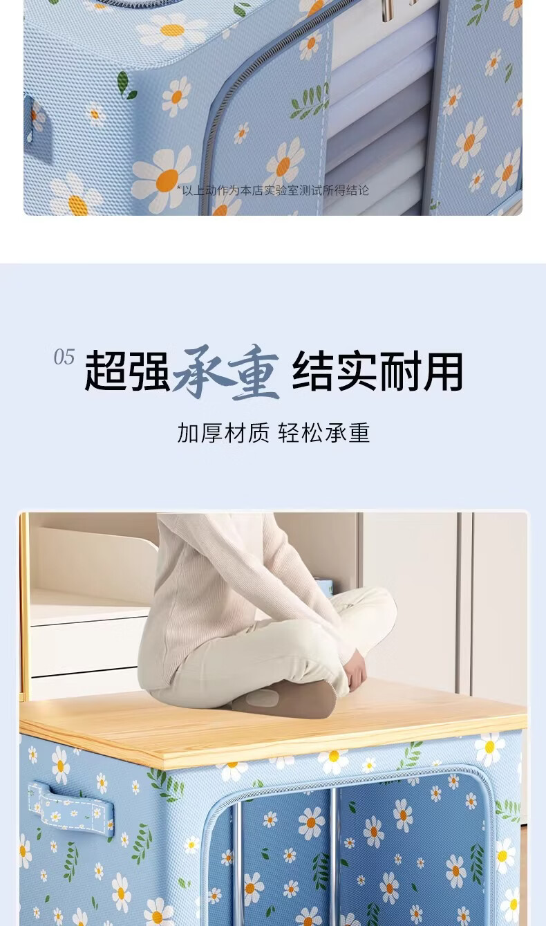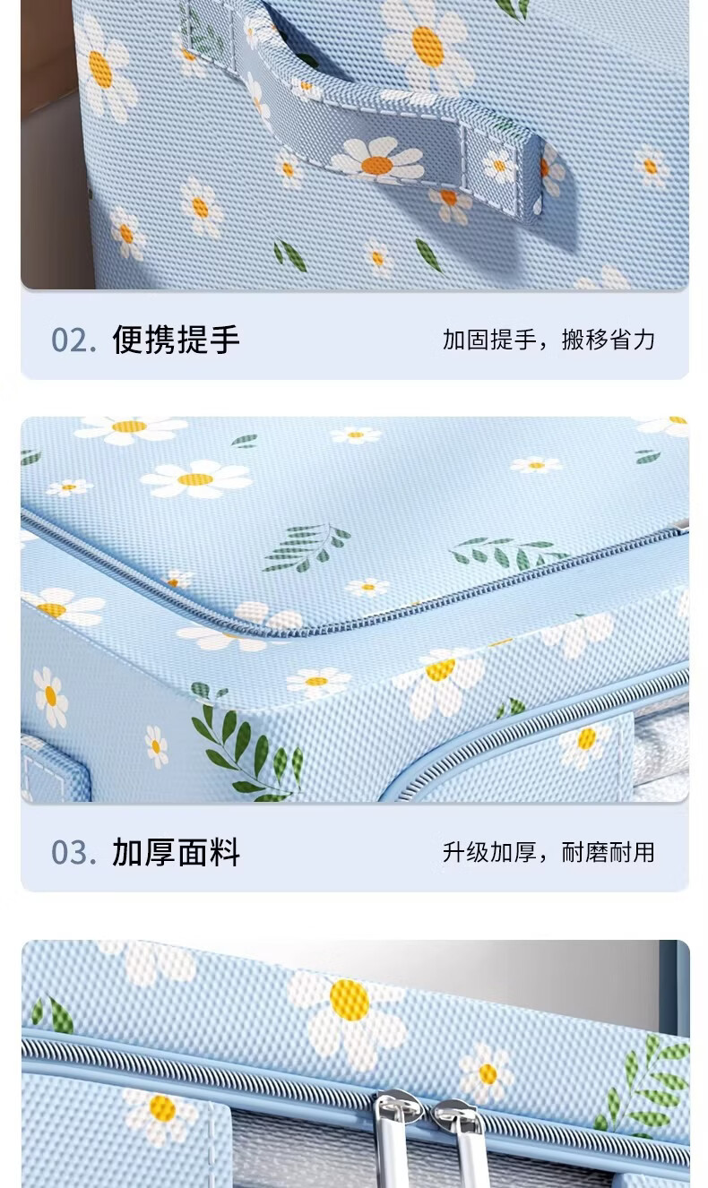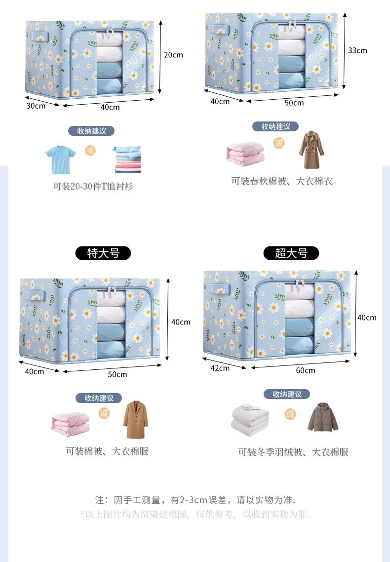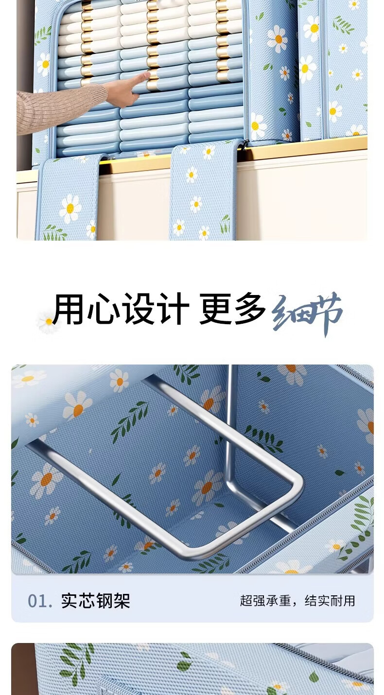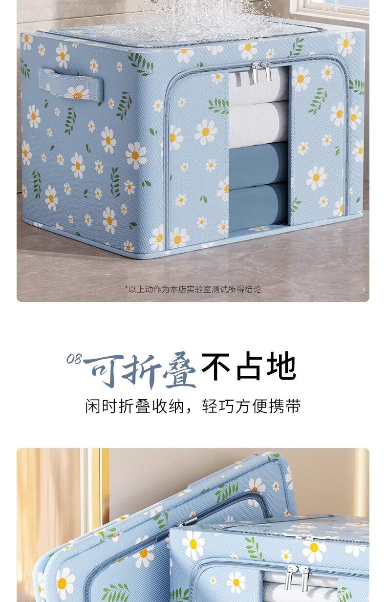 米卡博衣物收纳箱衣服家用衣物大容量搬家打包袋被子四件套整理筐 蓝雏菊-【牛津布/加粗钢架/建议放小孩衣服/贴身衣物】 中号-24L【40*30*20cm】