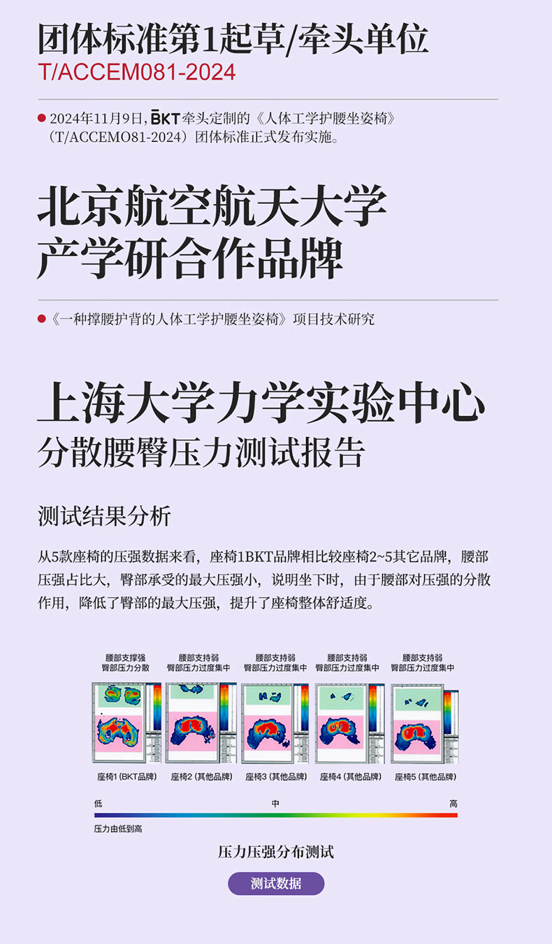 BKT护腰坐垫椅垫久坐神器人体工学腰靠垫美臀靠背垫汽车座椅节日礼物 加大北欧蓝【150斤内】
