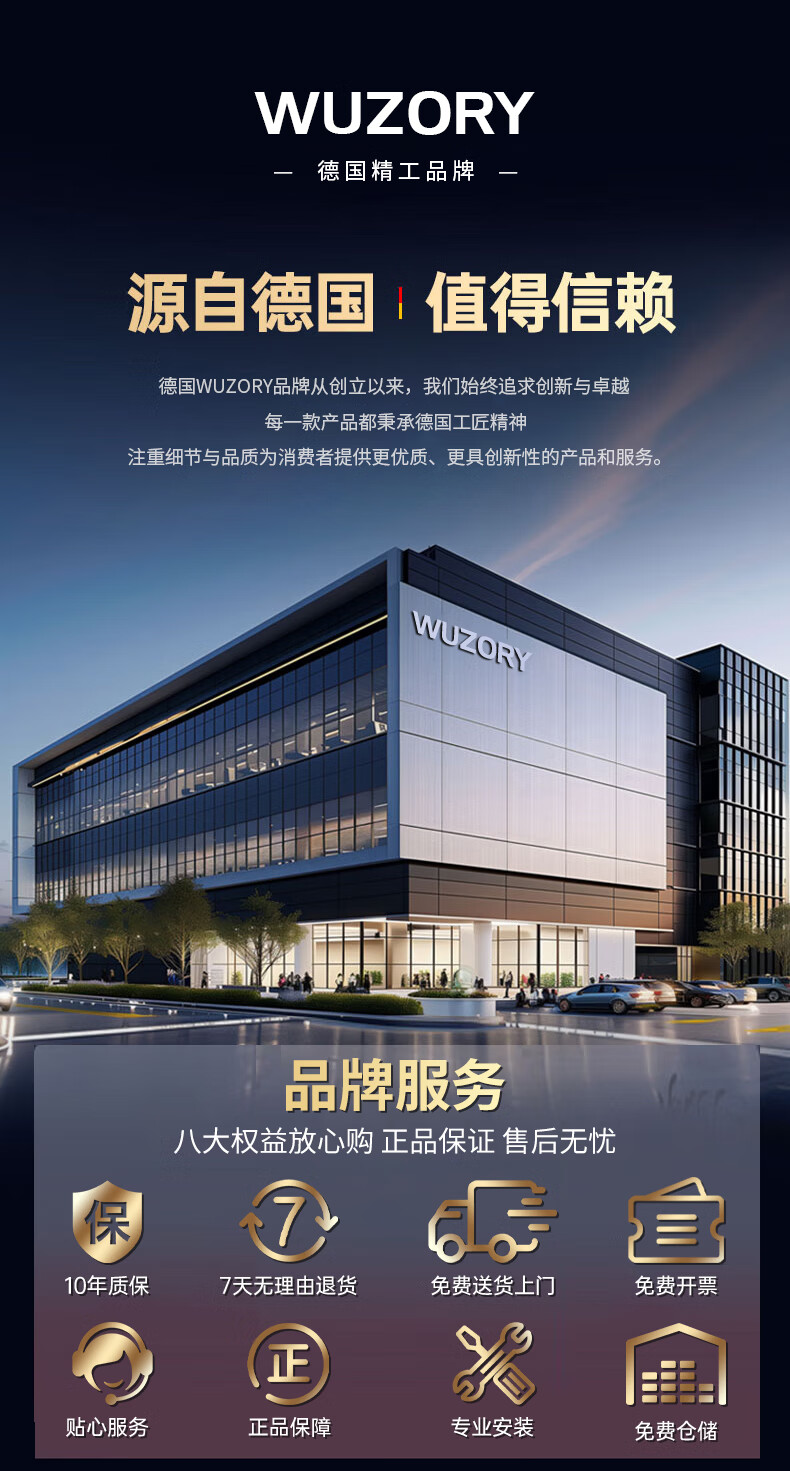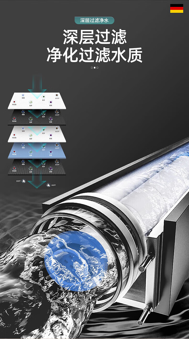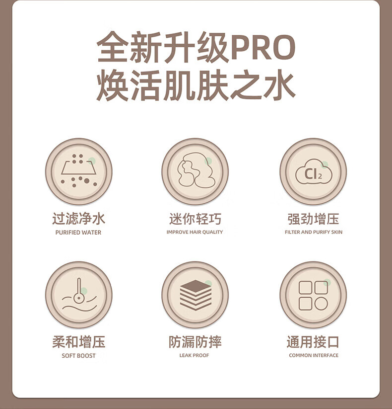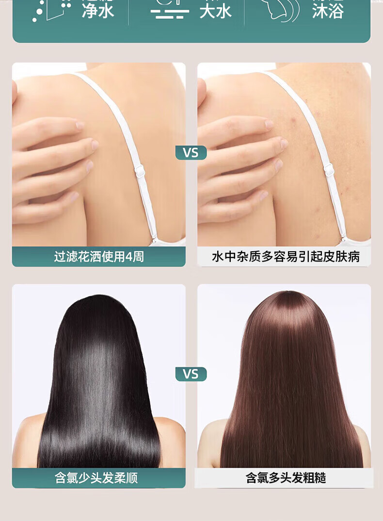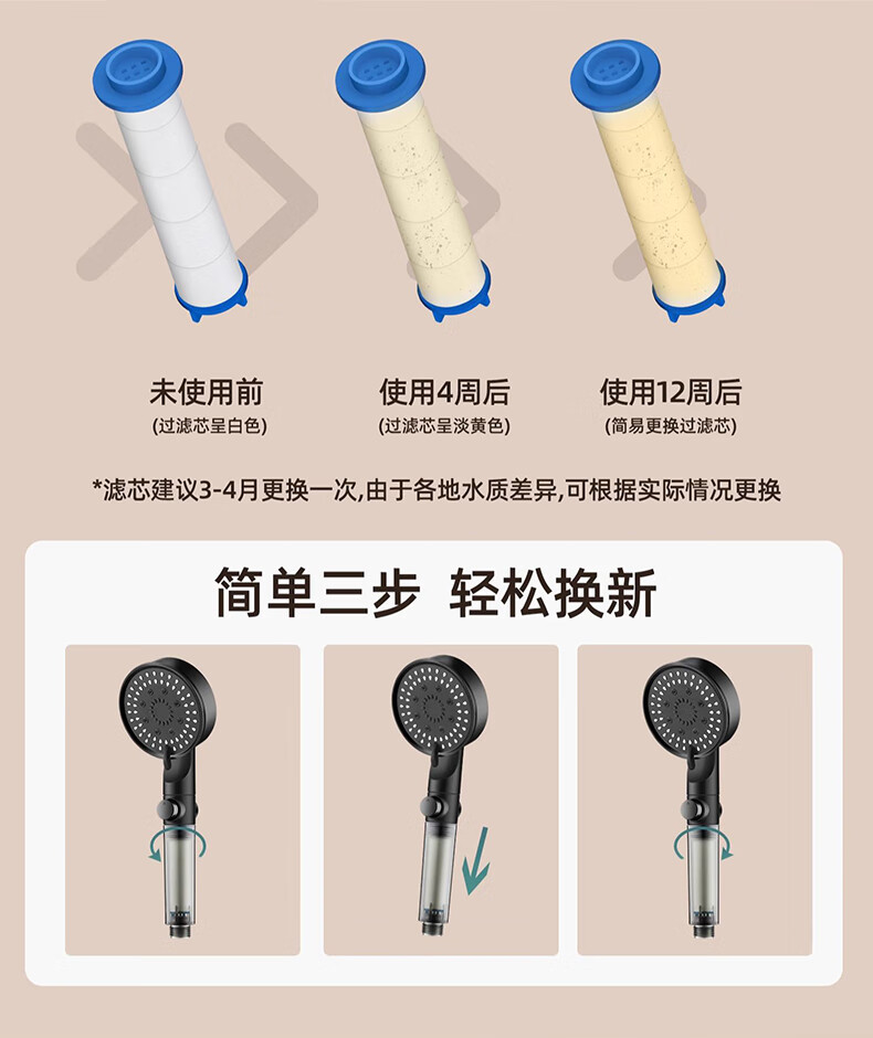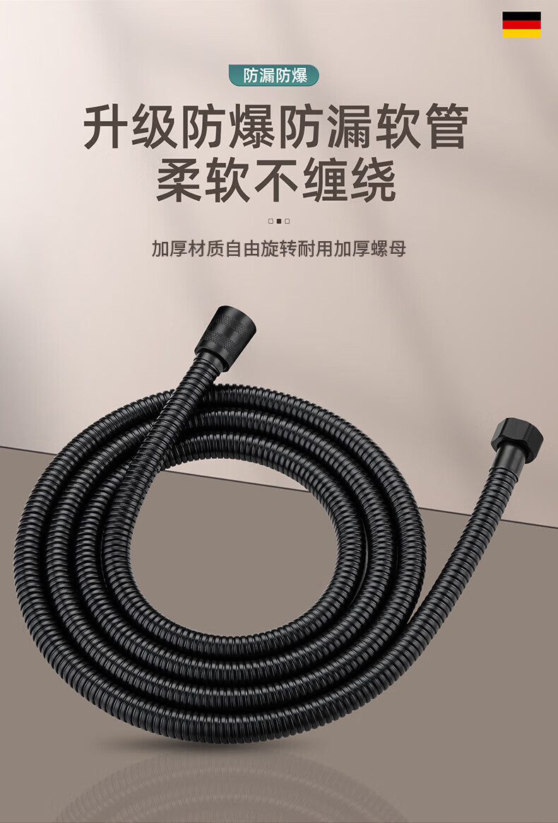 WUZORY【德国】增压花洒喷头淋浴超强大流量过滤洗澡家用止水莲蓬头套装 雅黑-增压过滤花洒三件套 五档调节丨过滤净水丨一键止水